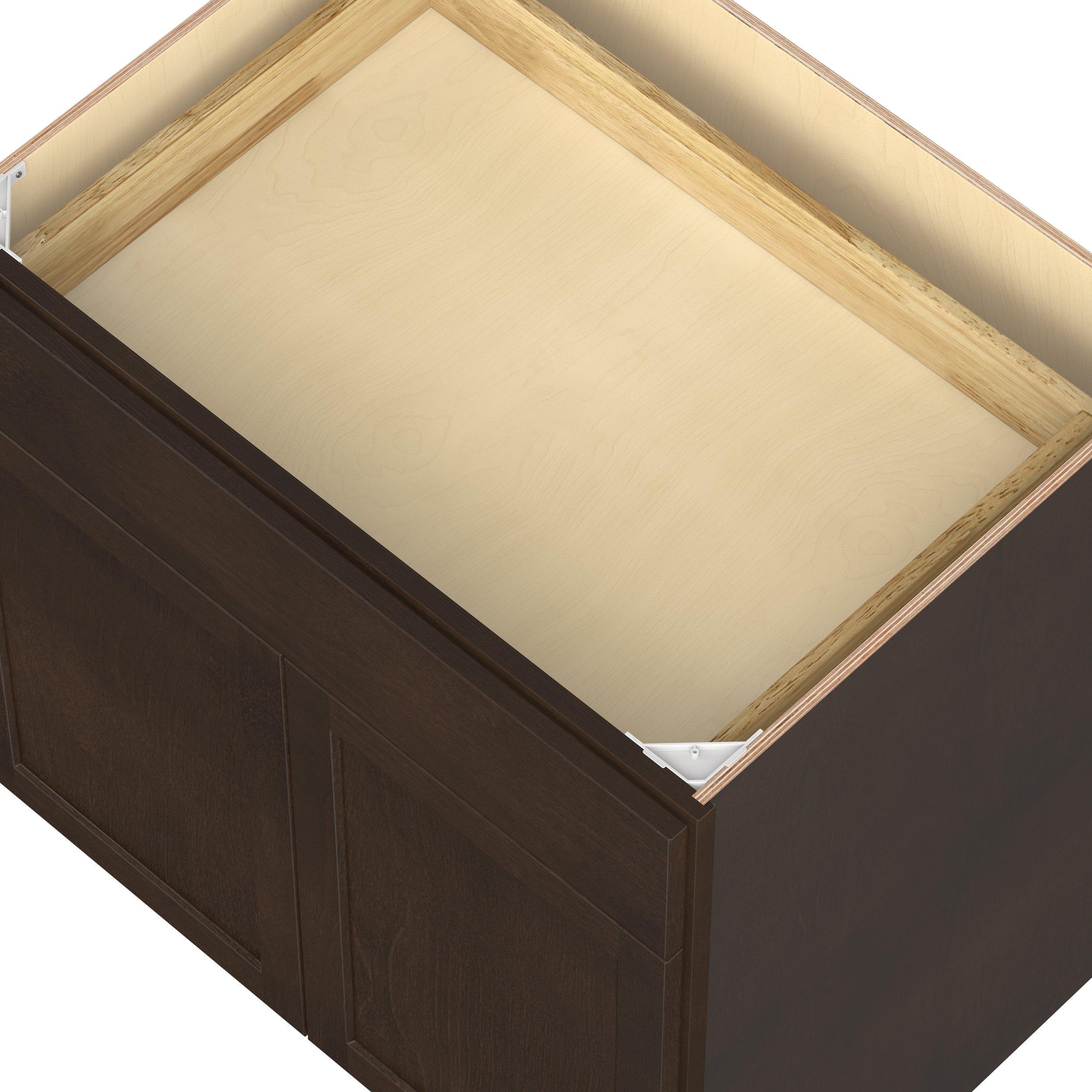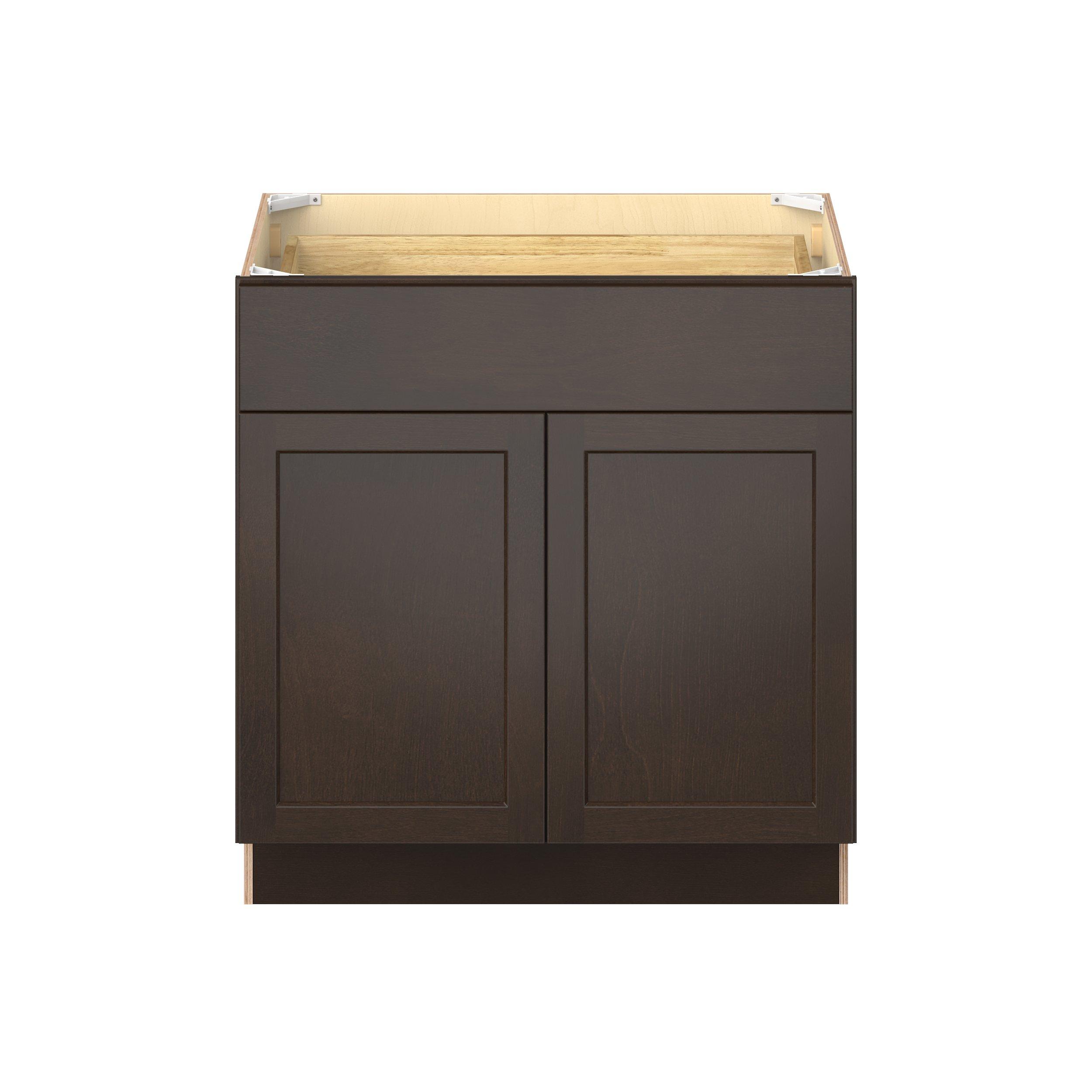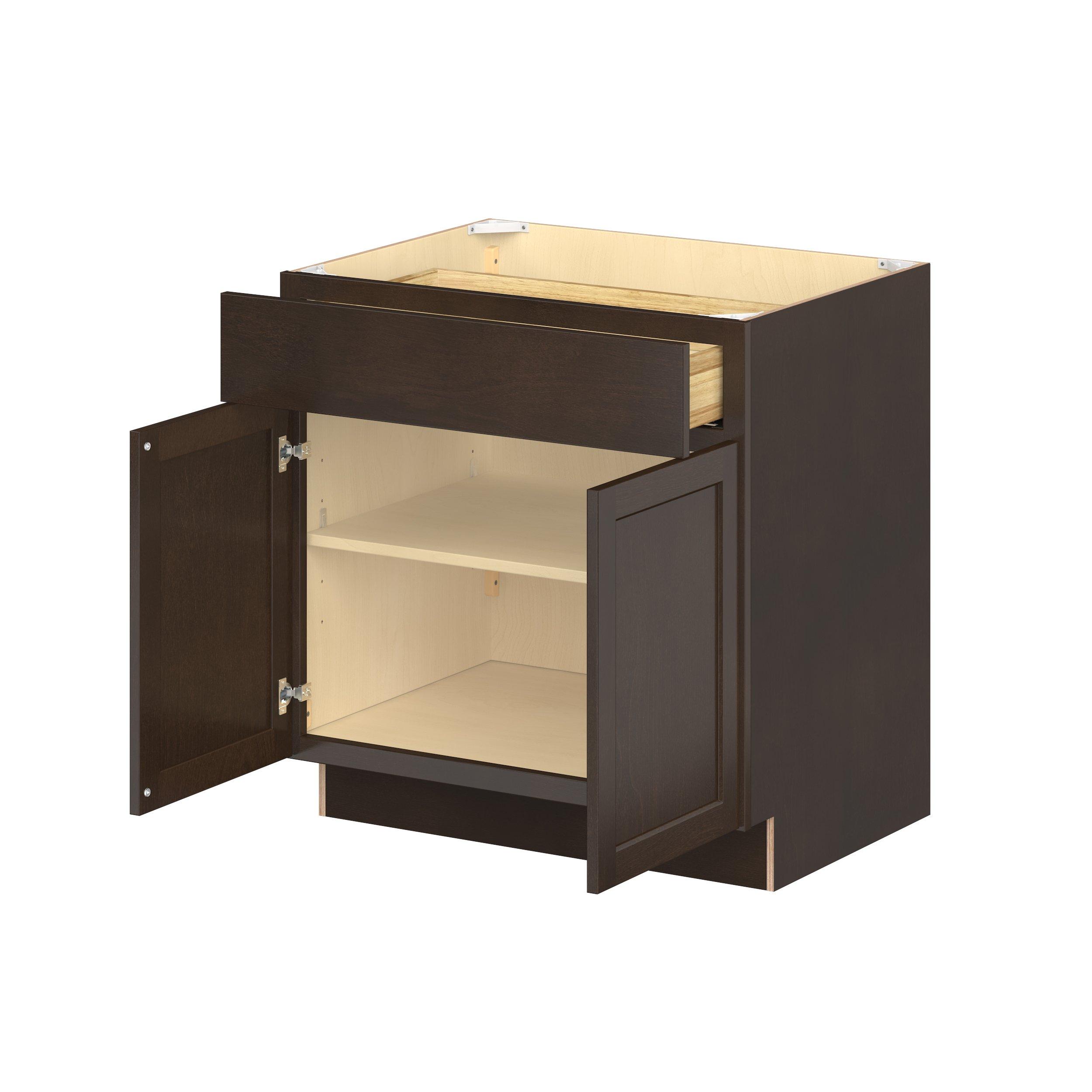 Embrace the timeless charm of the Baxley classic shaker door style. Studio Design Collection Baxley 33 in. Stained Cocoa Door and Drawer Base Cabinet features all plywood construction, offering both superior strength and sophistication to your space. Featuring 5-piece solid wood doors and dovetail drawer joints, these cabinets offer durability and elegance. Baxley classic shaker door style is designed to retain its stunning appearance and withstand the test of time.