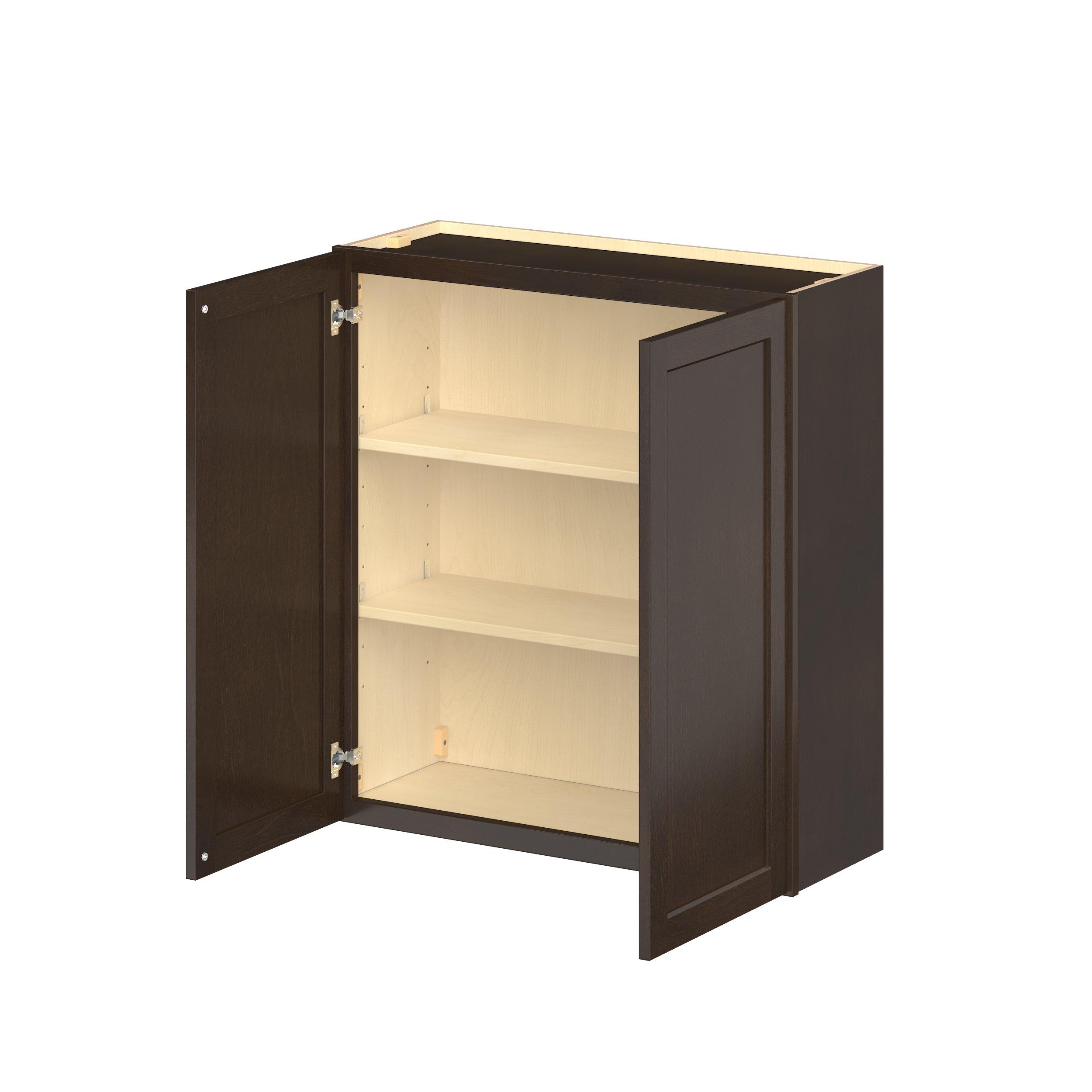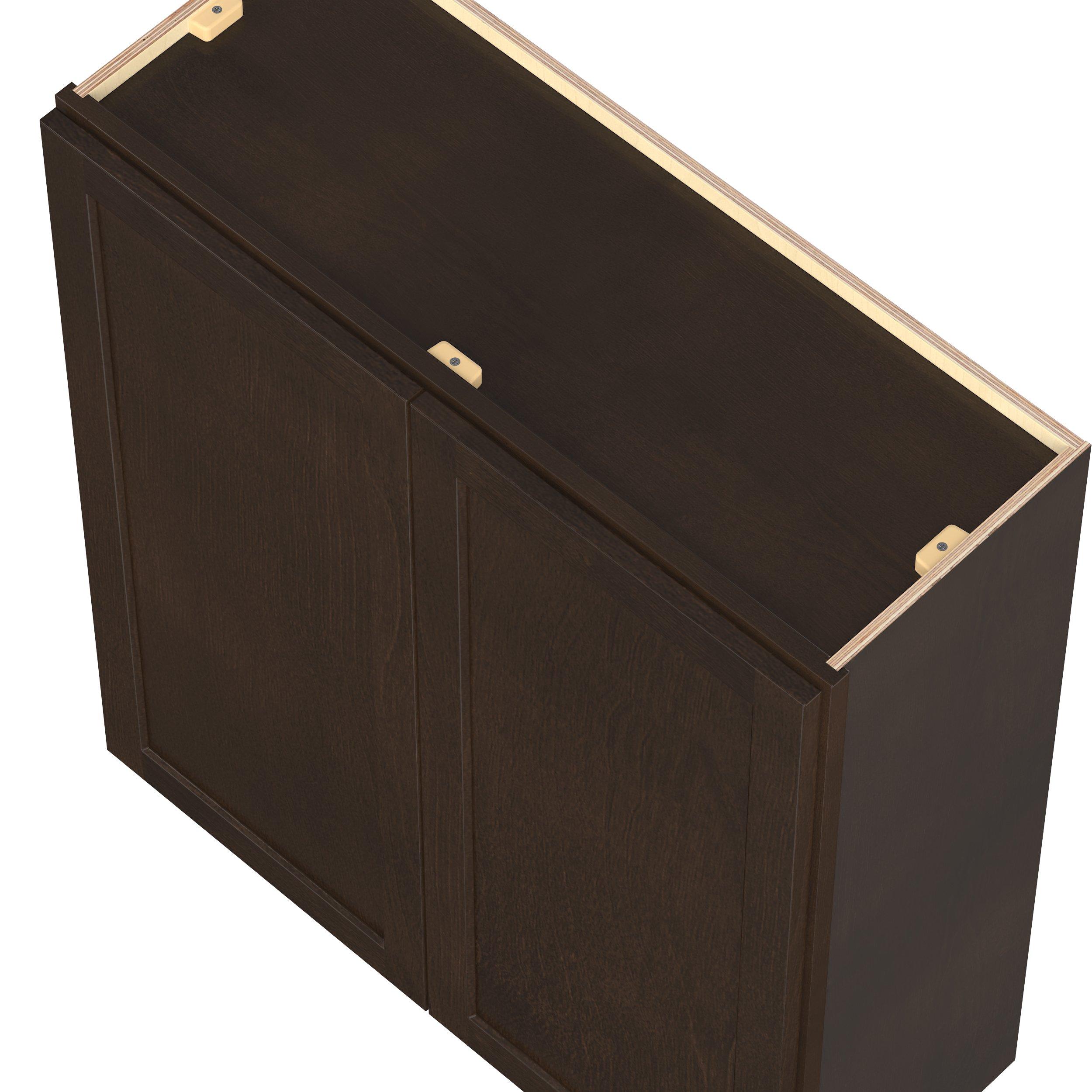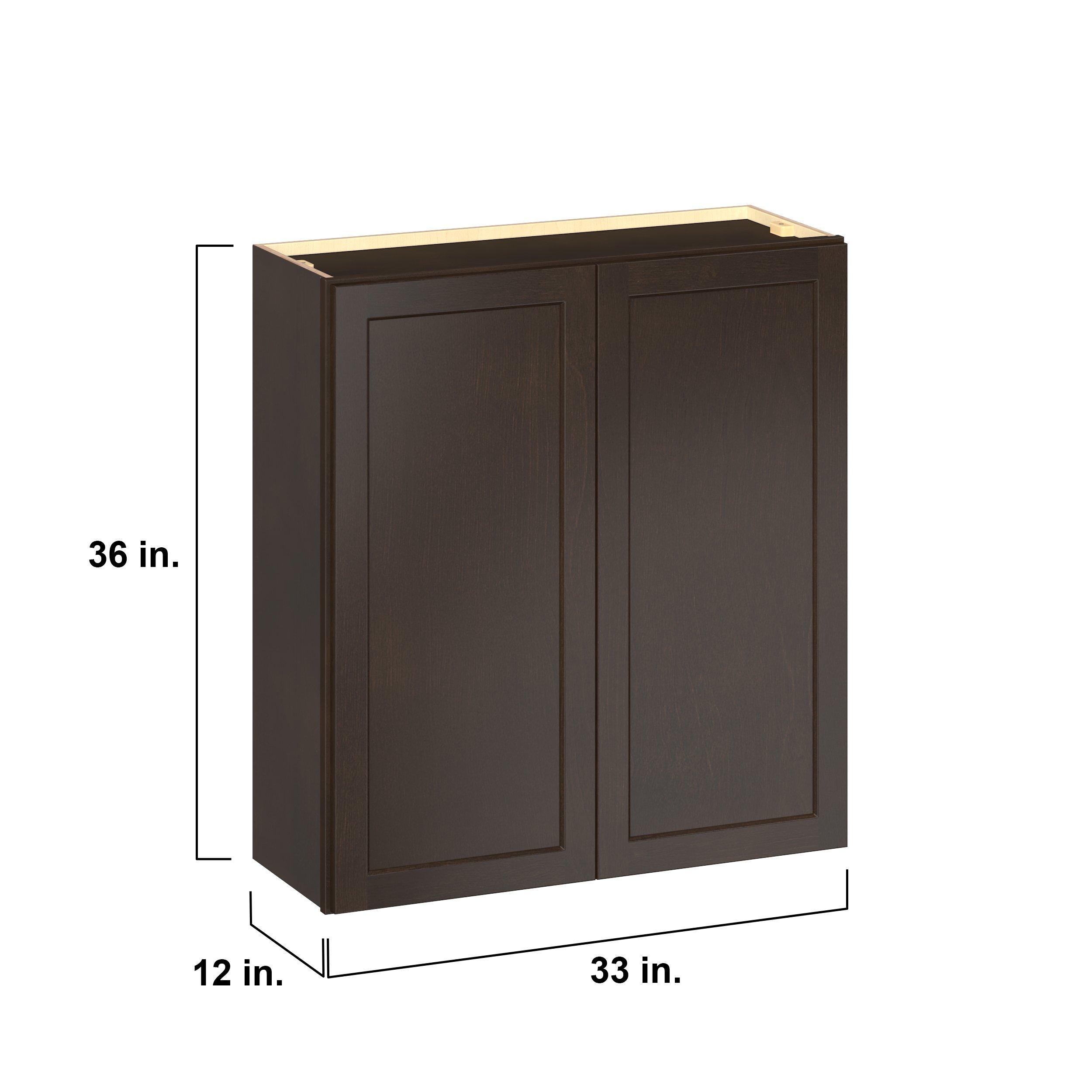 Embrace the timeless charm of the Baxley classic shaker door style. Studio Design Collection Baxley 33 in. Stained Cocoa Door Wall Cabinet features all plywood construction, offering both superior strength and sophistication to your space. Featuring 5-piece solid wood doors and dovetail drawer joints, these cabinets offer durability and elegance. Baxley classic shaker door style is designed to retain its stunning appearance and withstand the test of time.