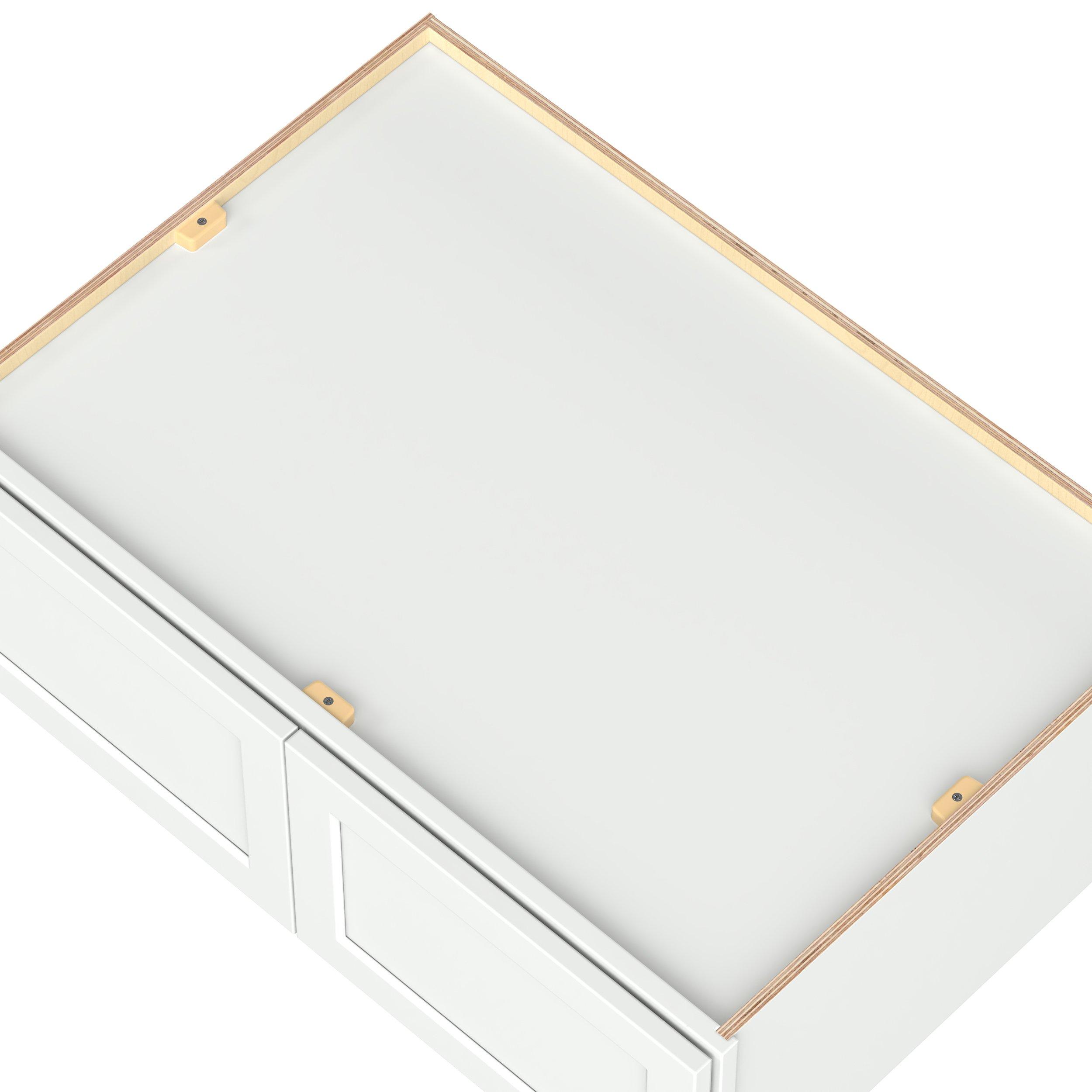 Embrace the timeless charm of the Baxley classic shaker door style. Studio Design Collection Baxley 36 in. Painted Pure White Bridge Wall Cabinet features all plywood construction, offering both superior strength and sophistication to your space. Featuring 5-piece MDF doors and dovetail drawer joints, these cabinets offer durability and elegance. Baxley classic shaker door style is designed to retain its stunning appearance and withstand the test of time.