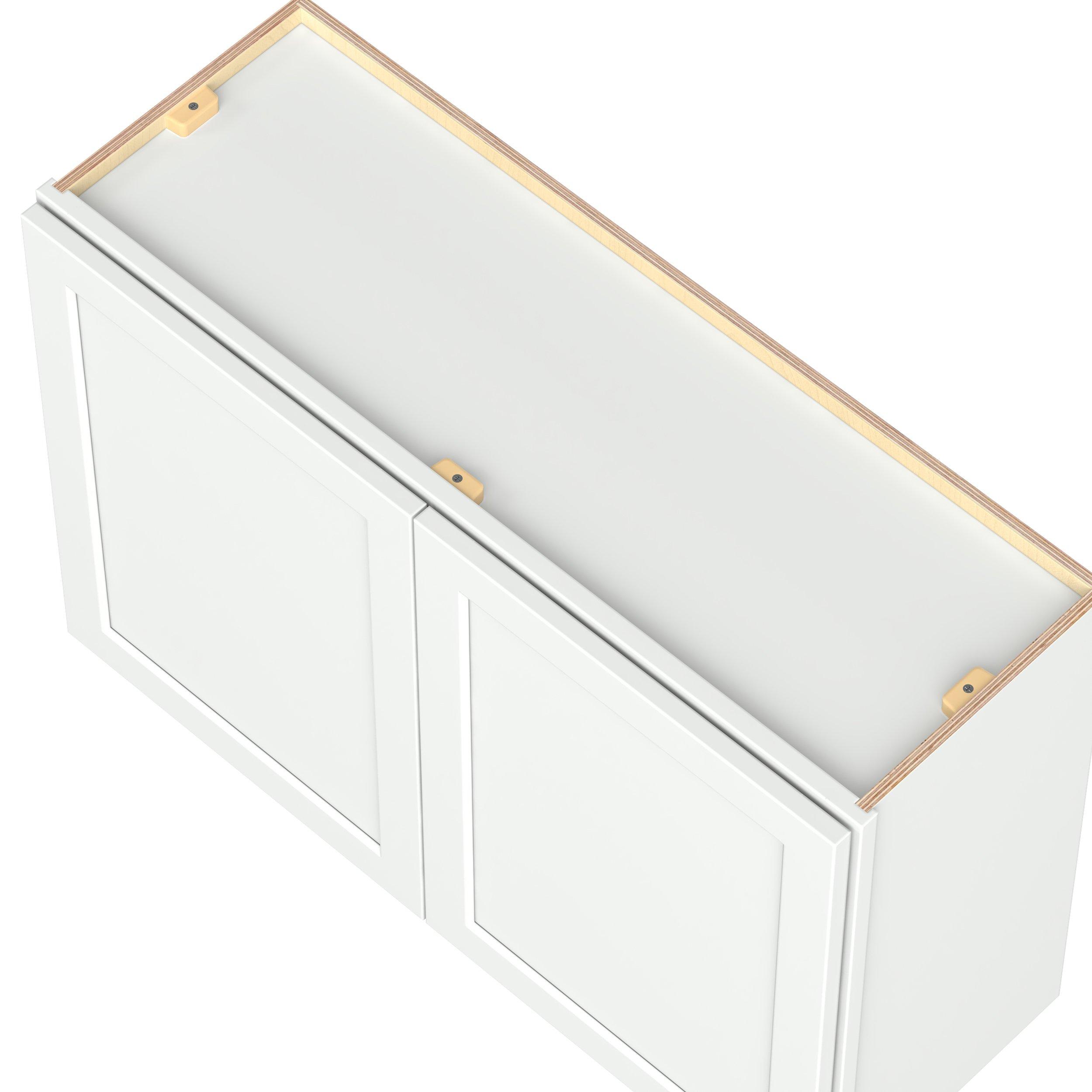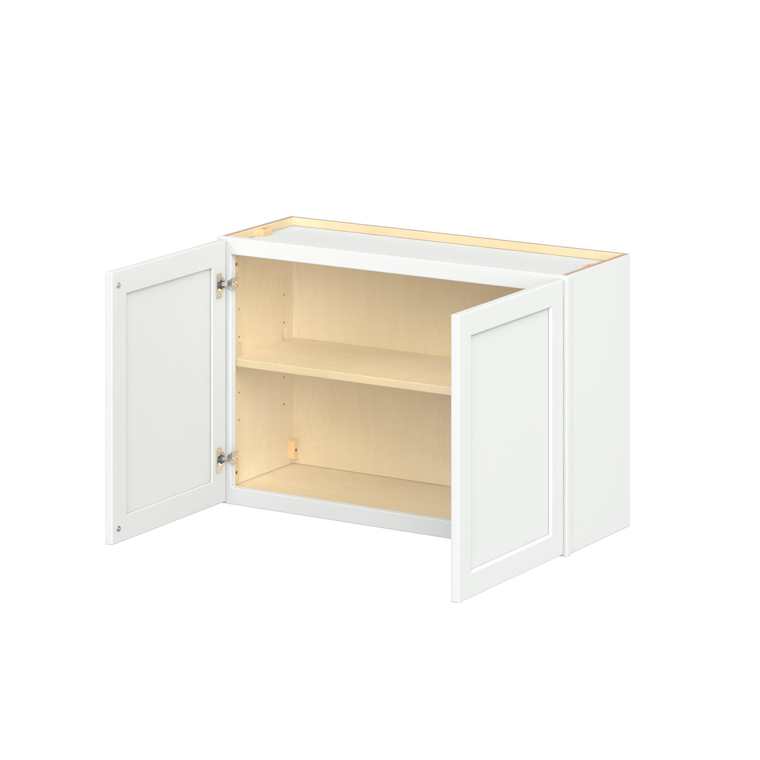 Embrace the timeless charm of the Baxley classic shaker door style. Studio Design Collection Baxley 36 in. Painted Pure White Bridge Wall Cabinet features all plywood construction, offering both superior strength and sophistication to your space. Featuring 5-piece MDF doors and dovetail drawer joints, these cabinets offer durability and elegance. Baxley classic shaker door style is designed to retain its stunning appearance and withstand the test of time.