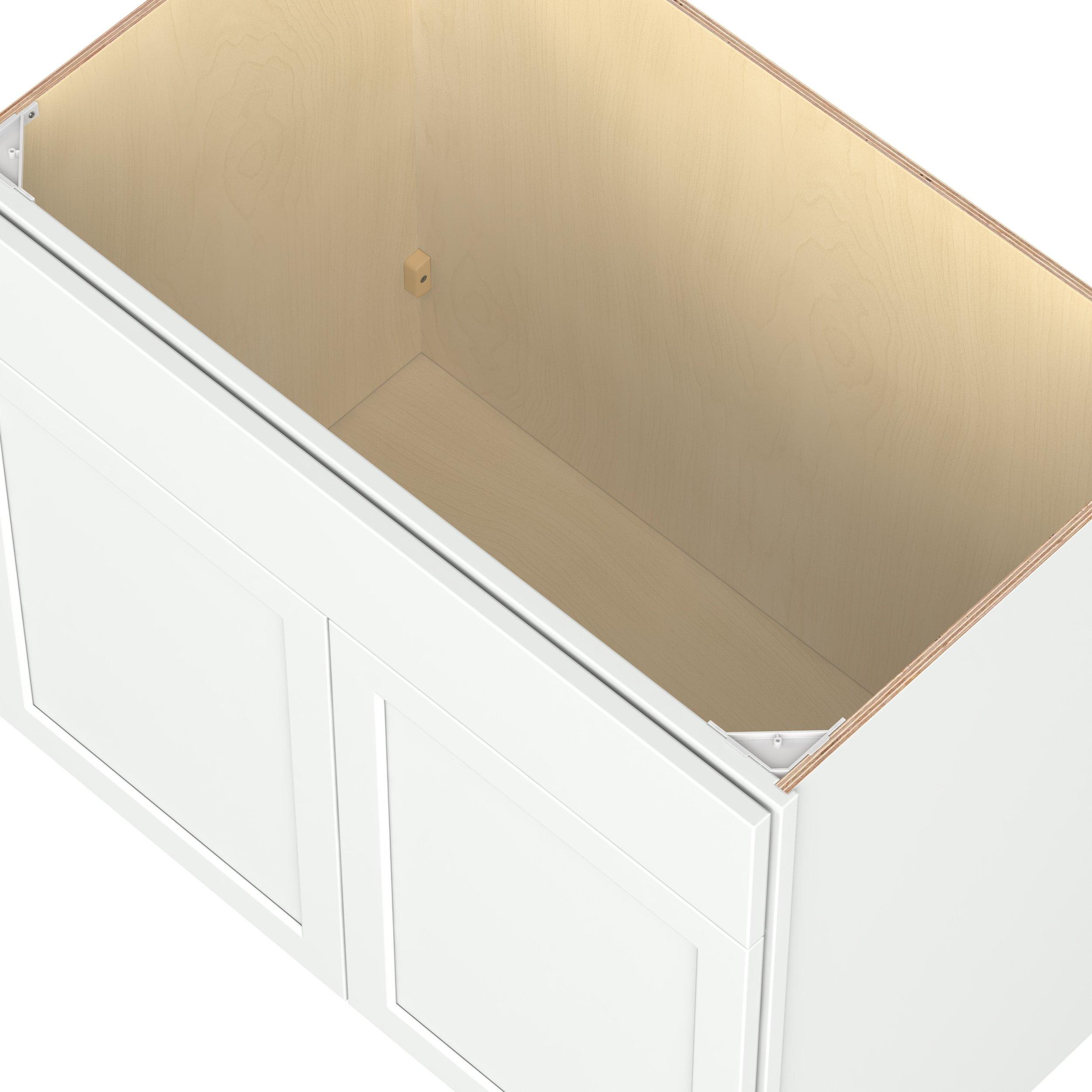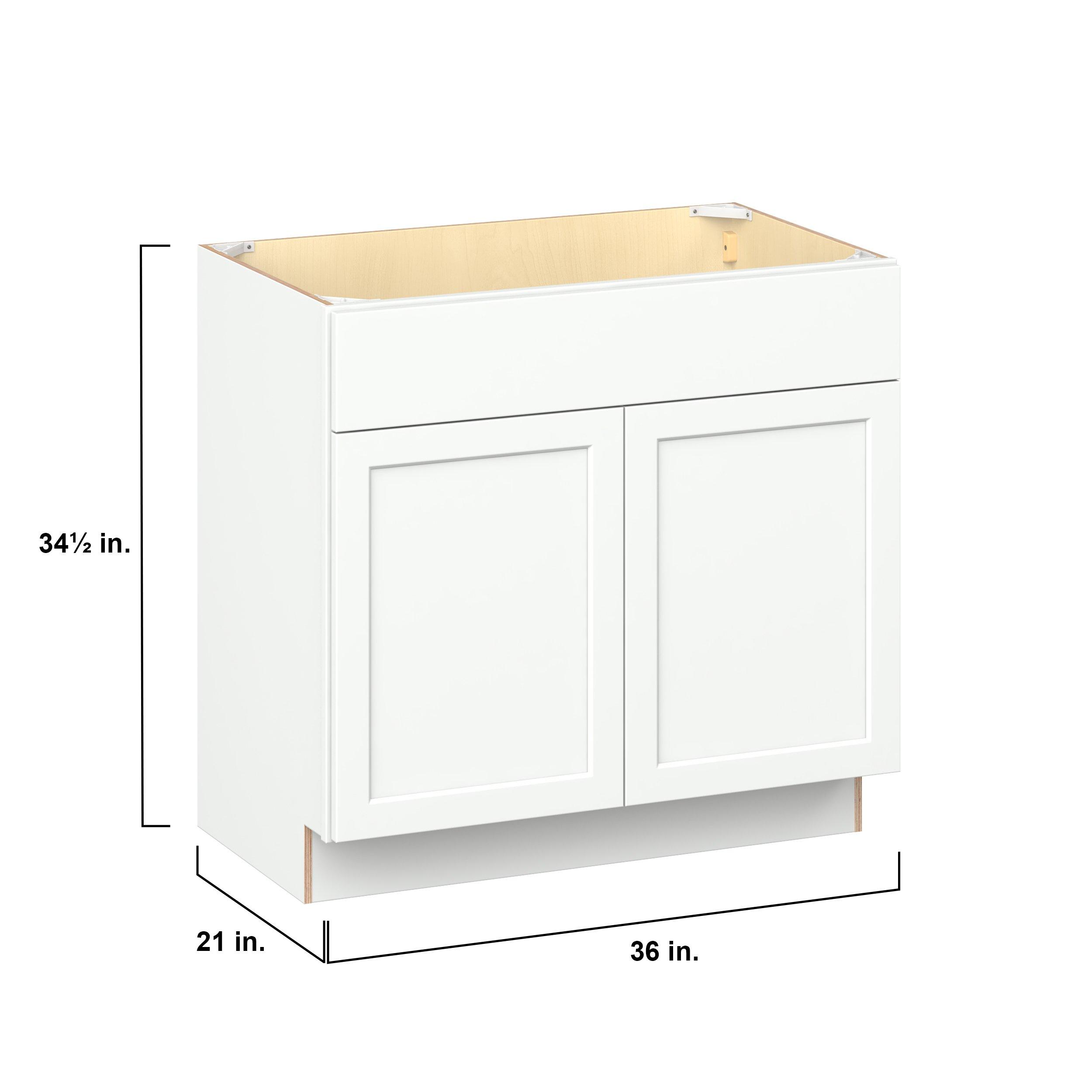 Embrace the timeless charm of the Baxley classic shaker door style. Studio Design Collection Baxley 36 in. Painted Pure White Vanity Sink Base Cabinet features all plywood construction, offering both superior strength and sophistication to your space. Featuring 5-piece MDF doors and dovetail drawer joints, these cabinets offer durability and elegance. Baxley classic shaker door style is designed to retain its stunning appearance and withstand the test of time.