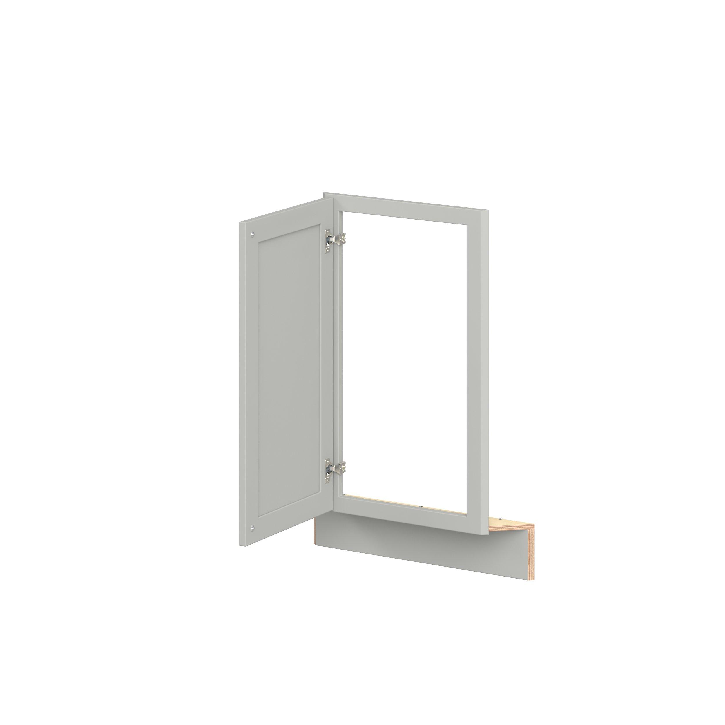 Embrace the timeless charm of the Baxley classic shaker door style. Studio Design Collection Baxley 36 in. Painted Whisper Gray Angled Corner Base Frame with Door - Left Door Hinge features all plywood construction, offering both superior strength and sophistication to your space. Featuring 5-piece MDF doors and dovetail drawer joints, these cabinets offer durability and elegance. Baxley classic shaker door style is designed to retain its stunning appearance and withstand the test of time.