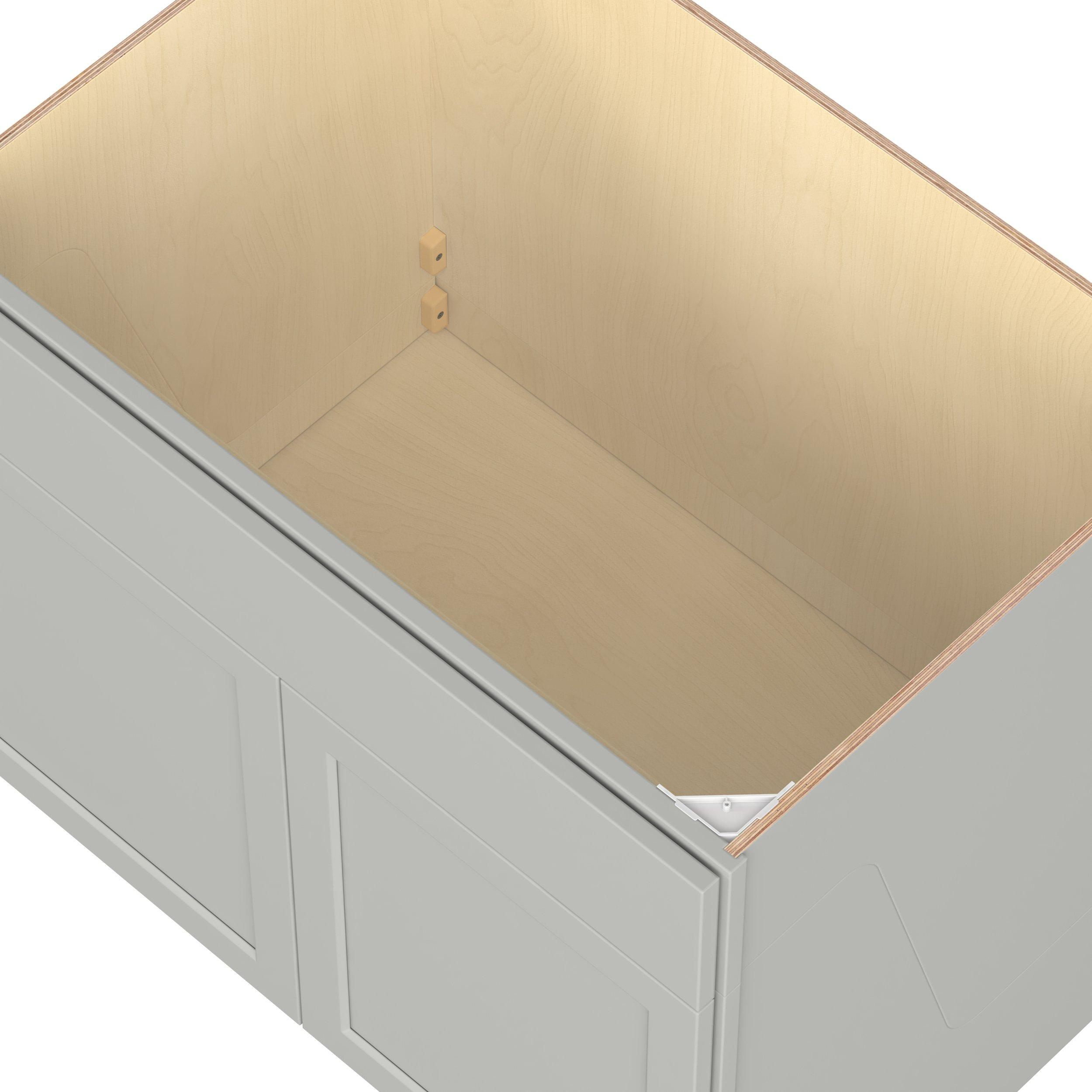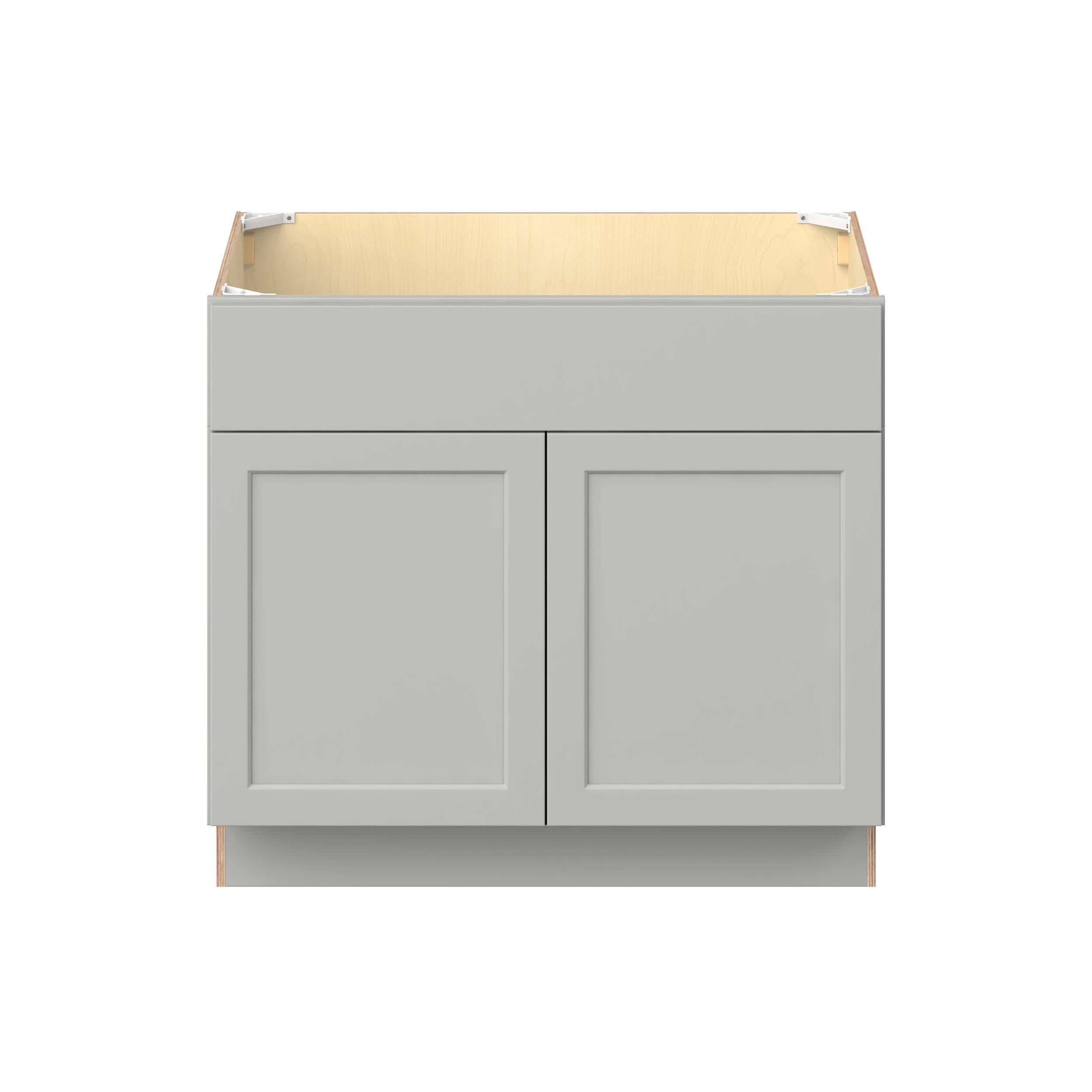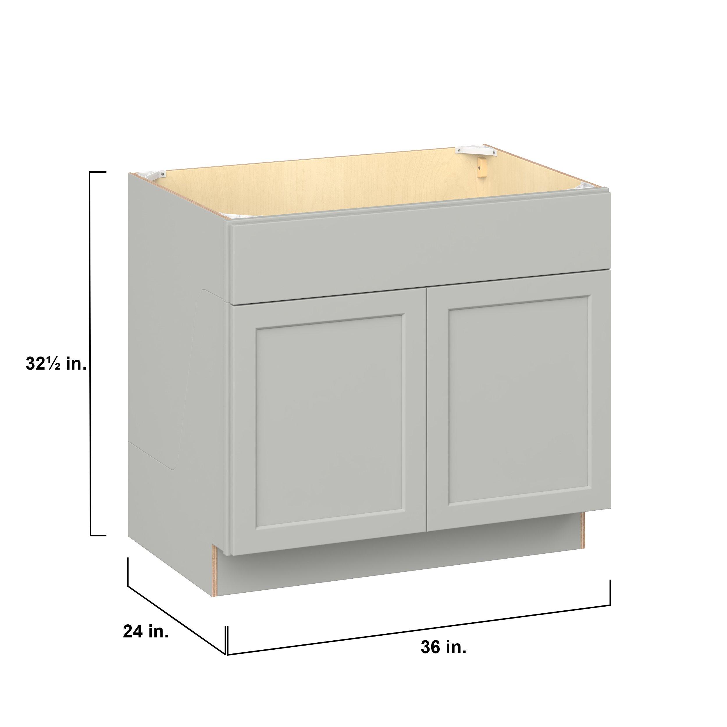 Embrace the timeless charm of the Baxley classic shaker door style. Studio Design Collection Baxley 36 in. Painted Whisper Gray Sink Base Cabinet with Removable Front - ADA features all plywood construction, offering both superior strength and sophistication to your space. Featuring 5-piece MDF doors and dovetail drawer joints, these cabinets offer durability and elegance. Baxley classic shaker door style is designed to retain its stunning appearance and withstand the test of time.