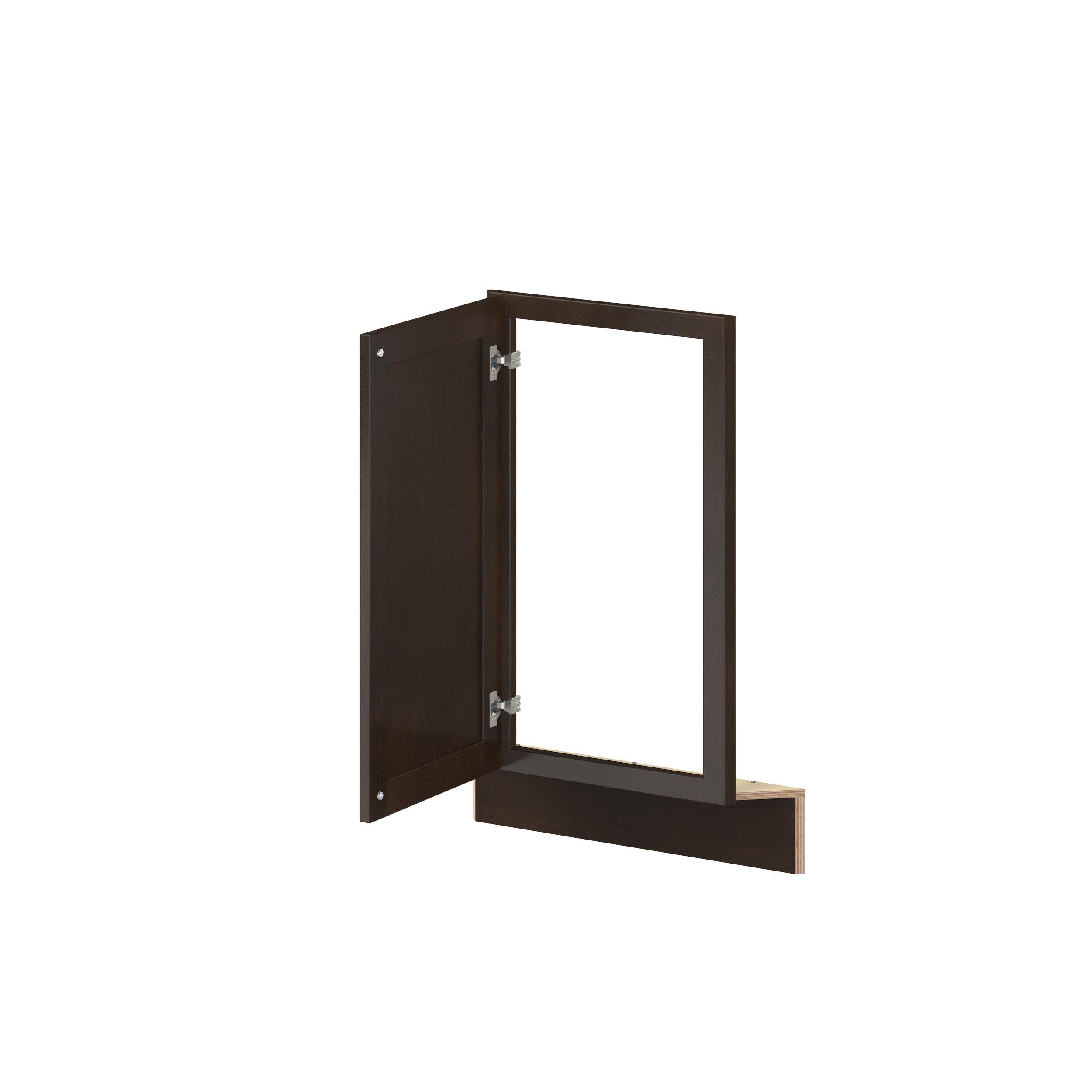 Embrace the timeless charm of the Baxley classic shaker door style. Studio Design Collection Baxley 36 in. Stained Cocoa Angled Corner Base Frame with Door - Left Door Hinge features all plywood construction, offering both superior strength and sophistication to your space. Featuring 5-piece solid wood doors and dovetail drawer joints, these cabinets offer durability and elegance. Baxley classic shaker door style is designed to retain its stunning appearance and withstand the test of time.