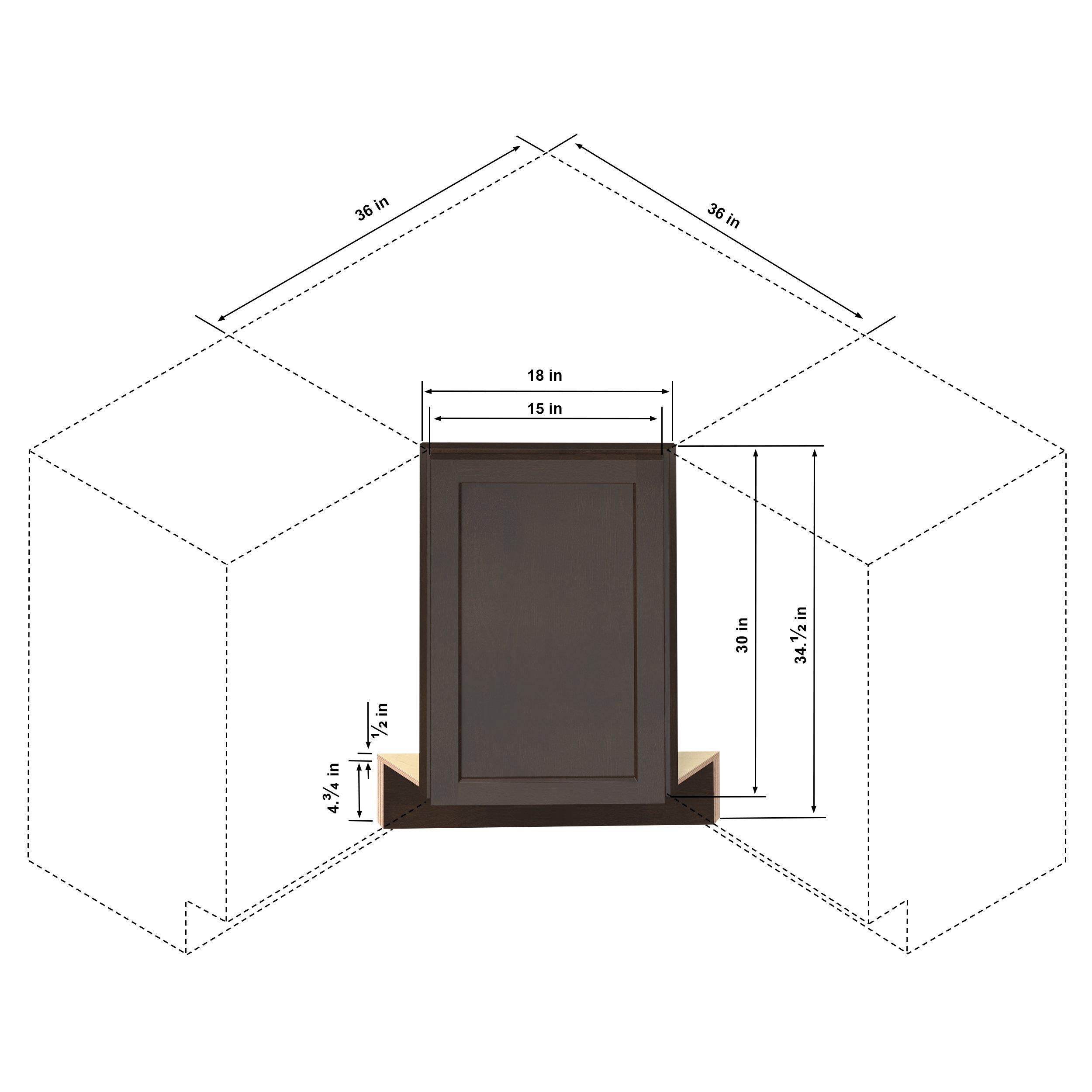 Embrace the timeless charm of the Baxley classic shaker door style. Studio Design Collection Baxley 36 in. Stained Cocoa Angled Corner Base Frame with Door - Right Door Hinge features all plywood construction, offering both superior strength and sophistication to your space. Featuring 5-piece solid wood doors and dovetail drawer joints, these cabinets offer durability and elegance. Baxley classic shaker door style is designed to retain its stunning appearance and withstand the test of time.