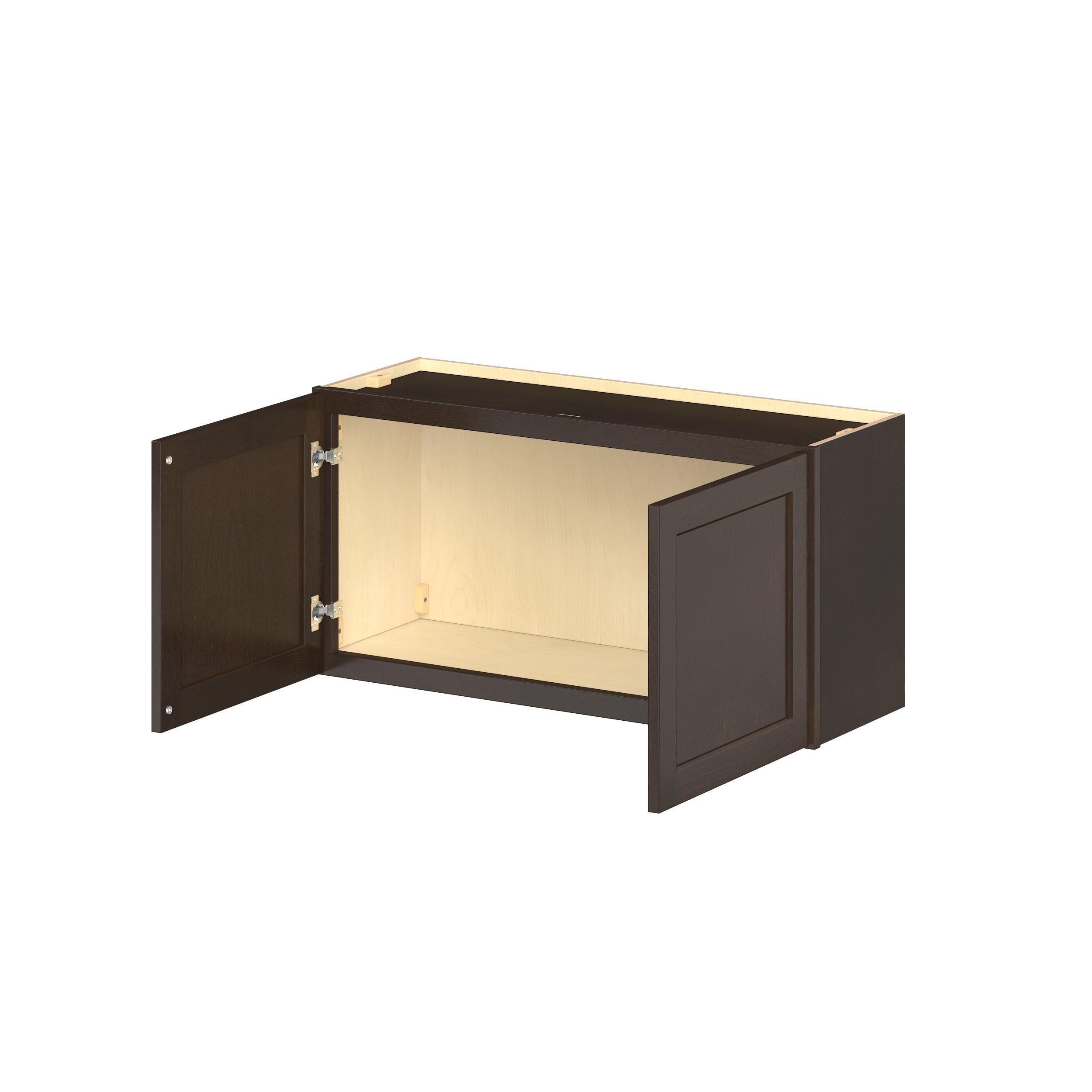 Embrace the timeless charm of the Baxley classic shaker door style. Studio Design Collection Baxley 36 in. Stained Cocoa Bridge Wall Cabinet features all plywood construction, offering both superior strength and sophistication to your space. Featuring 5-piece solid wood doors and dovetail drawer joints, these cabinets offer durability and elegance. Baxley classic shaker door style is designed to retain its stunning appearance and withstand the test of time.