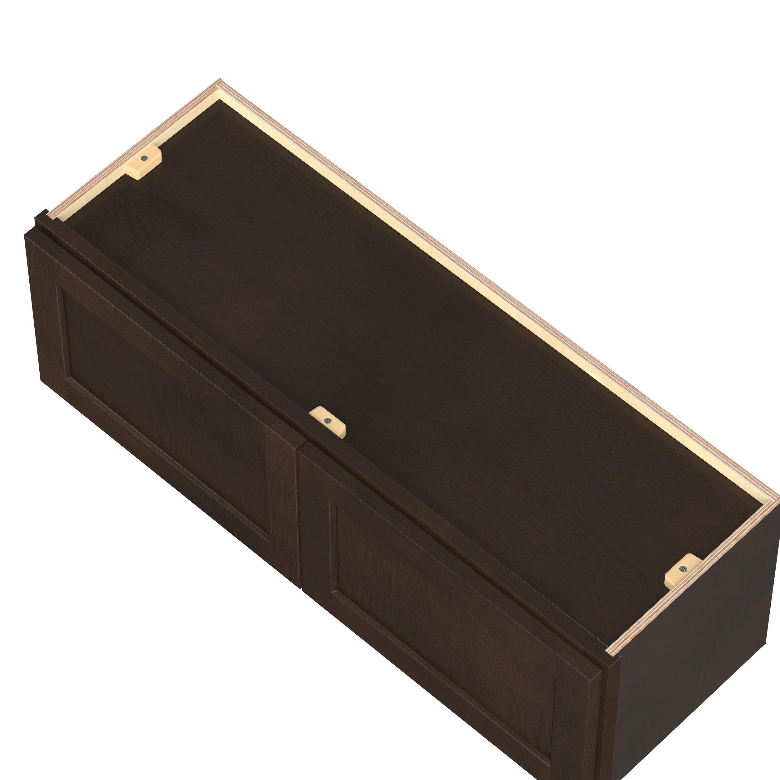 Embrace the timeless charm of the Baxley classic shaker door style. Studio Design Collection Baxley 36 in. Stained Cocoa Bridge Wall Cabinet features all plywood construction, offering both superior strength and sophistication to your space. Featuring 5-piece solid wood doors and dovetail drawer joints, these cabinets offer durability and elegance. Baxley classic shaker door style is designed to retain its stunning appearance and withstand the test of time.