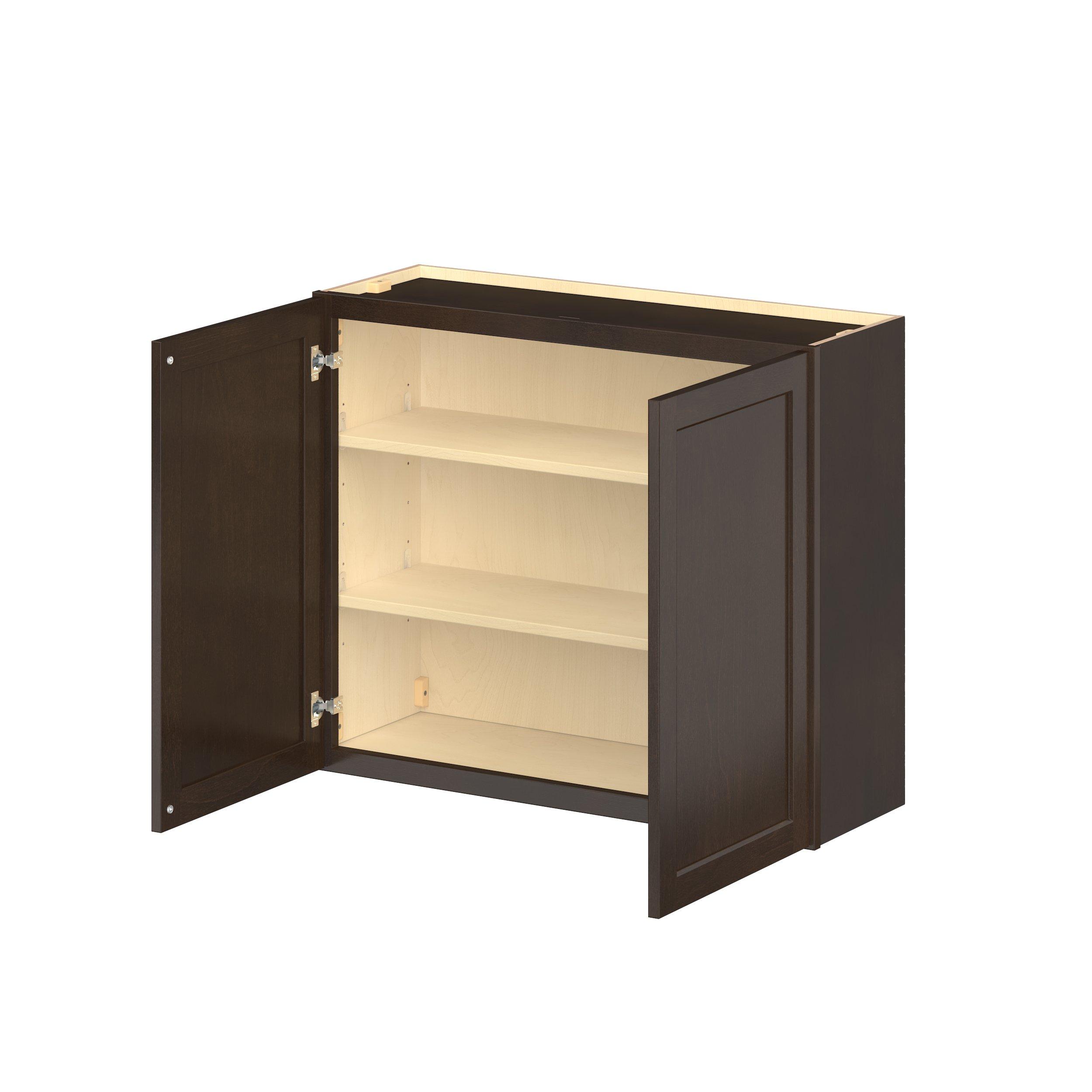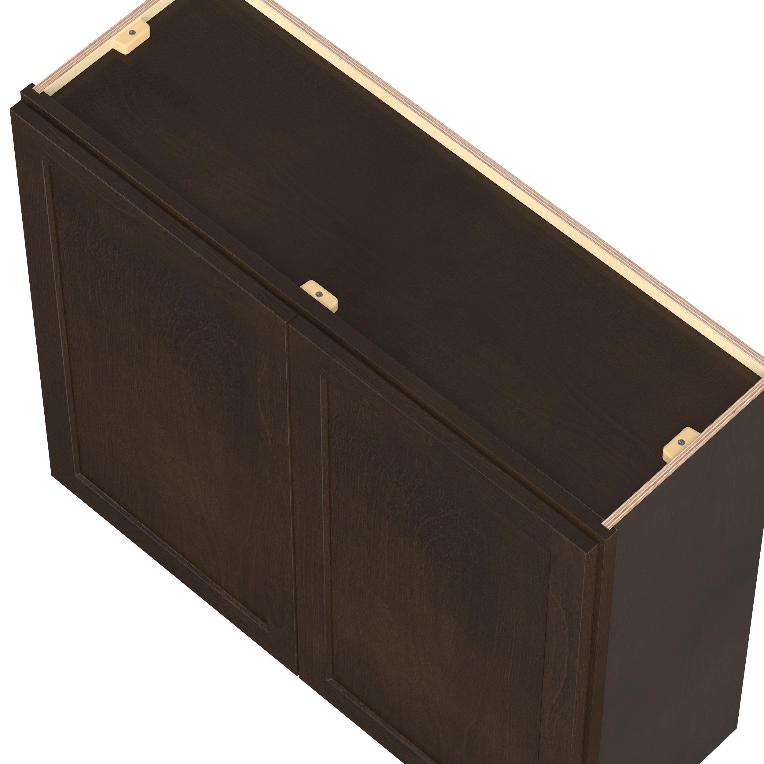 Embrace the timeless charm of the Baxley classic shaker door style. Studio Design Collection Baxley 36 in. Stained Cocoa Door Wall Cabinet features all plywood construction, offering both superior strength and sophistication to your space. Featuring 5-piece solid wood doors and dovetail drawer joints, these cabinets offer durability and elegance. Baxley classic shaker door style is designed to retain its stunning appearance and withstand the test of time.