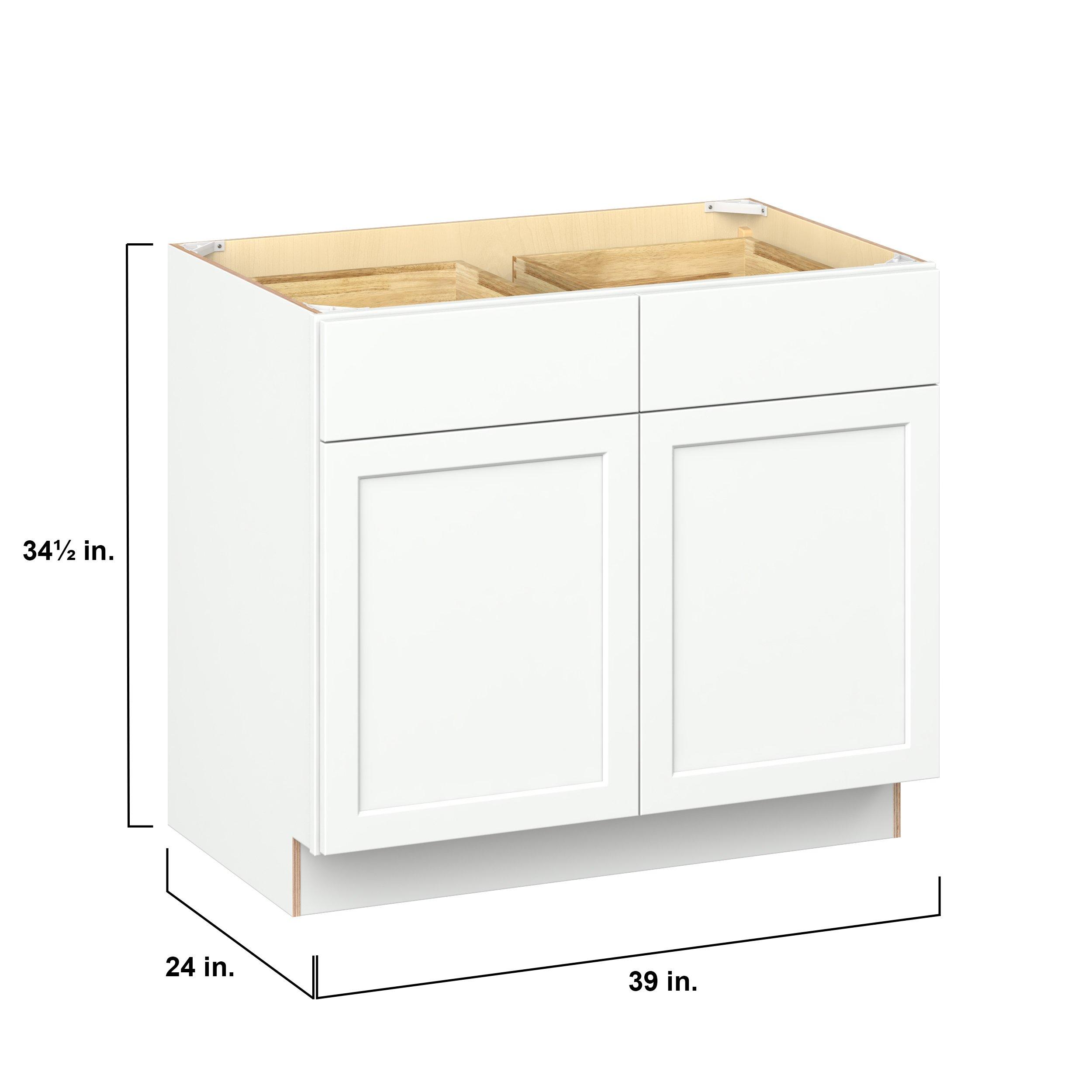 Embrace the timeless charm of the Baxley classic shaker door style. Studio Design Collection Baxley 39 in. Painted Pure White Door and Drawer Base Cabinet features all plywood construction, offering both superior strength and sophistication to your space. Featuring 5-piece MDF doors and dovetail drawer joints, these cabinets offer durability and elegance. Baxley classic shaker door style is designed to retain its stunning appearance and withstand the test of time.