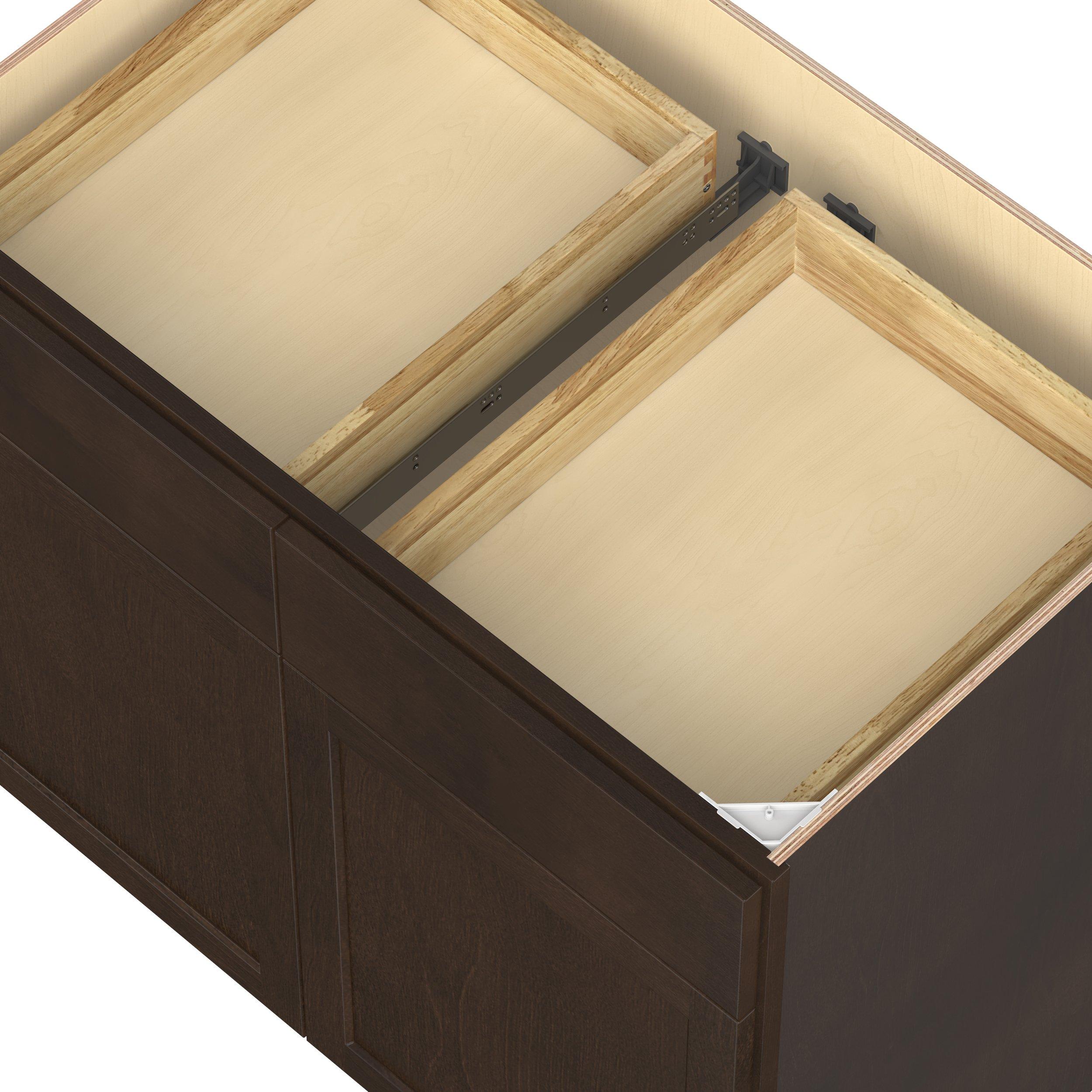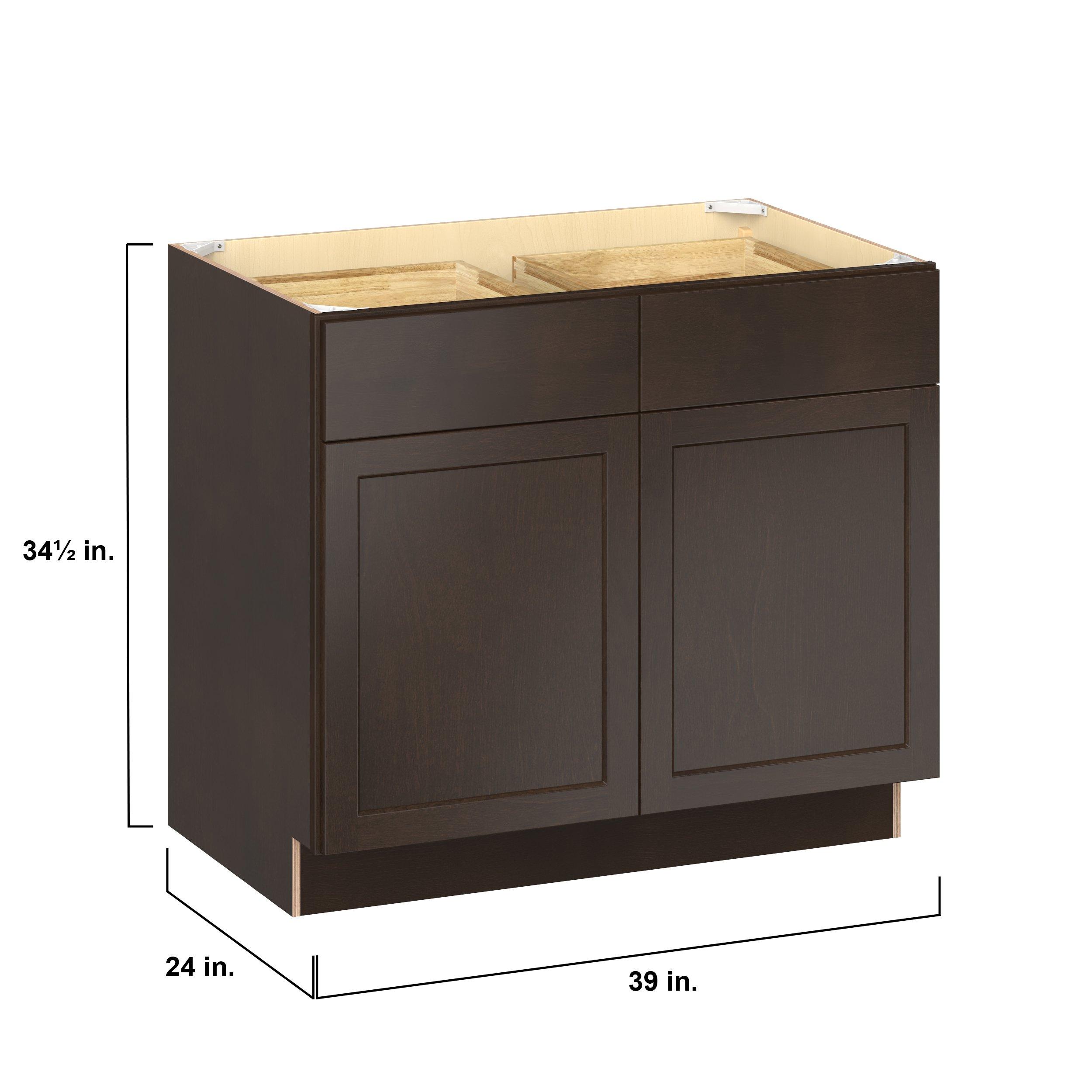 Embrace the timeless charm of the Baxley classic shaker door style. Studio Design Collection Baxley 39 in. Stained Cocoa Door and Drawer Base Cabinet features all plywood construction, offering both superior strength and sophistication to your space. Featuring 5-piece solid wood doors and dovetail drawer joints, these cabinets offer durability and elegance. Baxley classic shaker door style is designed to retain its stunning appearance and withstand the test of time.