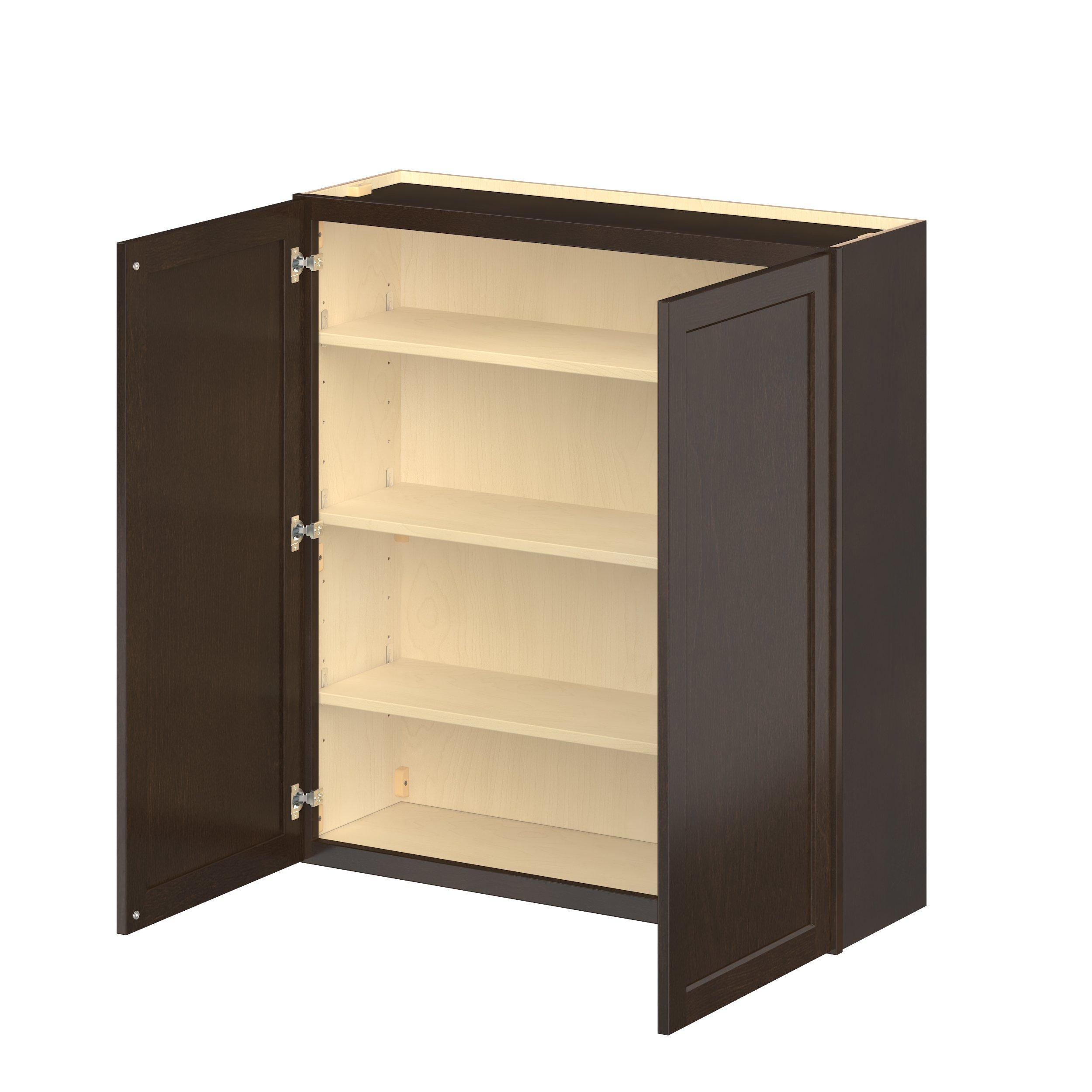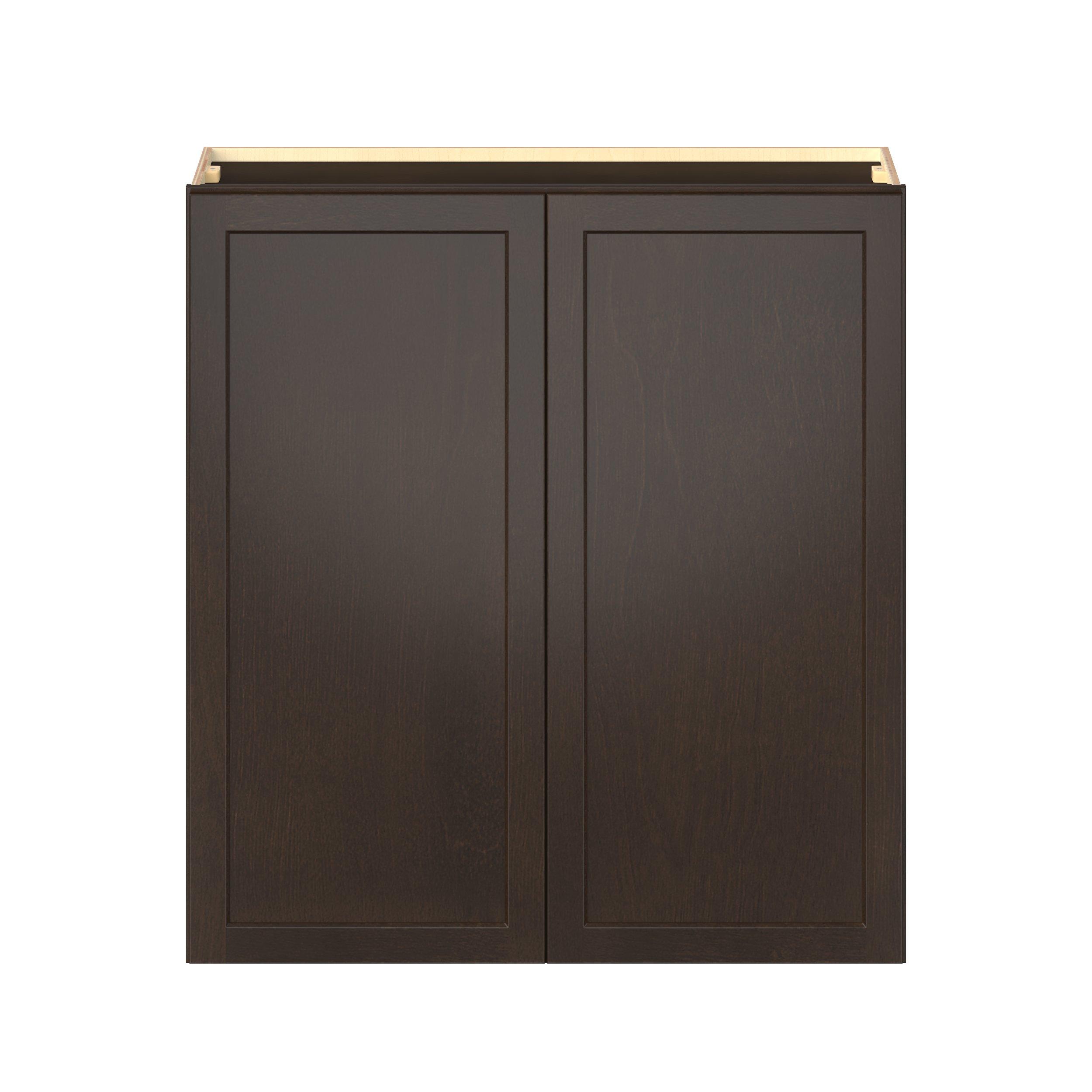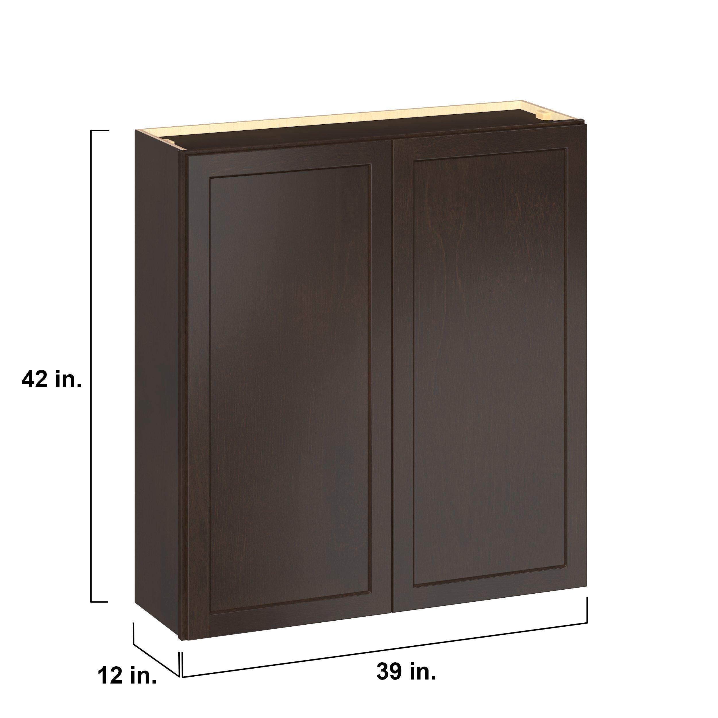 Embrace the timeless charm of the Baxley classic shaker door style. Studio Design Collection Baxley 39 in. Stained Cocoa Door Wall Cabinet features all plywood construction, offering both superior strength and sophistication to your space. Featuring 5-piece solid wood doors and dovetail drawer joints, these cabinets offer durability and elegance. Baxley classic shaker door style is designed to retain its stunning appearance and withstand the test of time.