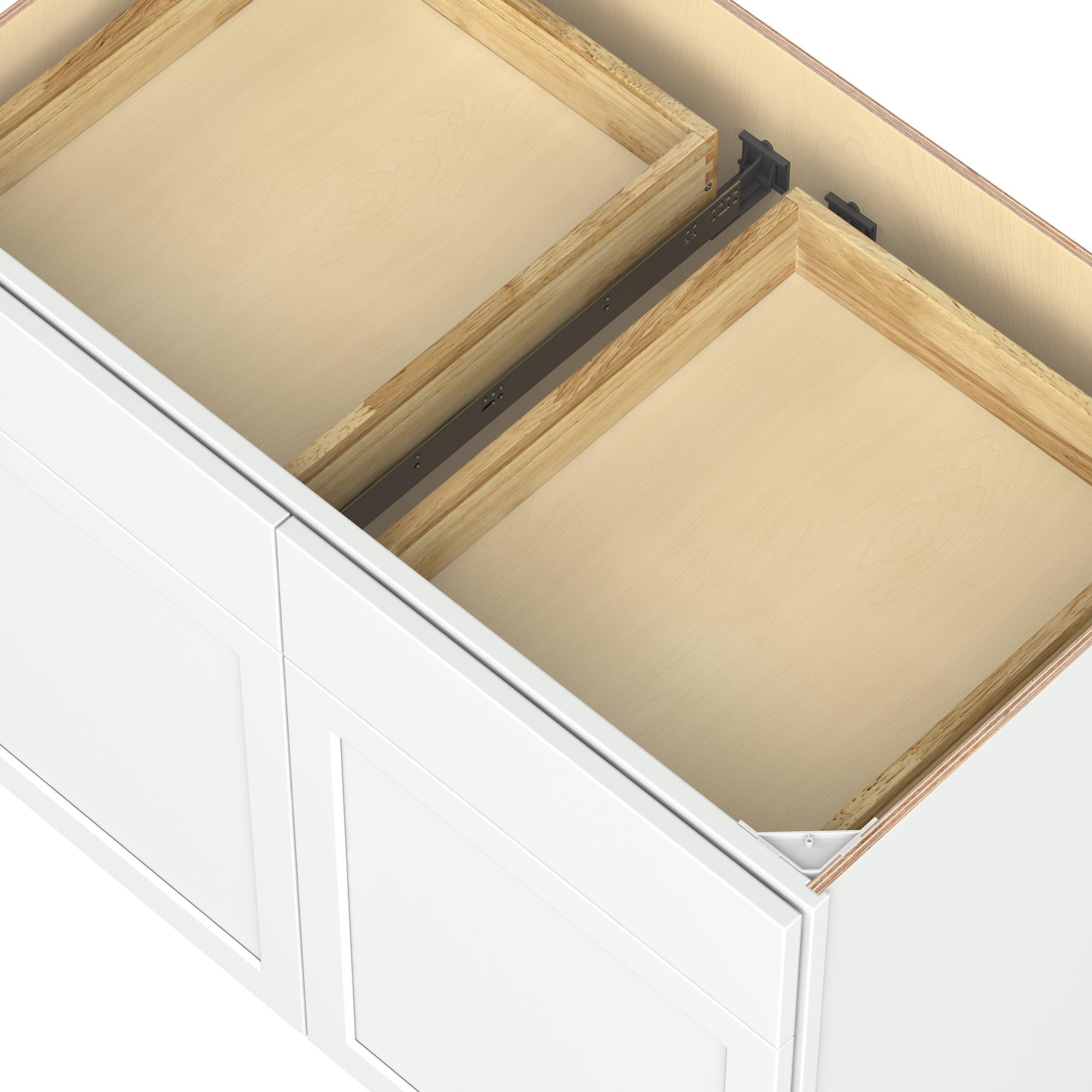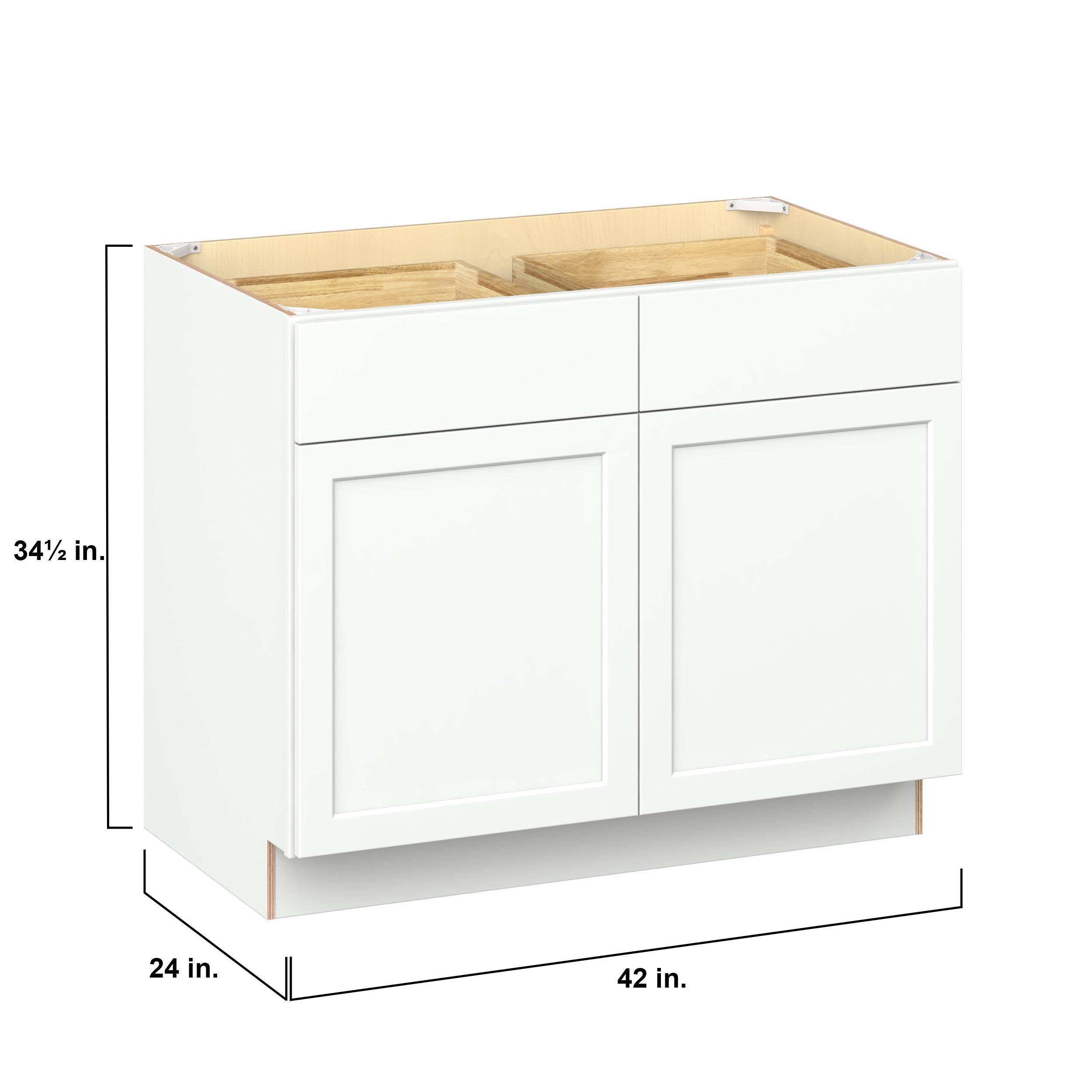 Embrace the timeless charm of the Baxley classic shaker door style. Studio Design Collection Baxley 42 in. Painted Pure White Door and Drawer Base Cabinet features all plywood construction, offering both superior strength and sophistication to your space. Featuring 5-piece MDF doors and dovetail drawer joints, these cabinets offer durability and elegance. Baxley classic shaker door style is designed to retain its stunning appearance and withstand the test of time.