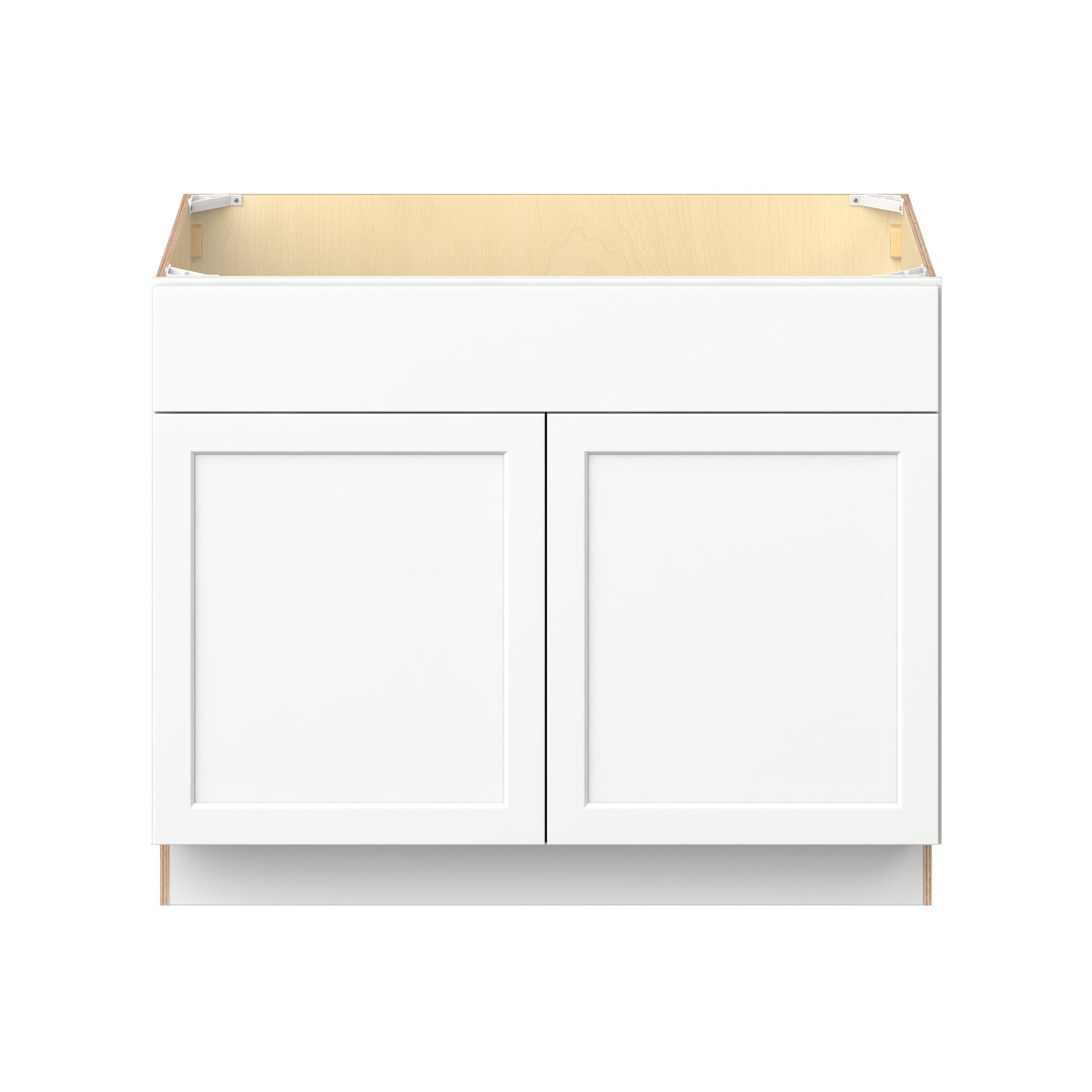 Embrace the timeless charm of the Baxley classic shaker door style. Studio Design Collection Baxley 42 in. Painted Pure White Sink Base Cabinet with False Front features all plywood construction, offering both superior strength and sophistication to your space. Featuring 5-piece MDF doors and dovetail drawer joints, these cabinets offer durability and elegance. Baxley classic shaker door style is designed to retain its stunning appearance and withstand the test of time.