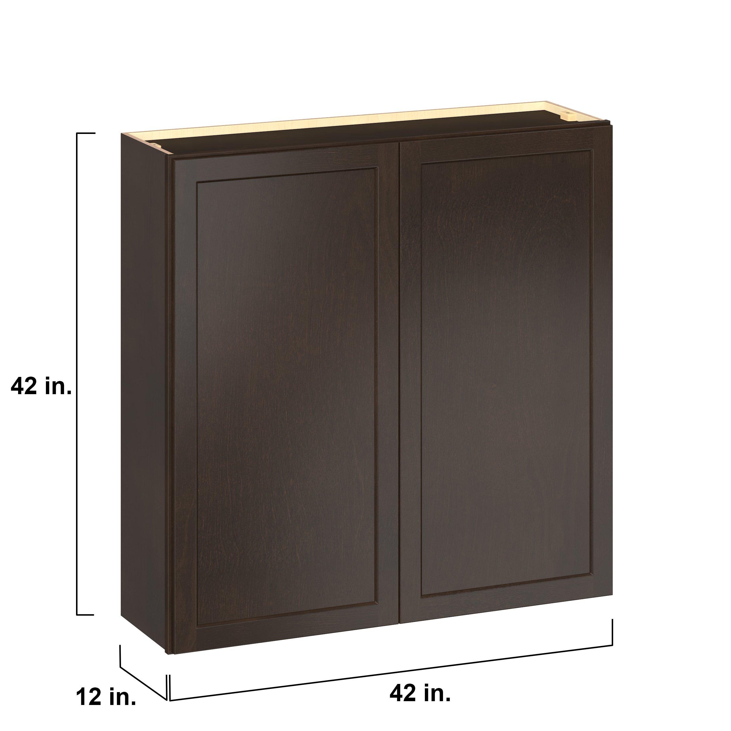 Embrace the timeless charm of the Baxley classic shaker door style. Studio Design Collection Baxley 42 in. Stained Cocoa Door Wall Cabinet features all plywood construction, offering both superior strength and sophistication to your space. Featuring 5-piece solid wood doors and dovetail drawer joints, these cabinets offer durability and elegance. Baxley classic shaker door style is designed to retain its stunning appearance and withstand the test of time.