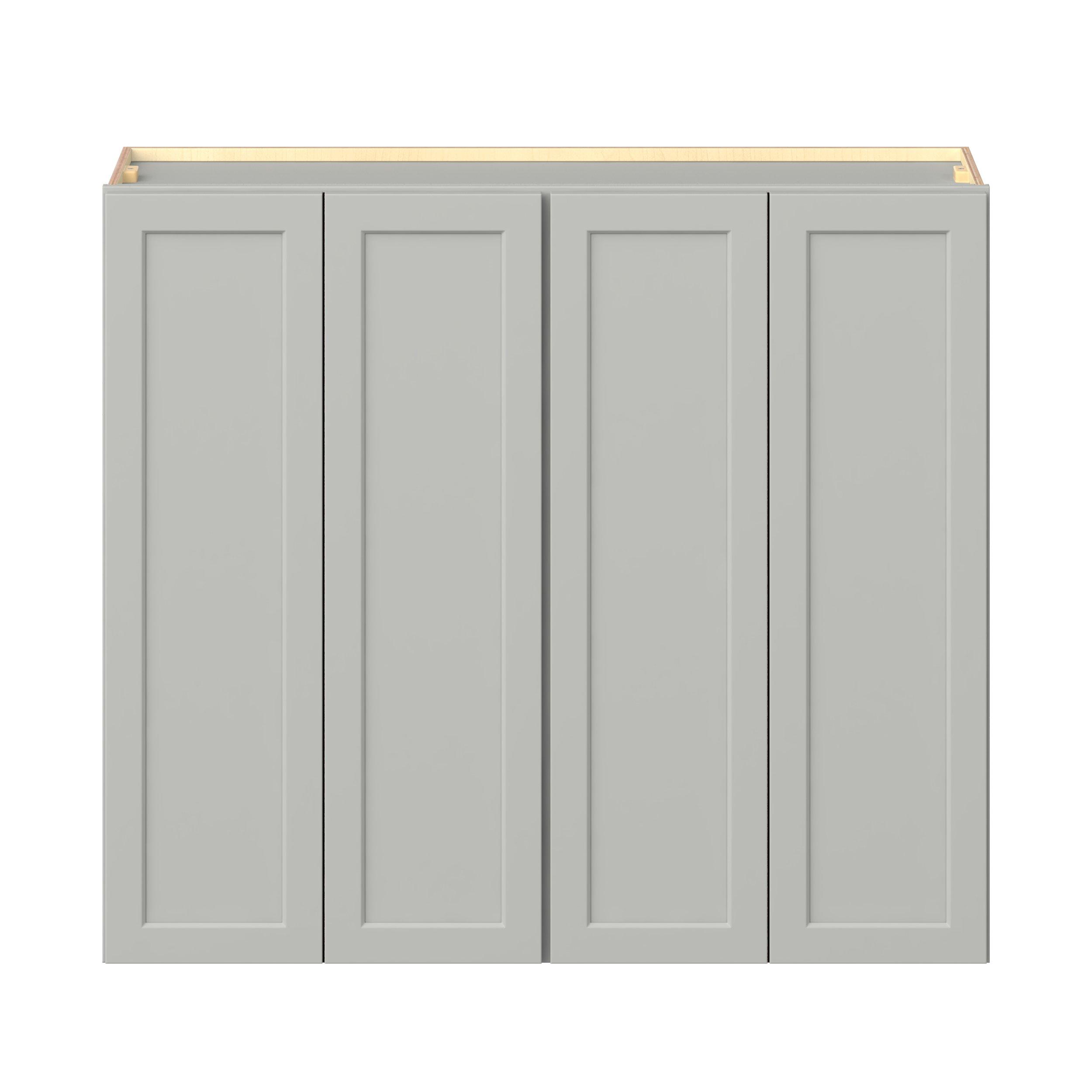 Embrace the timeless charm of the Baxley classic shaker door style. Studio Design Collection Baxley 48 in. Painted Whisper Gray Door Wall Cabinet features all plywood construction, offering both superior strength and sophistication to your space. Featuring 5-piece MDF doors and dovetail drawer joints, these cabinets offer durability and elegance. Baxley classic shaker door style is designed to retain its stunning appearance and withstand the test of time.