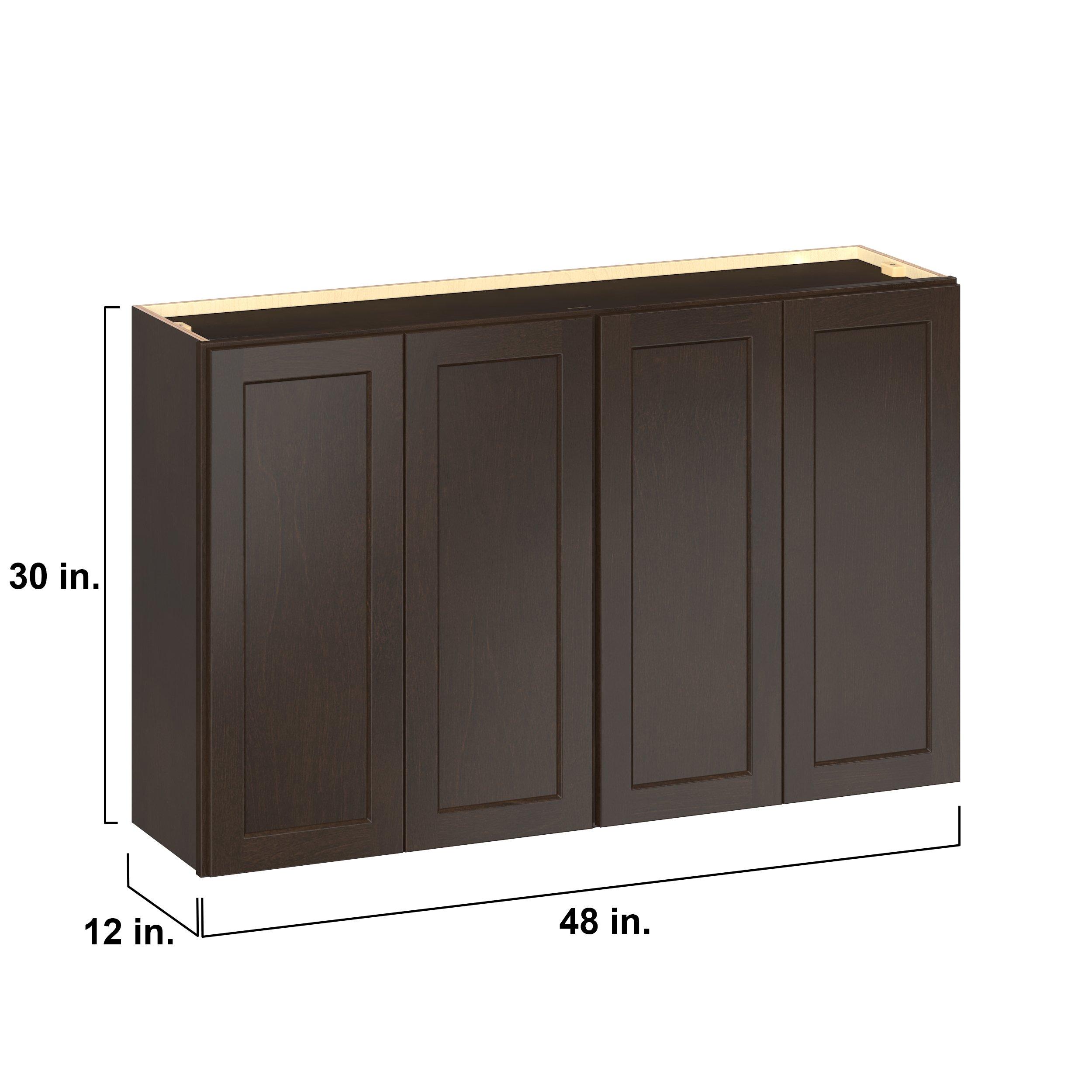 Embrace the timeless charm of the Baxley classic shaker door style. Studio Design Collection Baxley 48 in. Stained Cocoa Door Wall Cabinet features all plywood construction, offering both superior strength and sophistication to your space. Featuring 5-piece solid wood doors and dovetail drawer joints, these cabinets offer durability and elegance. Baxley classic shaker door style is designed to retain its stunning appearance and withstand the test of time.