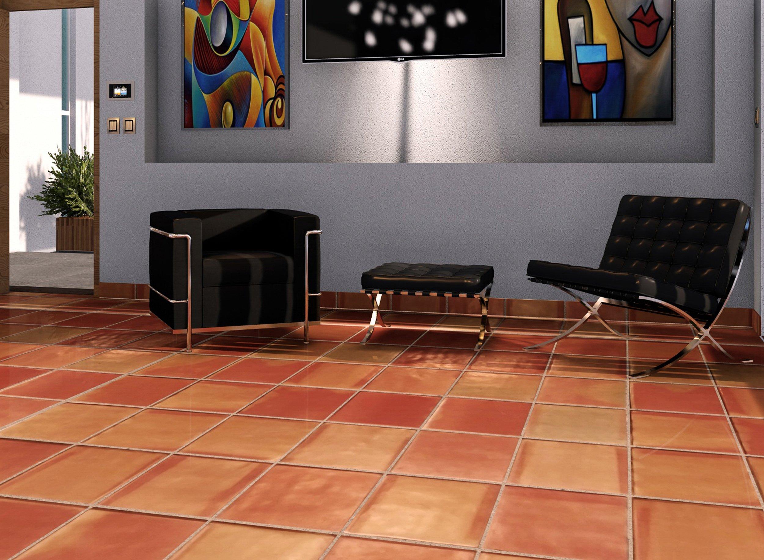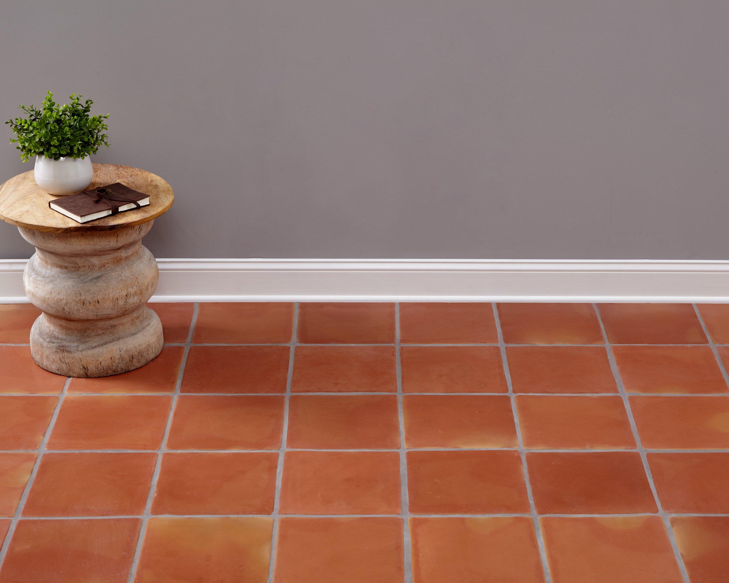 With a rust/ orange color, this Super Sealed Saltillo Tile is 12 x 12.