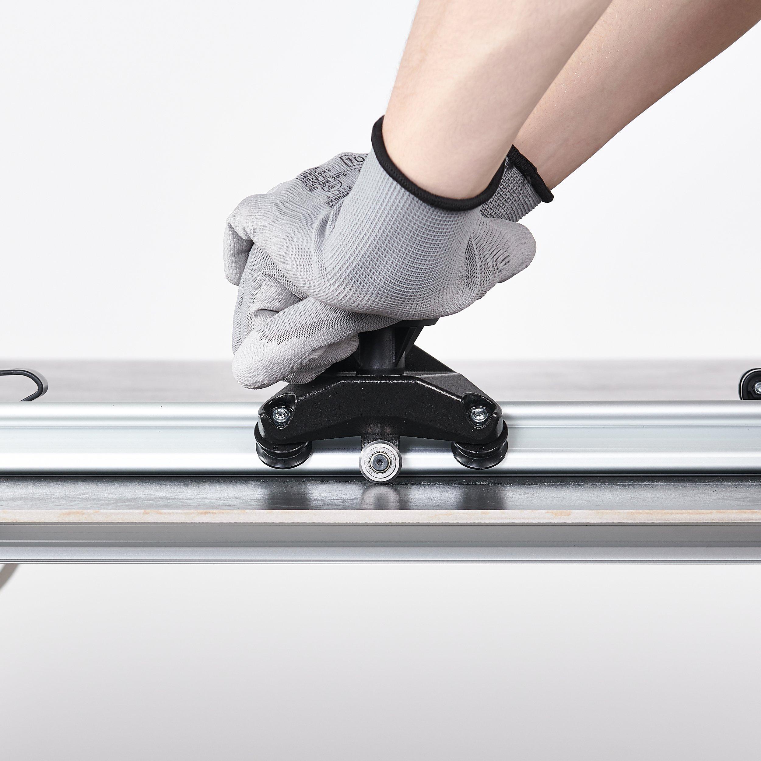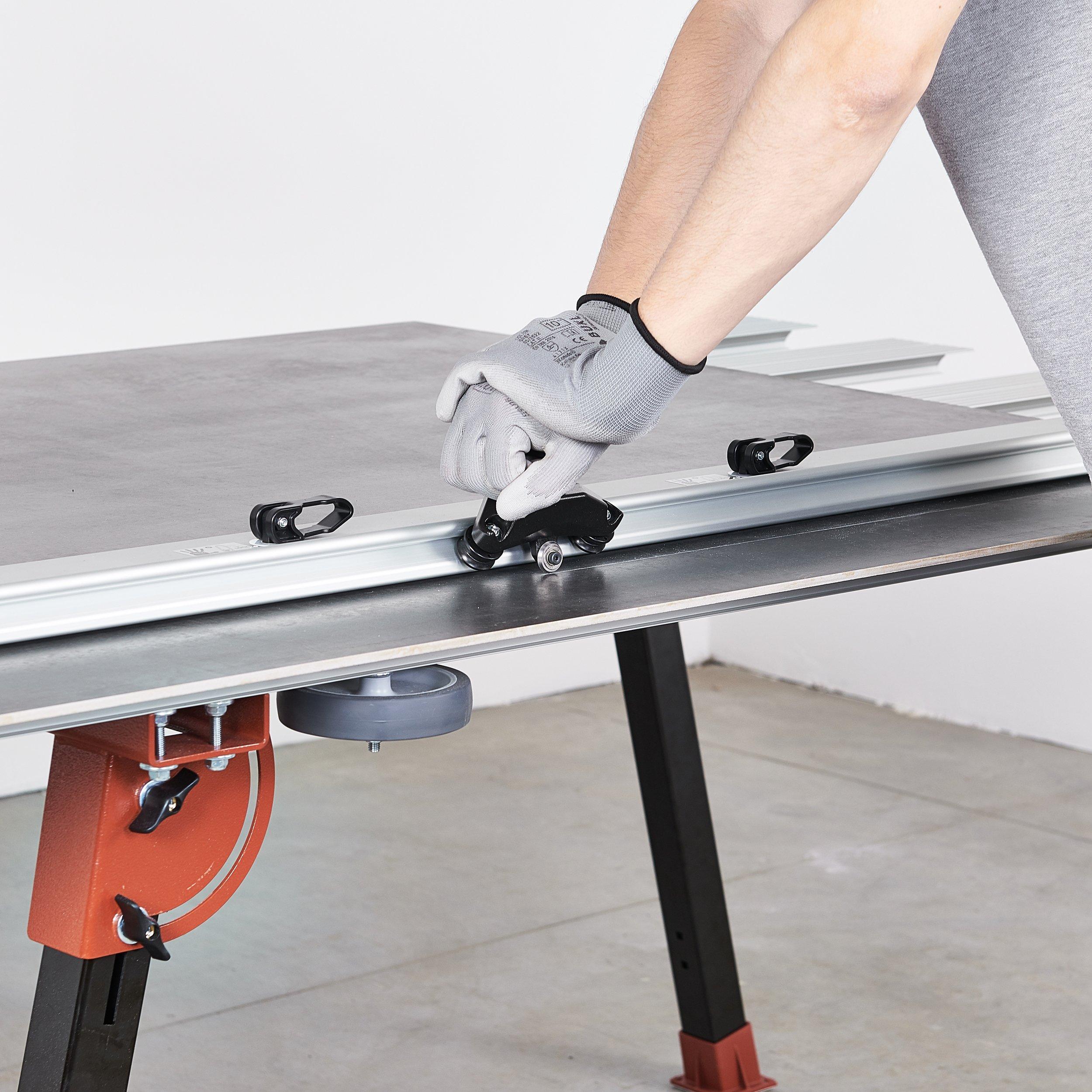 - Rail cutter for large format tiles providing the length of cut up to 10.8’ - 330 cm.