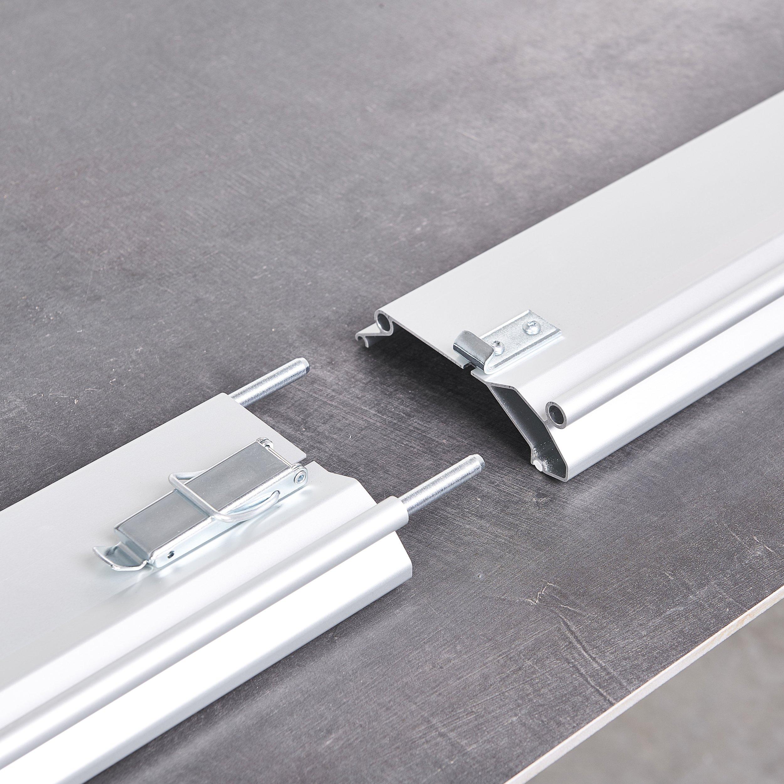 - Two connectable rails providing each 5.2’ (160 cm) length of cut. Each rail is equipped with 3 dual-lip suction cups; the length of the cut of the rails once connected is 10.8’ (330 cm)