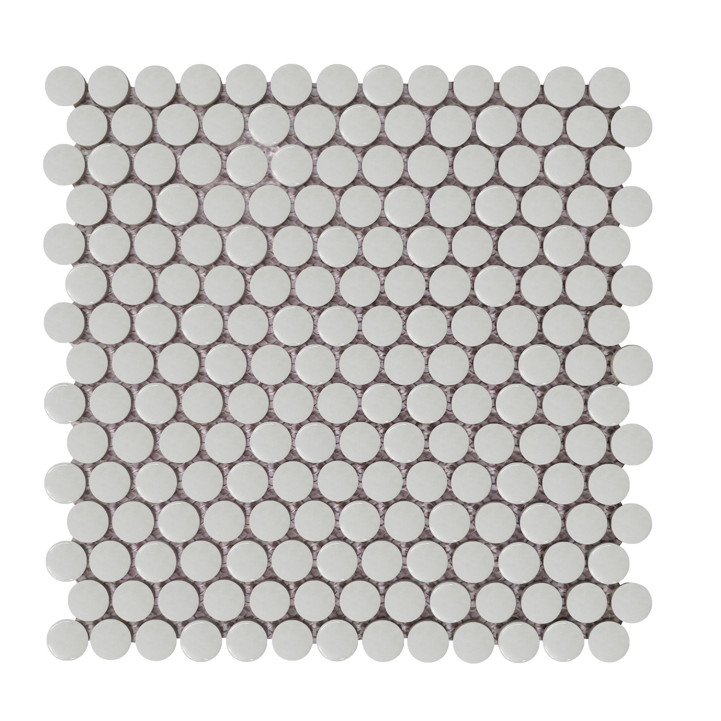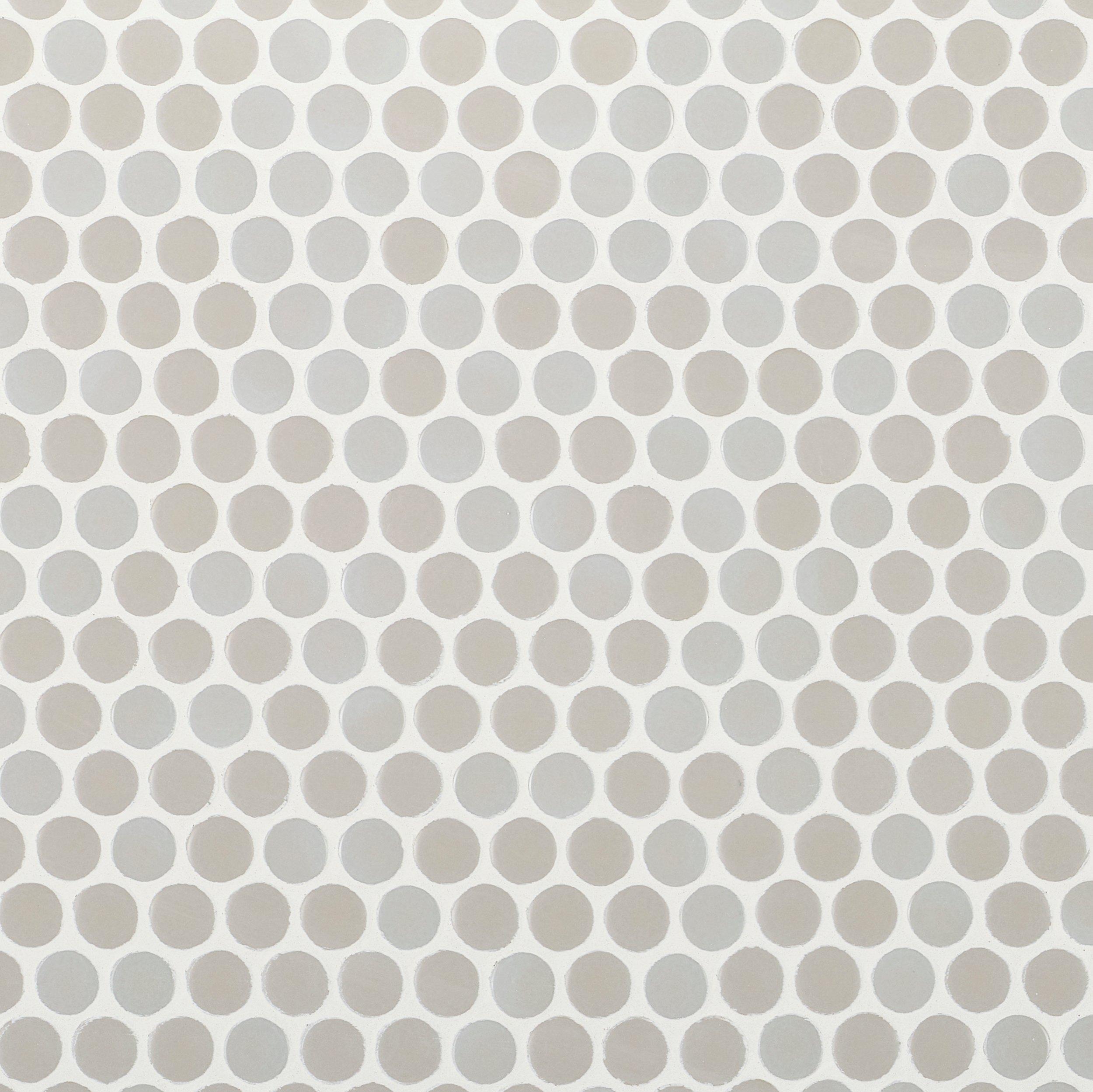 For an elevated look to your design, choose the Cashmere Mixed Finish Porcelain Penny Mosaic with a multi finish finish. Use this gray tile to add new visual interest in any space like the bathroom, kitchen, living room, and more.