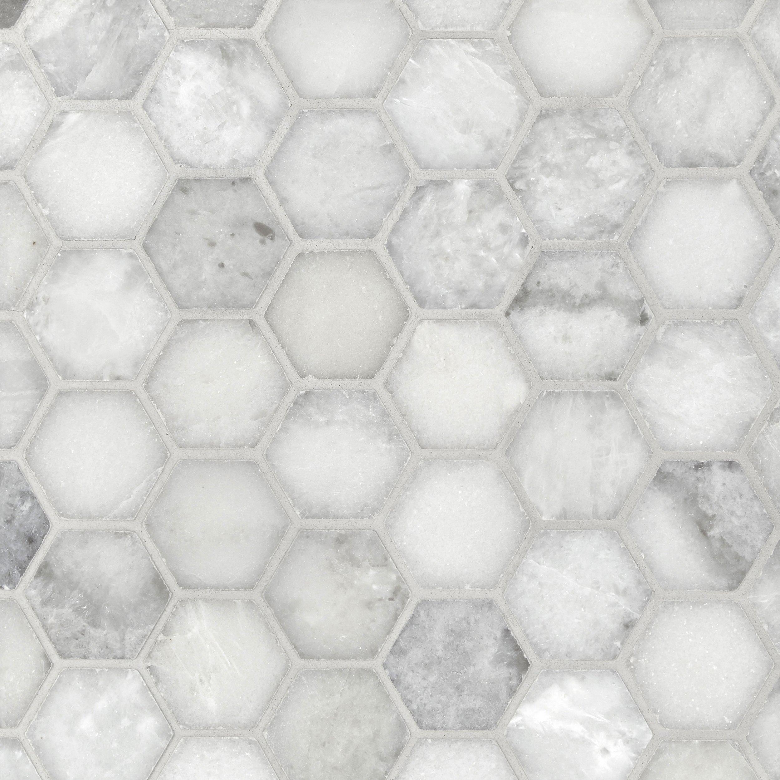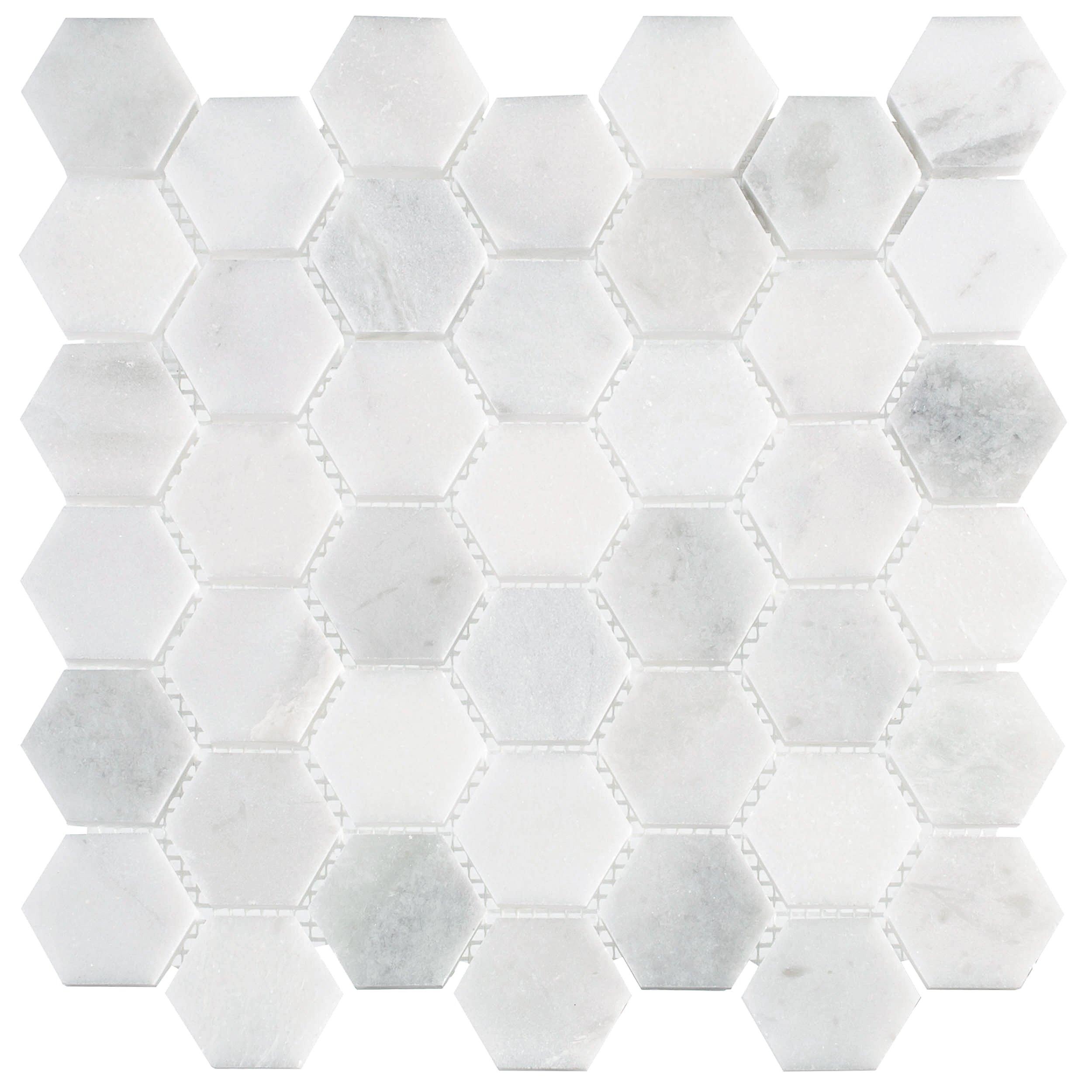 Natural stone like this beautiful Sahara Carrara 2 in. Hexagon Polished Marble Mosaic makes a timeless statement. This 12 x 12 decorative tile comes in white and has a polished or high gloss finish. With many styles to choose from in forever versatile marble, you’ll appreciate the unique style of this tile.