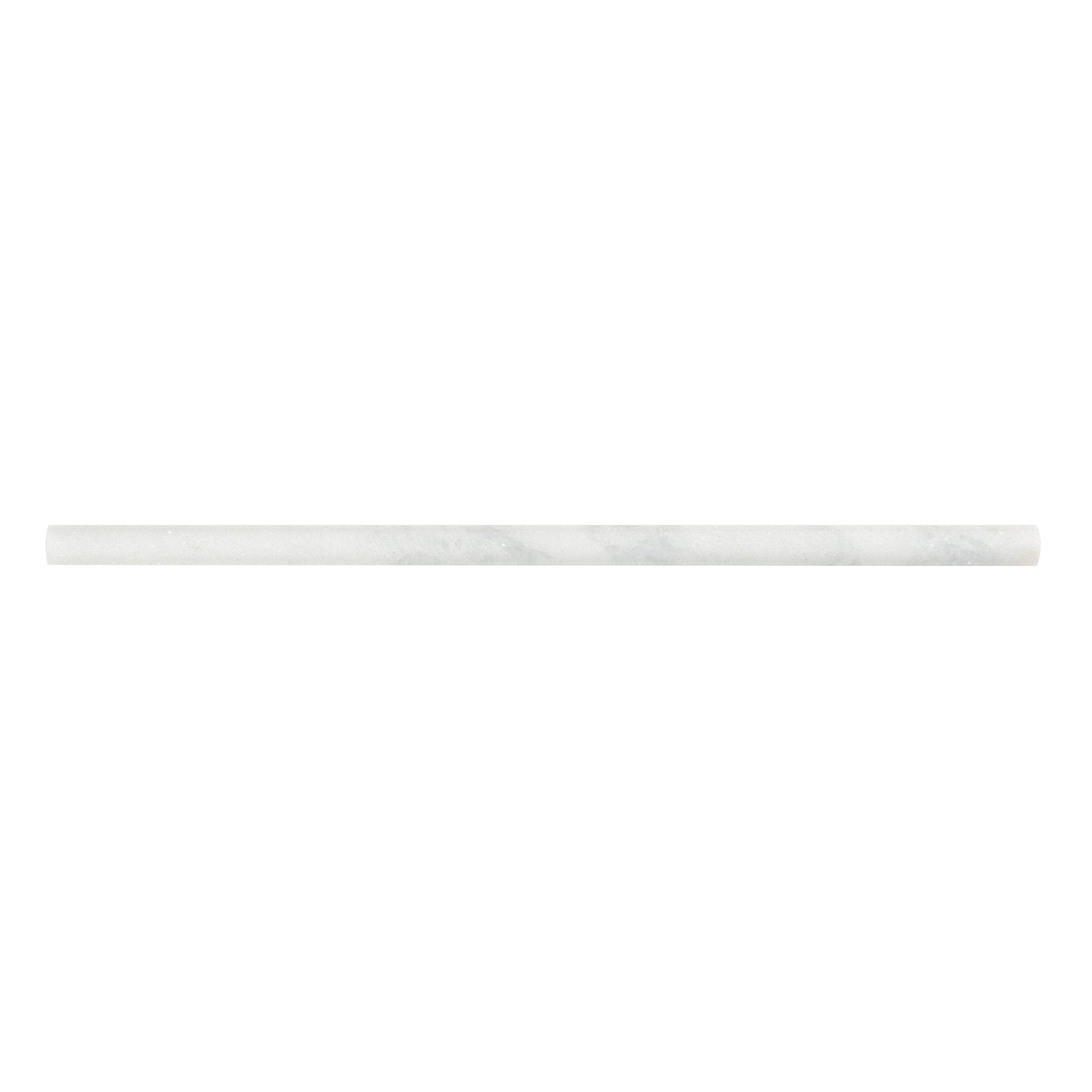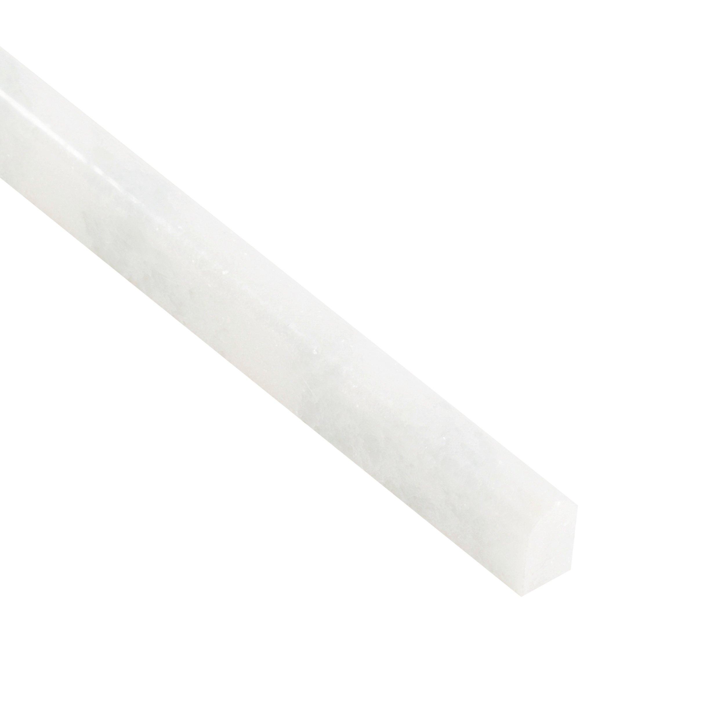 This 1/2 x 12 Sahara Carrara Polished Marble Pencil in white reflects light and adds depth, and has a polished or high gloss finish.