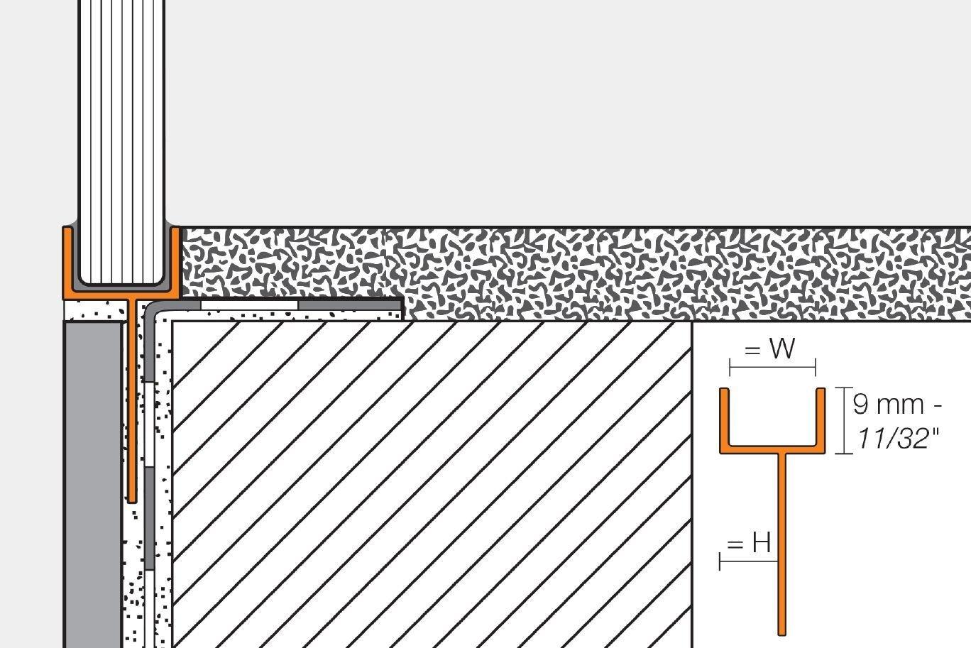 Wall OnlySchluter Deco-SGC 7/16in. Aluminum Satin is a finishing and edge-protection profile for the outside corners of tiled surfaces on walls. The vertical wall section of the profile provides a decorative finish and protects adjacent tiles. Other applications include transitions for dado coverings such as carpet, natural stone, or cold-cured resin coatings.