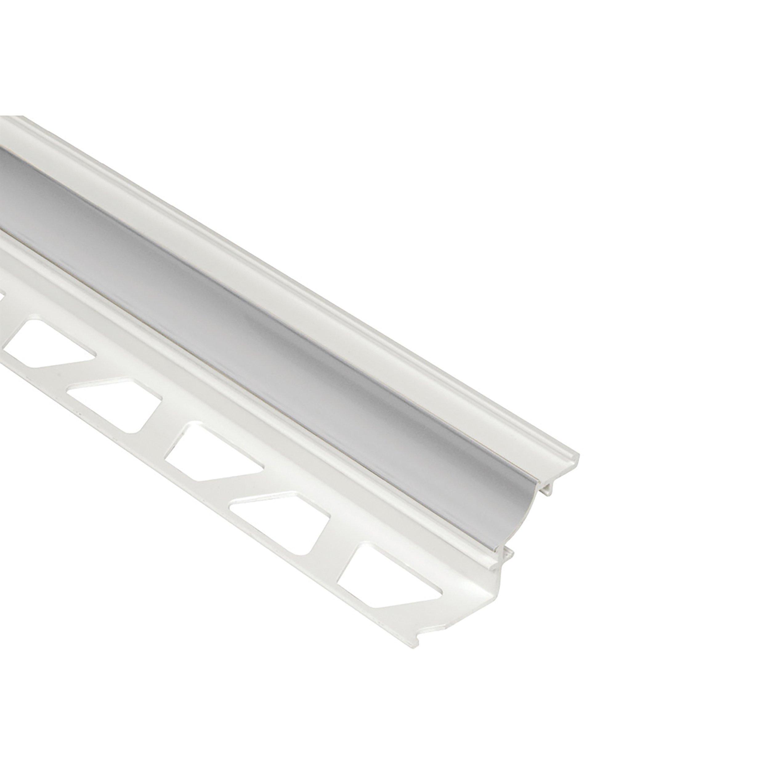 Schluter®-DILEX-PHK features a single trapezoid-perforated anchoring leg, which is secured in the mortar bond coat and a cove section that forms the visible surface. The profile's 3/8" (10 mm) radius makes DILEX-PHK an attractive option for countertop/backsplash transitions, as it prevents the accumulation of dirt and makes cleaning simple. The profile separates tile fields that meet at inside corners where limited movement is expected. DILEX-PHK prevents surface water penetration and meets the maintenance and hygienic requirements of commercial kitchens, bathrooms, and food-processing plants, or any tiled environment where a sanitary cove base is desired. DILEX-PHK is made of rigid PVC with a pre-colored, rigid PVC cove section. Accessories for DILEX-PHK include: inside and outside corners, connectors, and end caps.