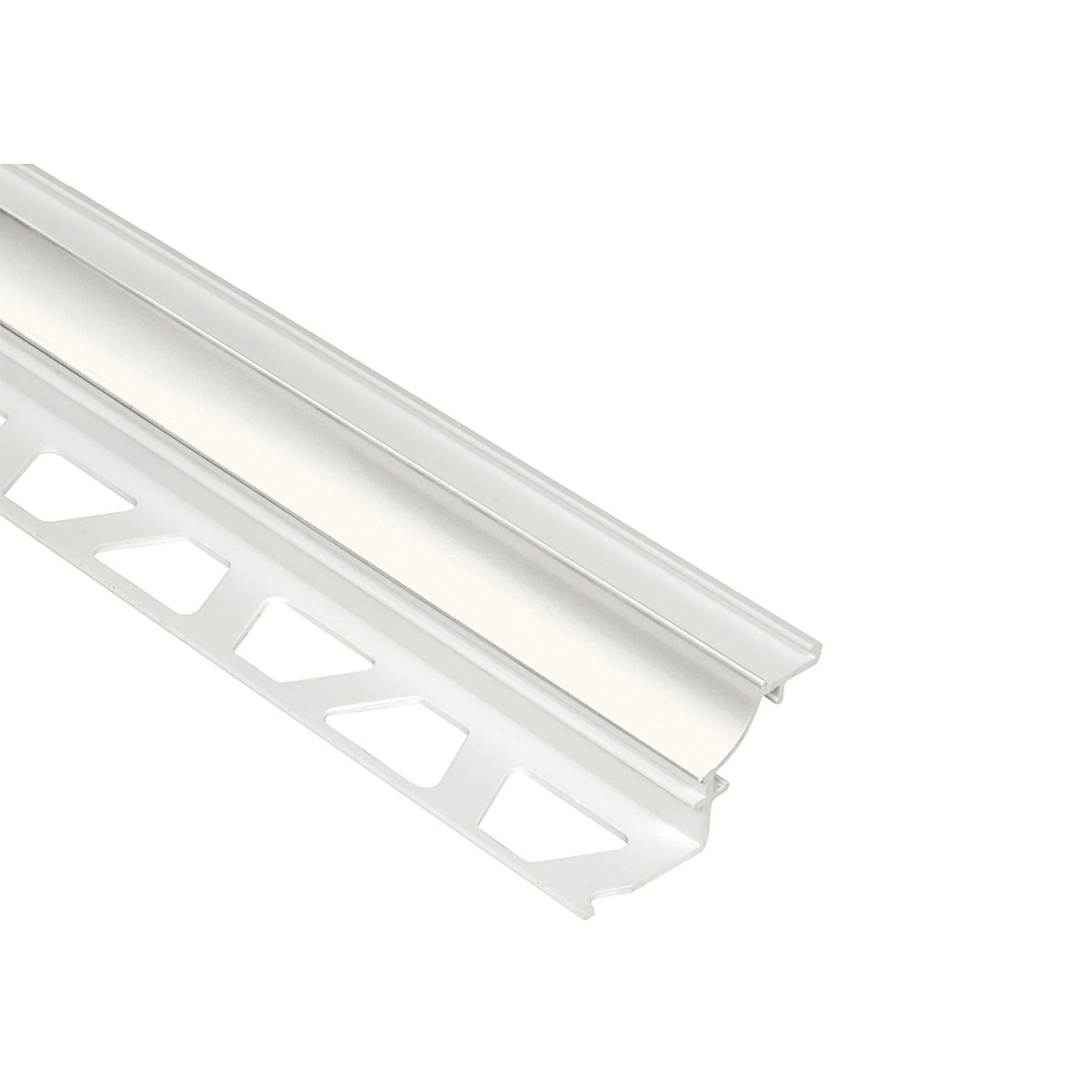 Schluter®-DILEX-PHK features a single trapezoid-perforated anchoring leg, which is secured in the mortar bond coat and a cove section that forms the visible surface. The profile's 3/8" (10 mm) radius makes DILEX-PHK an attractive option for countertop/backsplash transitions, as it prevents the accumulation of dirt and makes cleaning simple. The profile separates tile fields that meet at inside corners where limited movement is expected. DILEX-PHK prevents surface water penetration and meets the maintenance and hygienic requirements of commercial kitchens, bathrooms, and food-processing plants, or any tiled environment where a sanitary cove base is desired. DILEX-PHK is made of rigid PVC with a pre-colored, rigid PVC cove section. Accessories for DILEX-PHK include: inside and outside corners, conn ectors, and end caps.