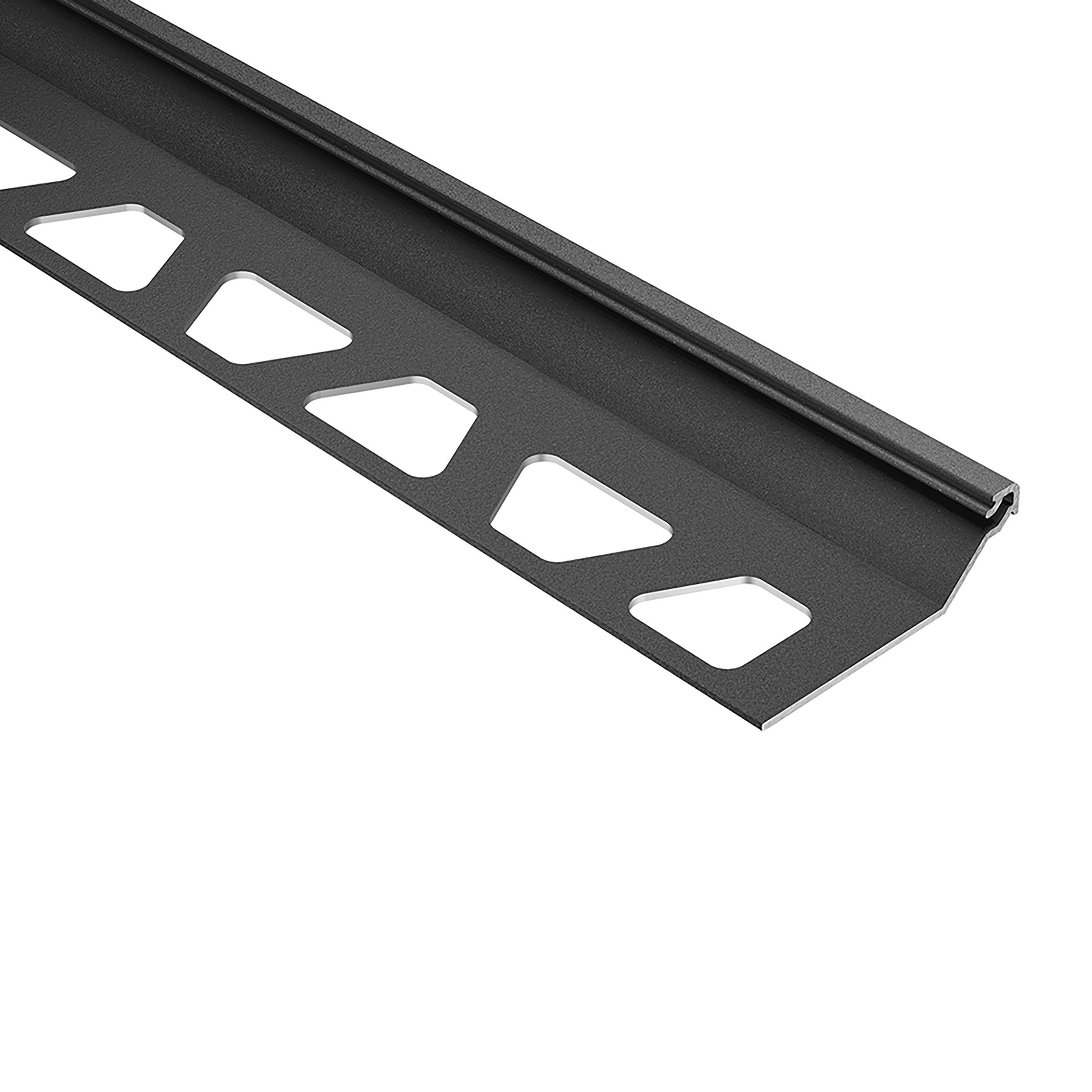 5 Year LimitedSchluter Finec-SQ Trim 7/16in. Aluminum Dark Anthracite is a finishing and edge-protection profile for the outside corners of tiled surfaces on walls. The vertical wall section of the profile provides a decorative finish and protects adjacent tiles. Other applications include transitions for dado coverings such as carpet, natural stone, or cold-cured resin coatings.