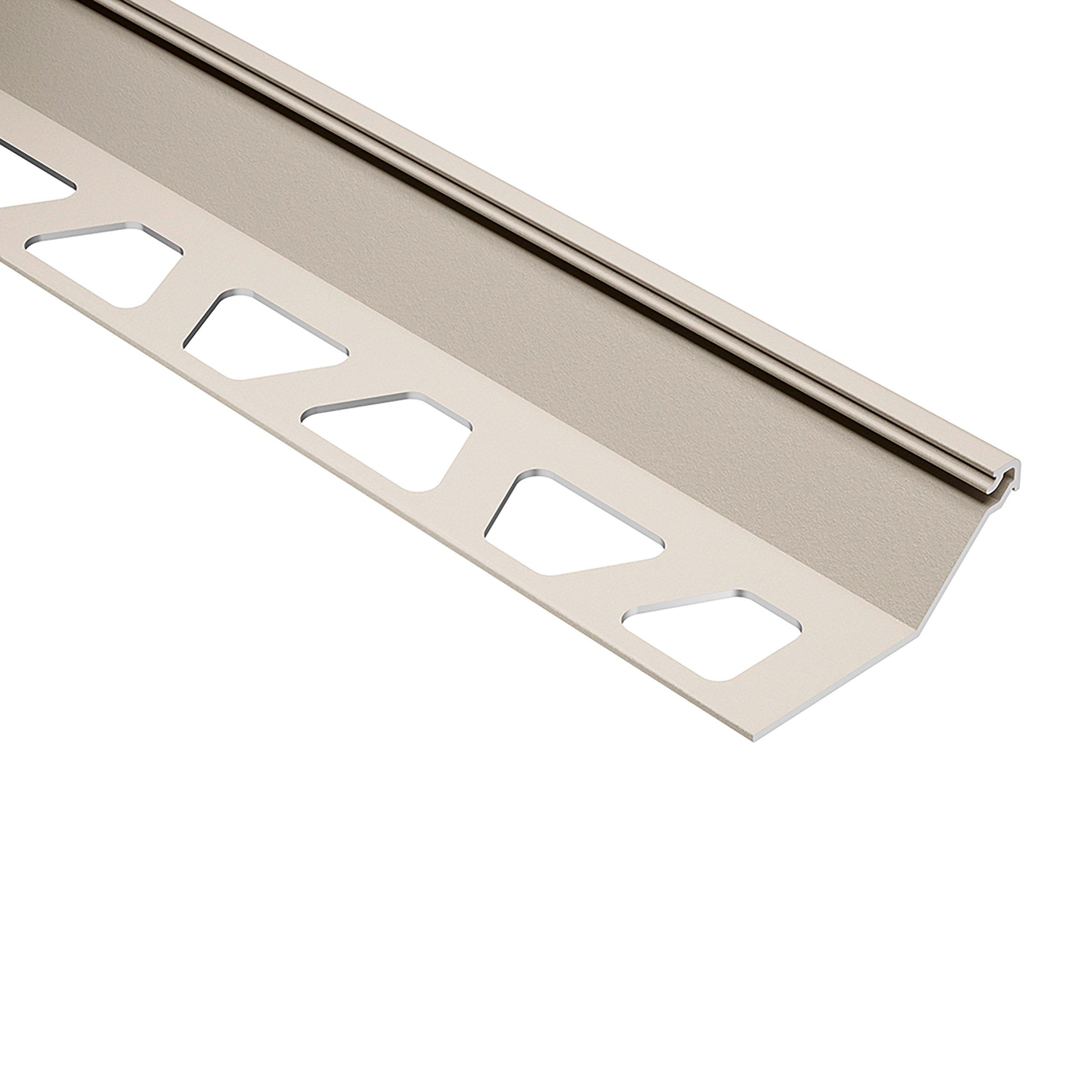 5 Year LimitedSchluter Finec-SQ Trim 9/16in. Aluminum Cream is a finishing and edge-protection profile for the outside corners of tiled surfaces on walls. The vertical wall section of the profile provides a decorative finish and protects adjacent tiles. Other applications include transitions for dado coverings such as carpet, natural stone, or cold-cured resin coatings.