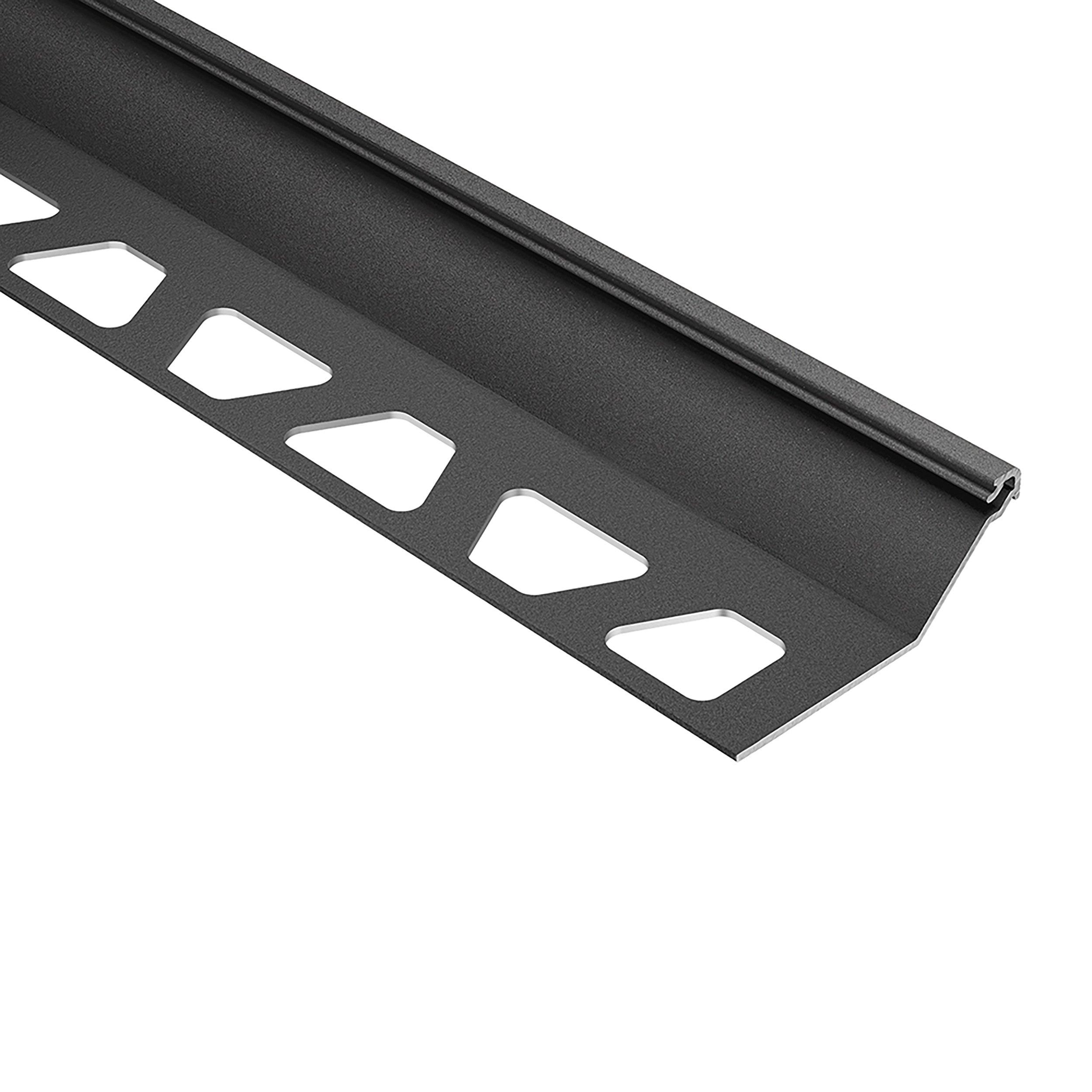 5 Year LimitedSchluter Finec-SQ Trim 9/16in. Aluminum Dark Anthracite is a finishing and edge-protection profile for the outside corners of tiled surfaces on walls. The vertical wall section of the profile provides a decorative finish and protects adjacent tiles. Other applications include transitions for dado coverings such as carpet, natural stone, or cold-cured resin coatings.