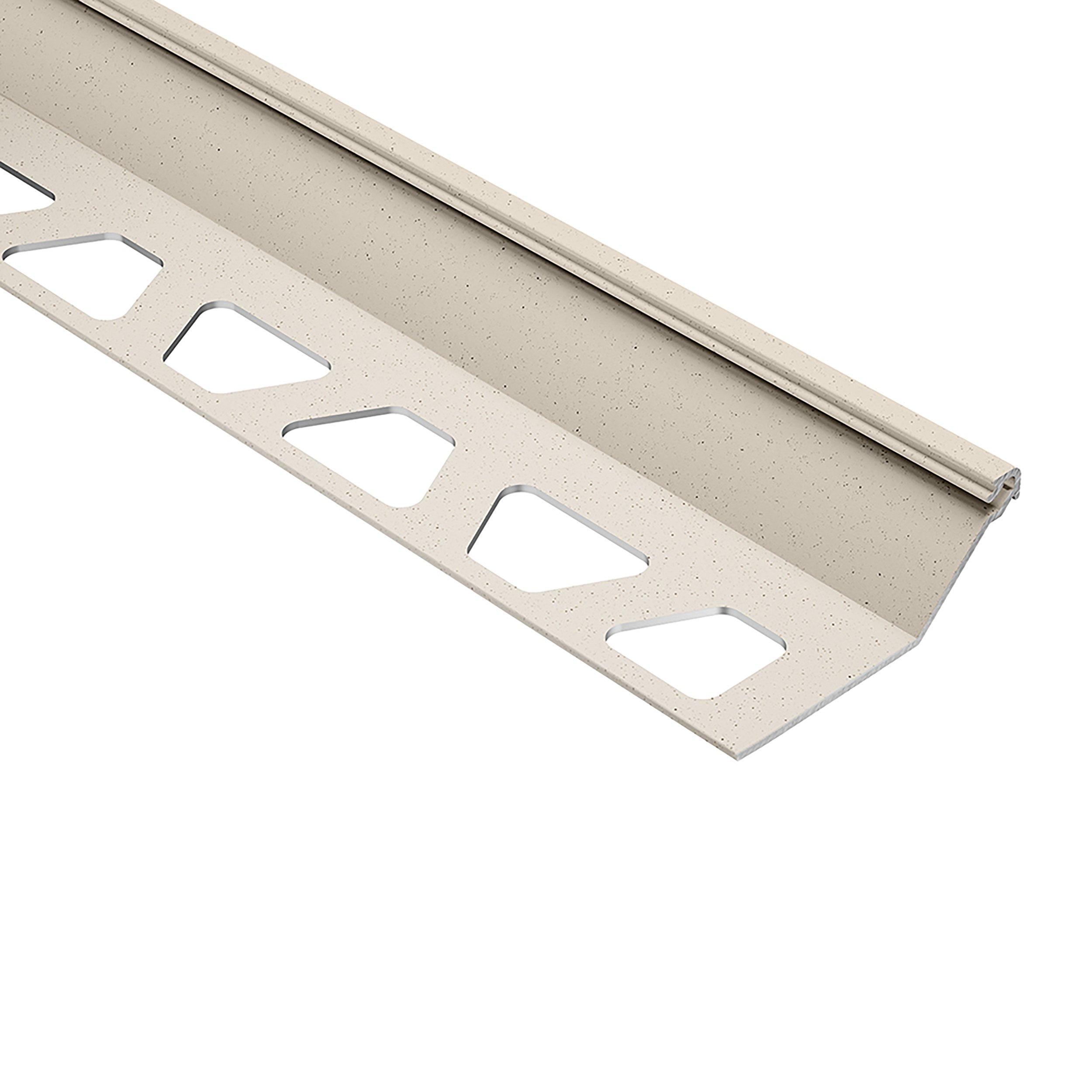 Schluter Finec-SQ Trim 9/16in. Aluminum Ivory is a finishing and edge-protection profile for the outside corners of tiled surfaces on walls. The vertical wall section of the profile provides a decorative finish and protects adjacent tiles. Other applications include transitions for dado coverings such as carpet, natural stone, or cold-cured resin coatings.