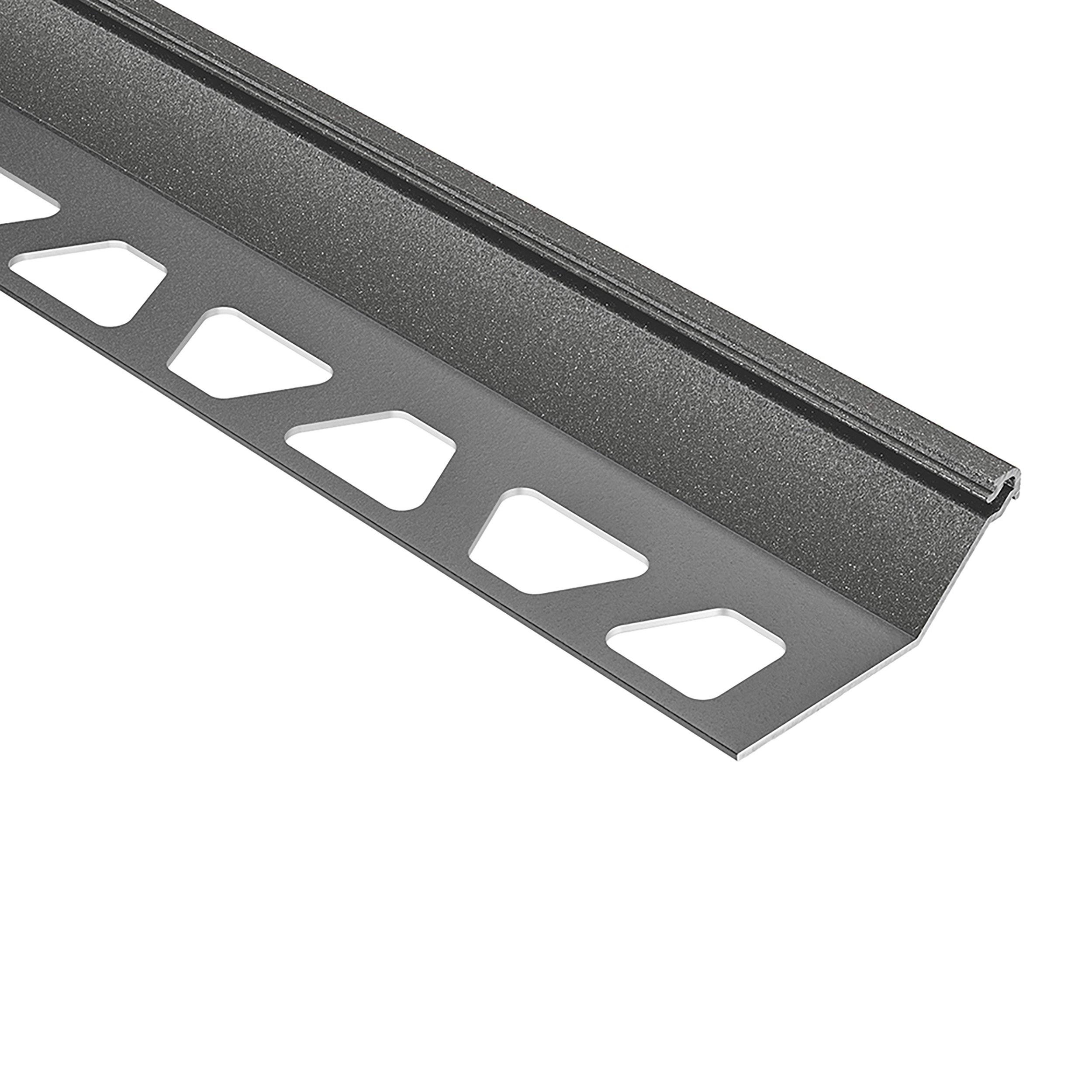 5 Year LimitedSchluter Finec-SQ Trim 9/16in. Aluminum Light Anthracite is a finishing and edge-protection profile for the outside corners of tiled surfaces on walls. The vertical wall section of the profile provides a decorative finish and protects adjacent tiles. Other applications include transitions for dado coverings such as carpet, natural stone, or cold-cured resin coatings.