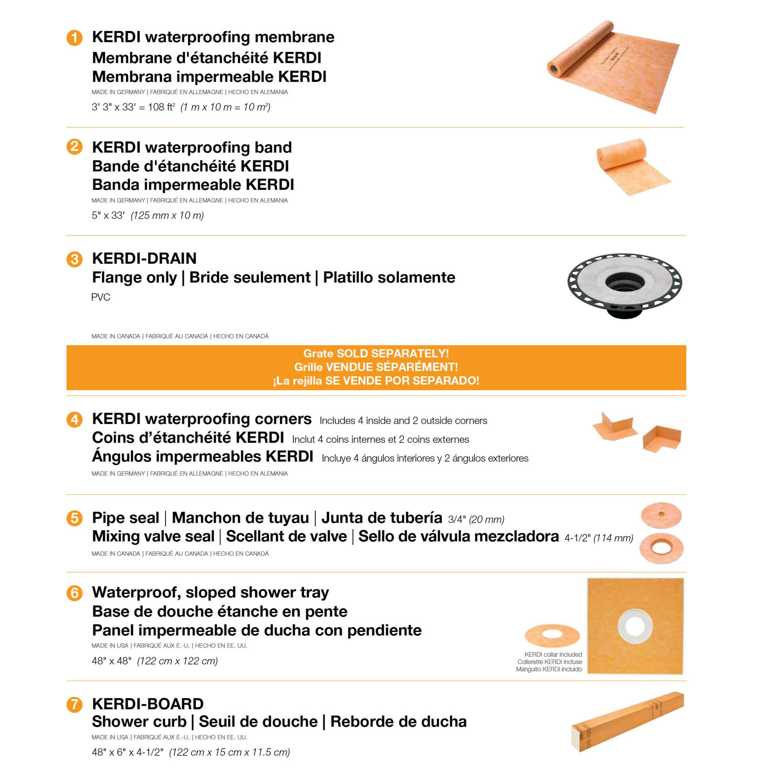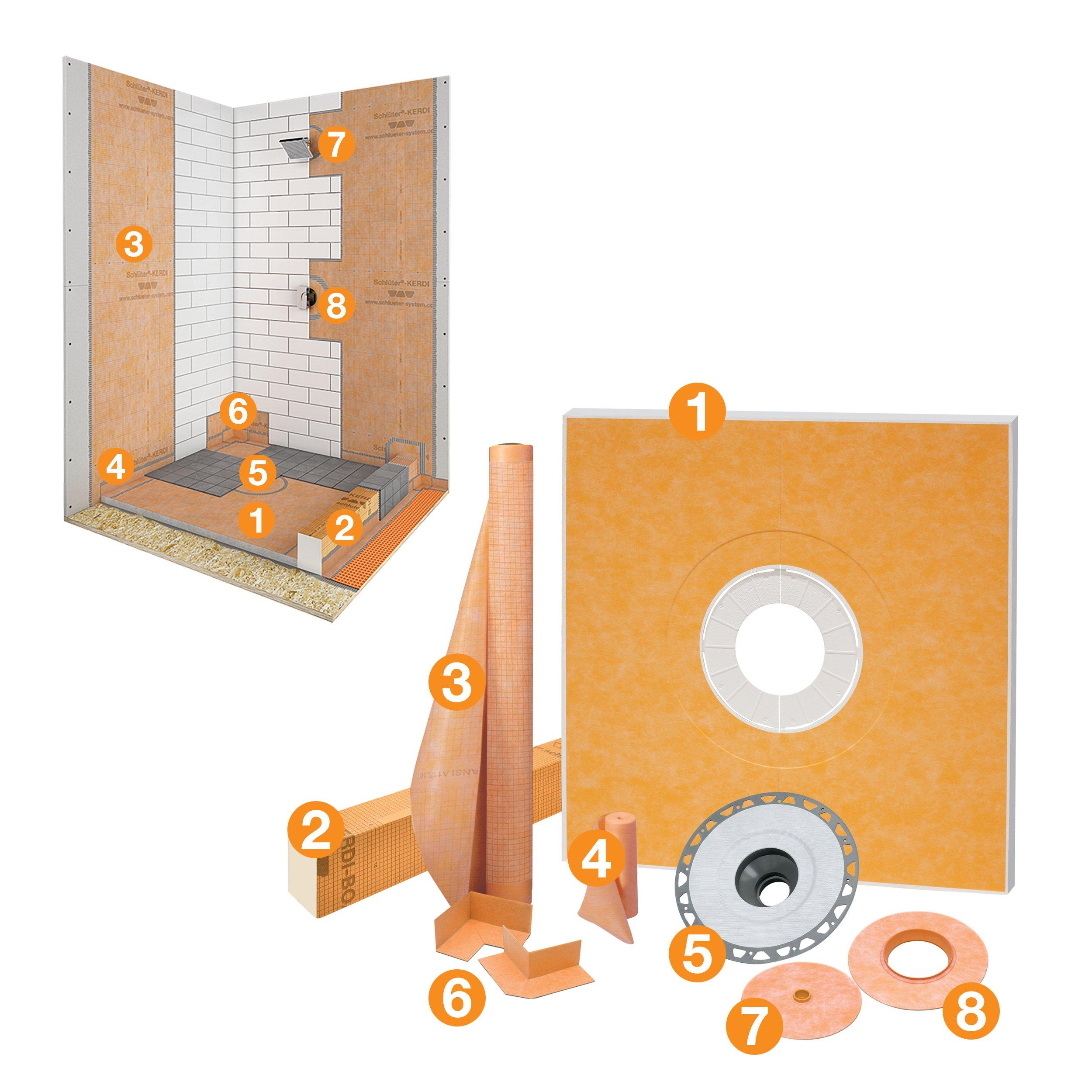 LifetimeSchluter Kerdi-Shower Kit 48in. x 48in. PVC Flange 2 is a complete solution for creating a watertight shower assembly without the need for a mortar bed. This kit includes all essential components for a fully waterproof and vapor-tight tiled shower enclosure, designed for use with a KERDI-DRAIN grate sold separately.