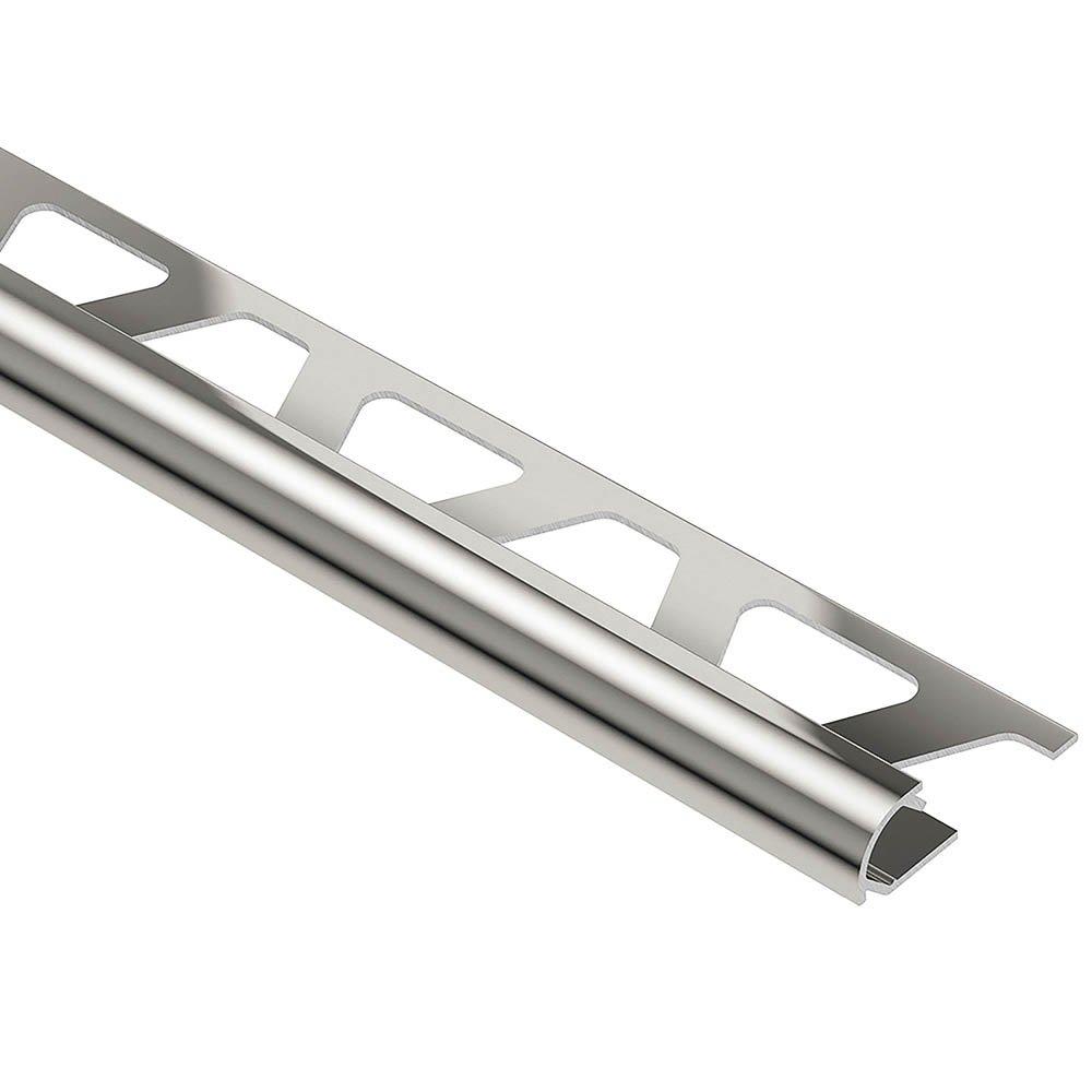 Schluter Rondec Bullnose Trim 5/16in. Aluminum Polish Nickel is a finishing and edge-protection profile for the outside corners of tiled surfaces on walls. The vertical wall section of the profile provides a decorative finish and protects adjacent tiles. Other applications include transitions for dado coverings such as carpet, natural stone, or cold-cured resin coatings.