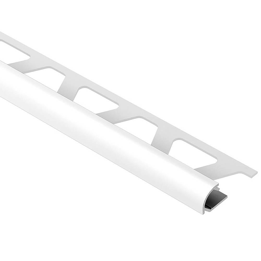 Schluter Rondec Bullnose Trim 5/16in. Aluminum Bright White is a finishing and edge-protection profile for the outside corners of tiled surfaces on walls. The vertical wall section of the profile provides a decorative finish and protects adjacent tiles. Other applications include transitions for dado coverings such as carpet, natural stone, or cold-cured resin coatings.