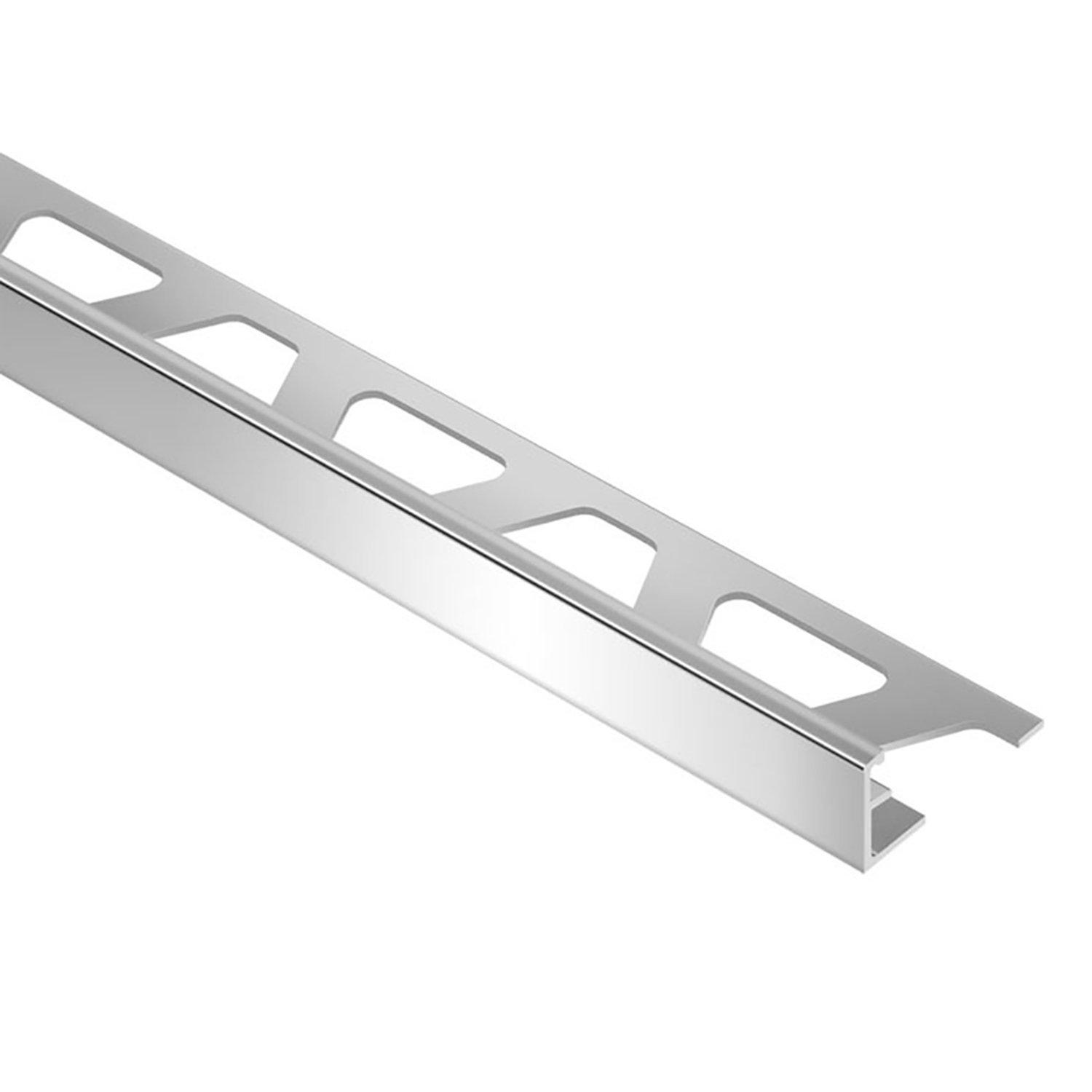 Floor OnlySchluter Schiene Edge Trim 1/4in. Aluminum Polished Chrome is a finishing and edge-protection profile for the outside corners of tiled surfaces on walls. The vertical wall section of the profile provides a decorative finish and protects adjacent tiles. Other applications include transitions for dado coverings such as carpet, natural stone, or cold-cured resin coatings.
