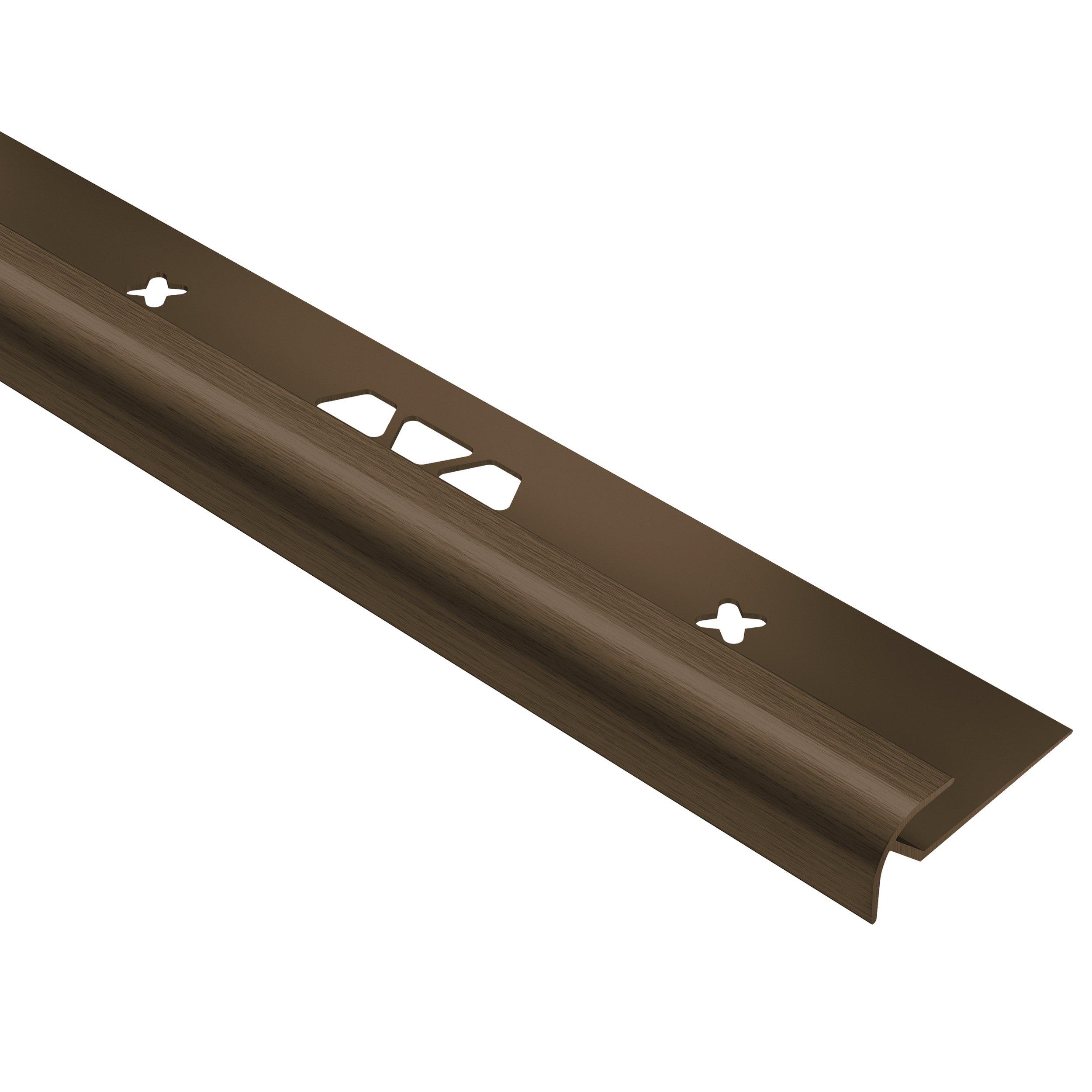 Floor moldings, such as Schluter Vinpro-RO Bullnose 13/64in. Aluminum Brushed Bronze, are a necessity to complete any flooring project. Whether you are transitioning between two rooms, or between two different types of flooring, floor moldings are key to finishing your floor with a great look!
