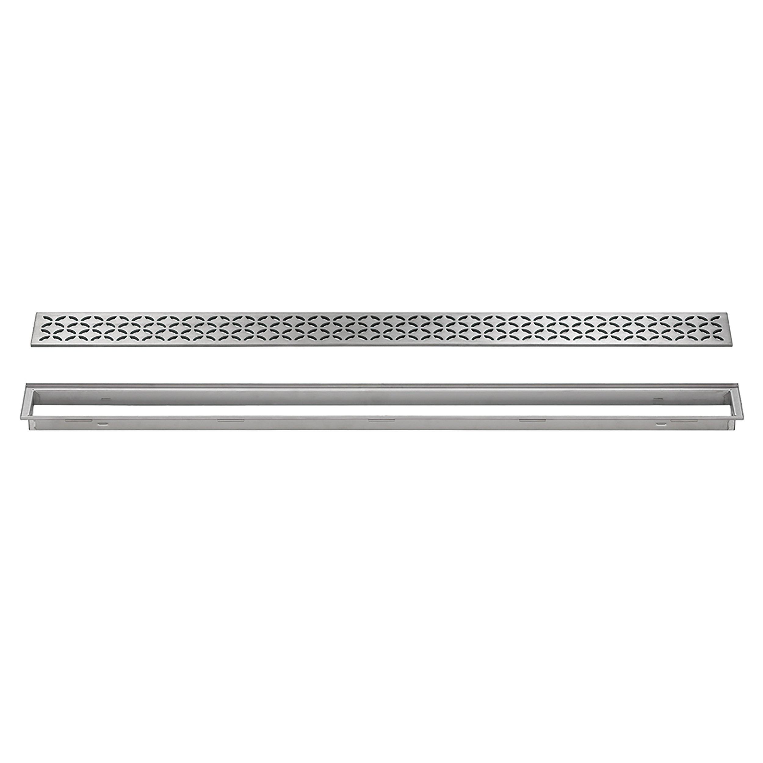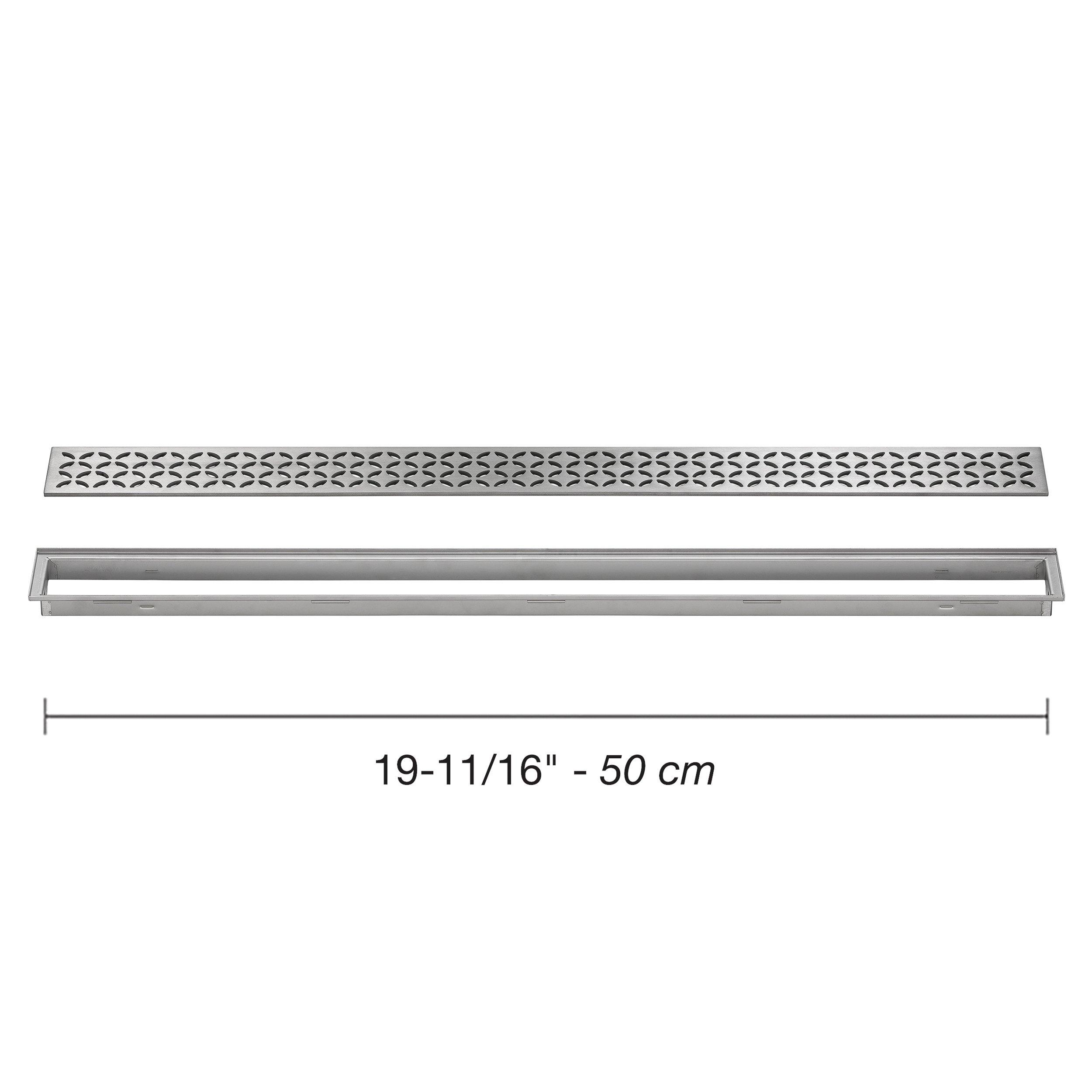 YesSchluter Kerdi-Line 29/32 Frame 19 11/16 Floral Grate is designed for use with the KERDI-LINE channel body to create a decorative, low-profile linear drain system. This grate assembly combines durability with an elegant floral design, making it ideal for modern shower installations.