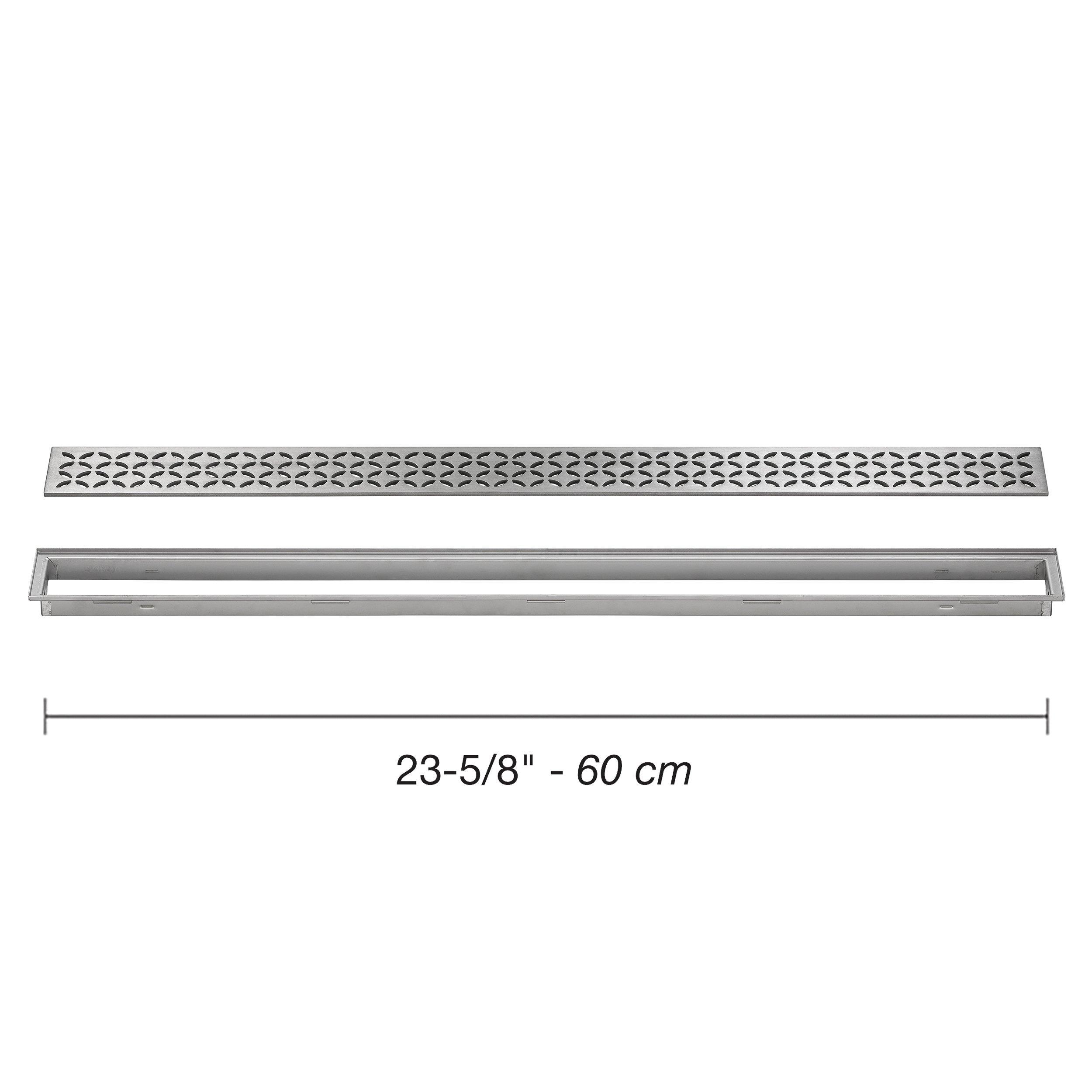 YesSchluter Kerdi-Line 29/32 Frame 23 5/8 Floral Grate is designed for use with the KERDI-LINE channel body to create a decorative, low-profile linear drain system. This grate assembly combines dependable performance with an elegant floral design, perfect for modern shower spaces.