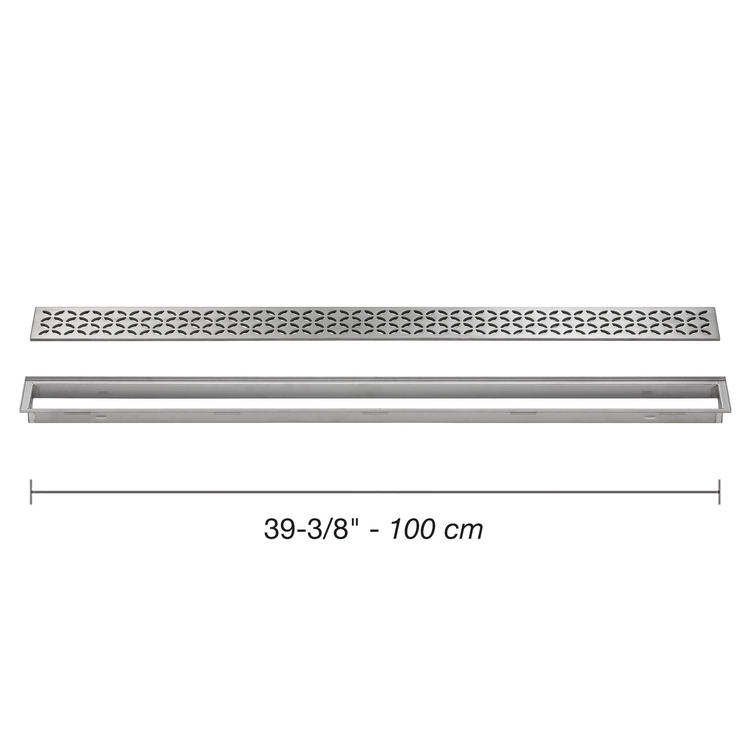 YesSchluter Kerdi-Line 29/32 Frame 39 3/8 Floral Grate is designed for use with the KERDI-LINE channel body to create a stylish, low-profile linear drain system. This grate assembly combines functionality with a decorative floral design, making it ideal for modern shower installations.