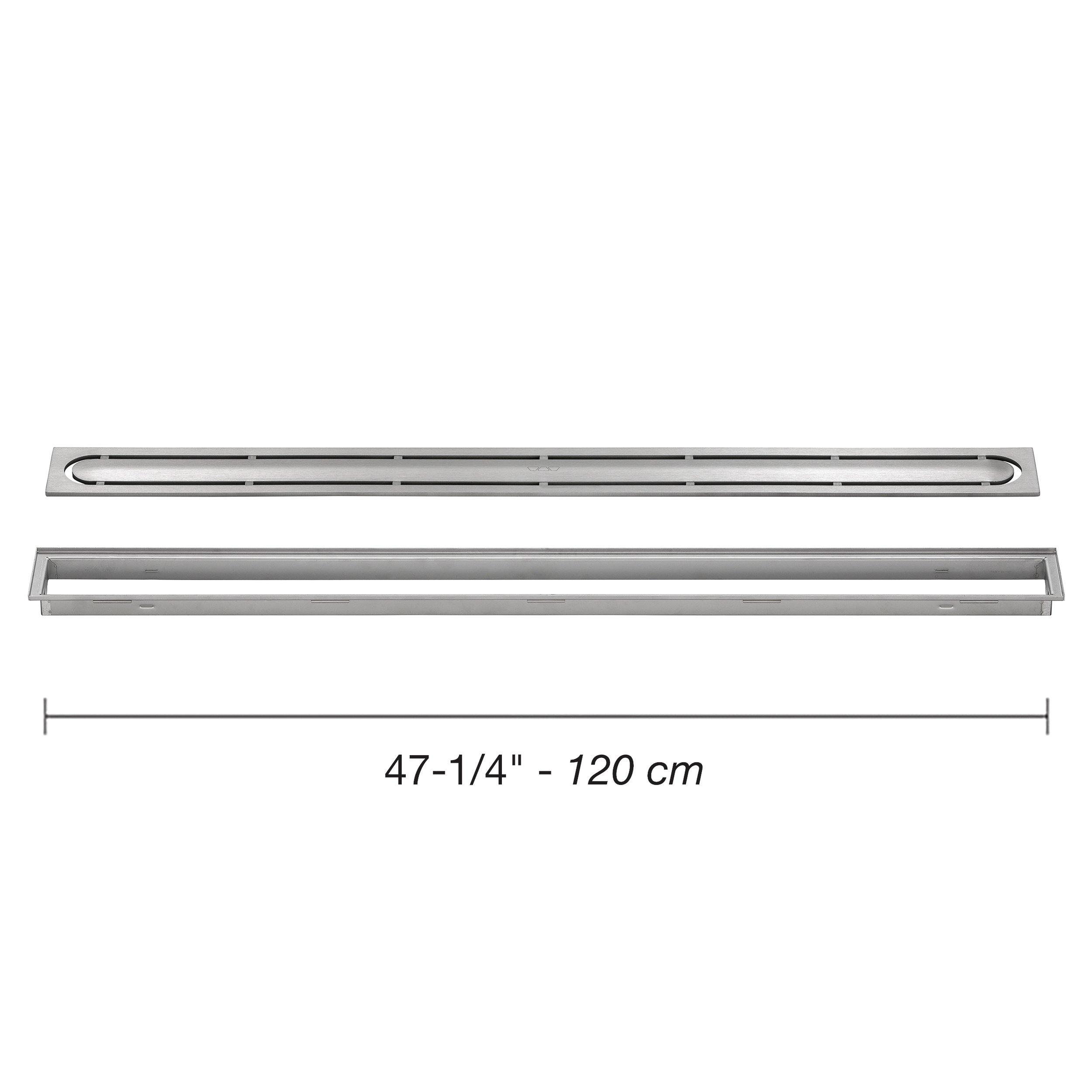 Schluter Kerdi-Line 29/32in. Frame 47 1/4in. Perforated Grate offers a sleek, low-profile solution for tiled showers. Designed for use with the KERDI-LINE channel body, this assembly allows for single-plane sloping and large-format tile installations.