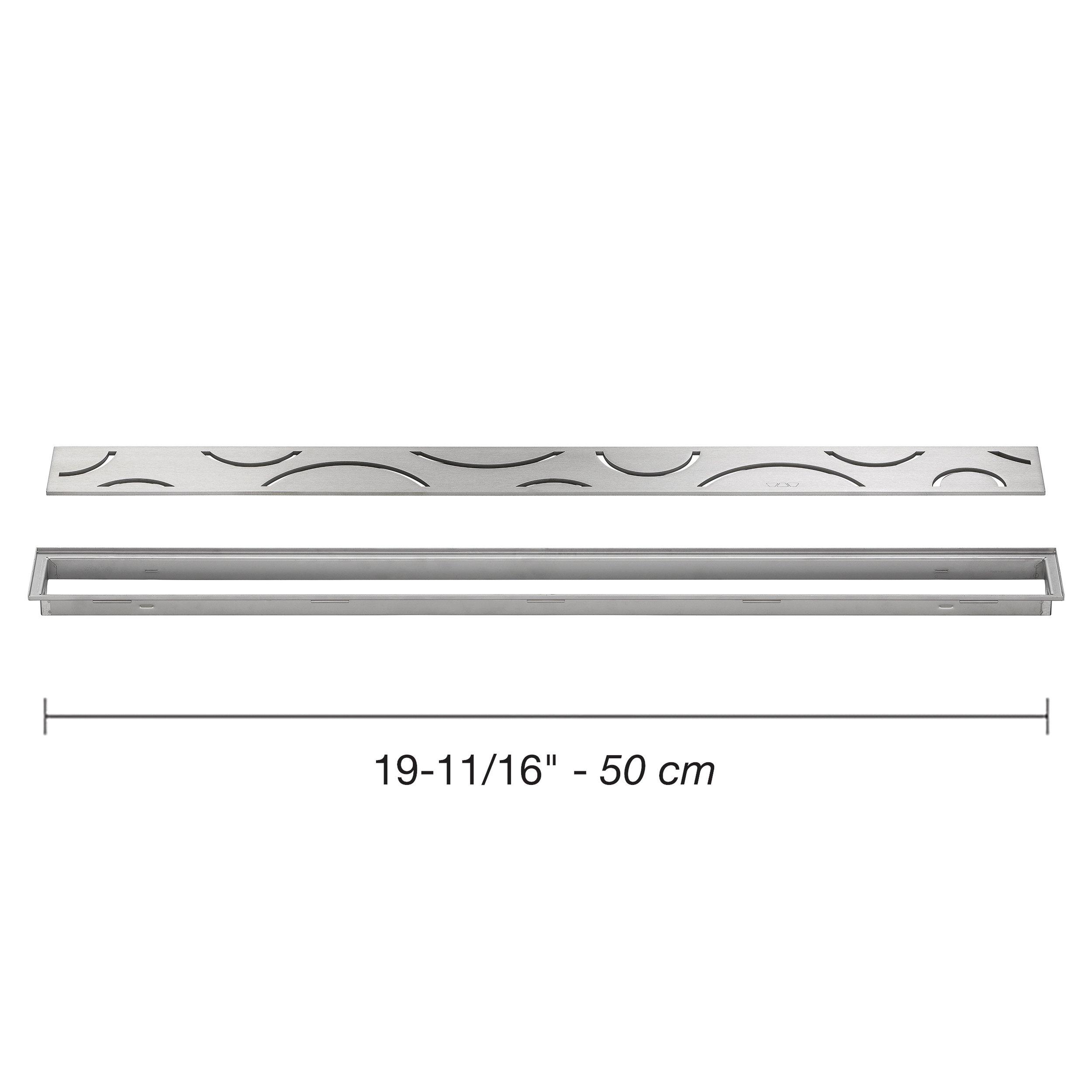 Schluter Kerdi-Line 29/32in. Frame 27 9/16in. Curve Grate is designed for use with the KERDI-LINE channel body to create a sleek, low-profile linear drain system. Featuring a modern curved design, this grate assembly is ideal for stylish shower installations that combine functionality and elegance.