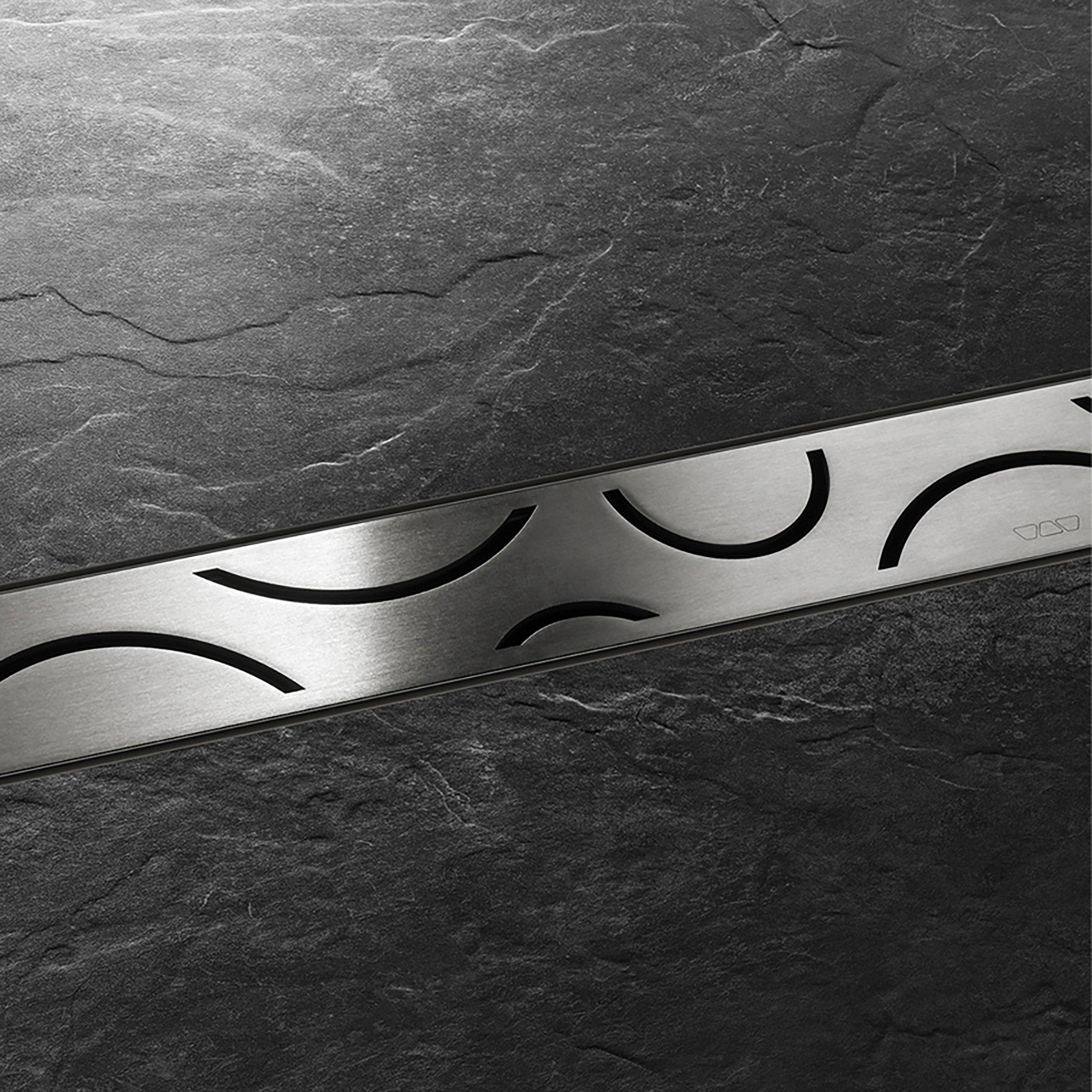 • Linear drain grate assembly with curve design and brushed stainless steel finish