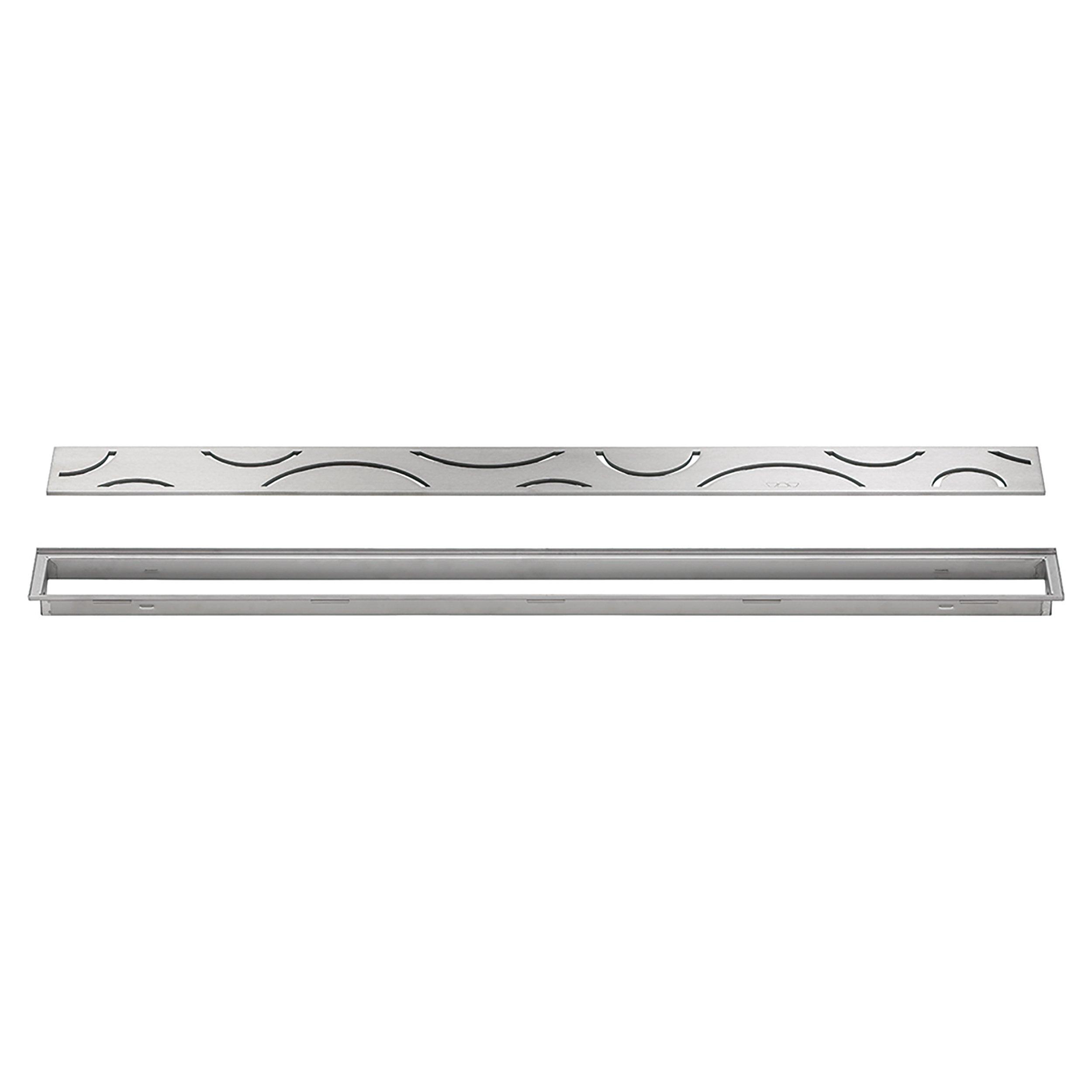 Schluter Kerdi-Line 29/32in. Frame 35 7/16in. Curve Grate is designed for use with the KERDI-LINE channel body to create a sleek, low-profile linear drain system. Featuring a modern curved design, this grate assembly is ideal for stylish shower installations that combine functionality and elegance.