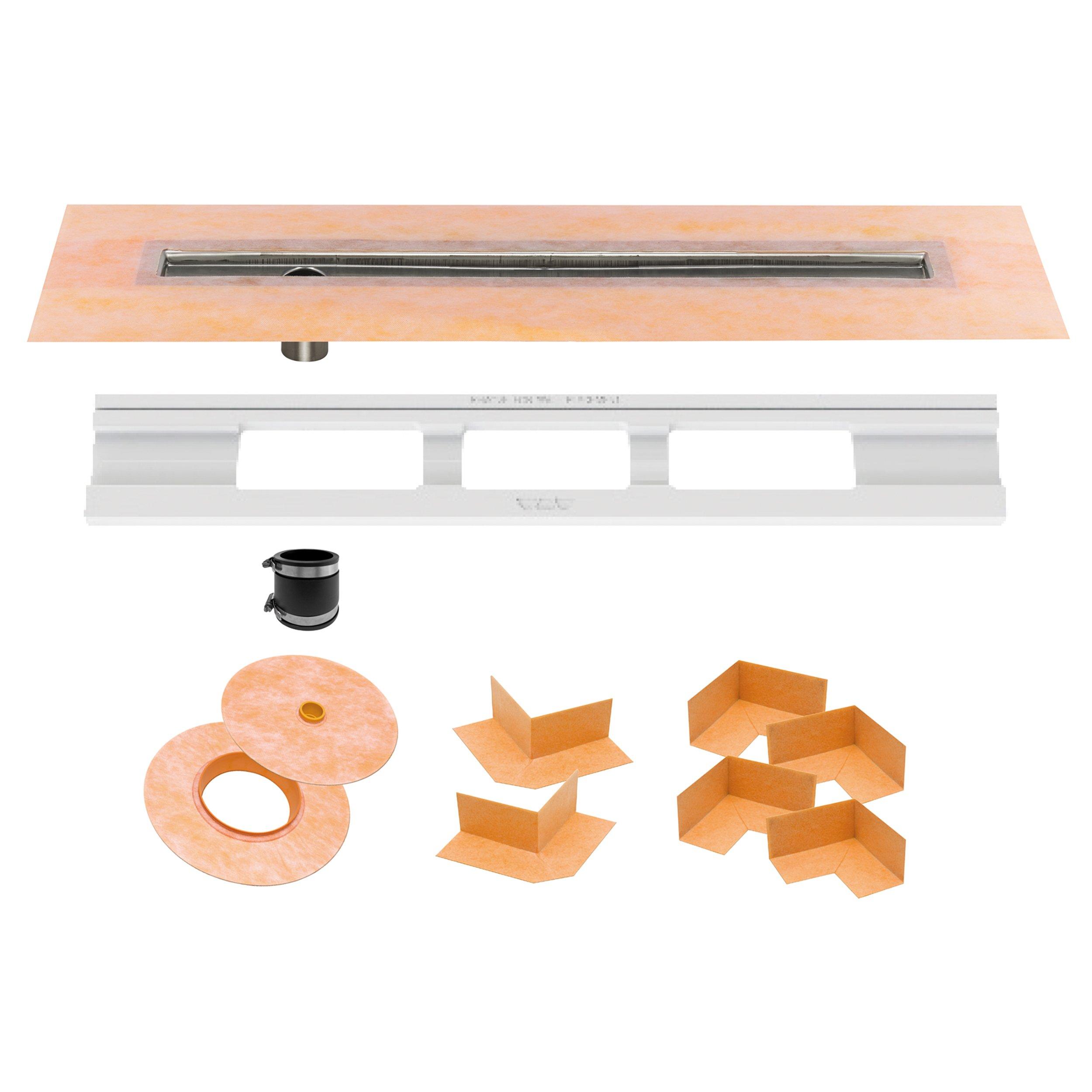 Create a modern, minimalist shower design with Schluter Kerdi-Line Offset Frameless 44in. Tileable Grate. This durable solution blends functionality with style for a premium, tile-ready finish.