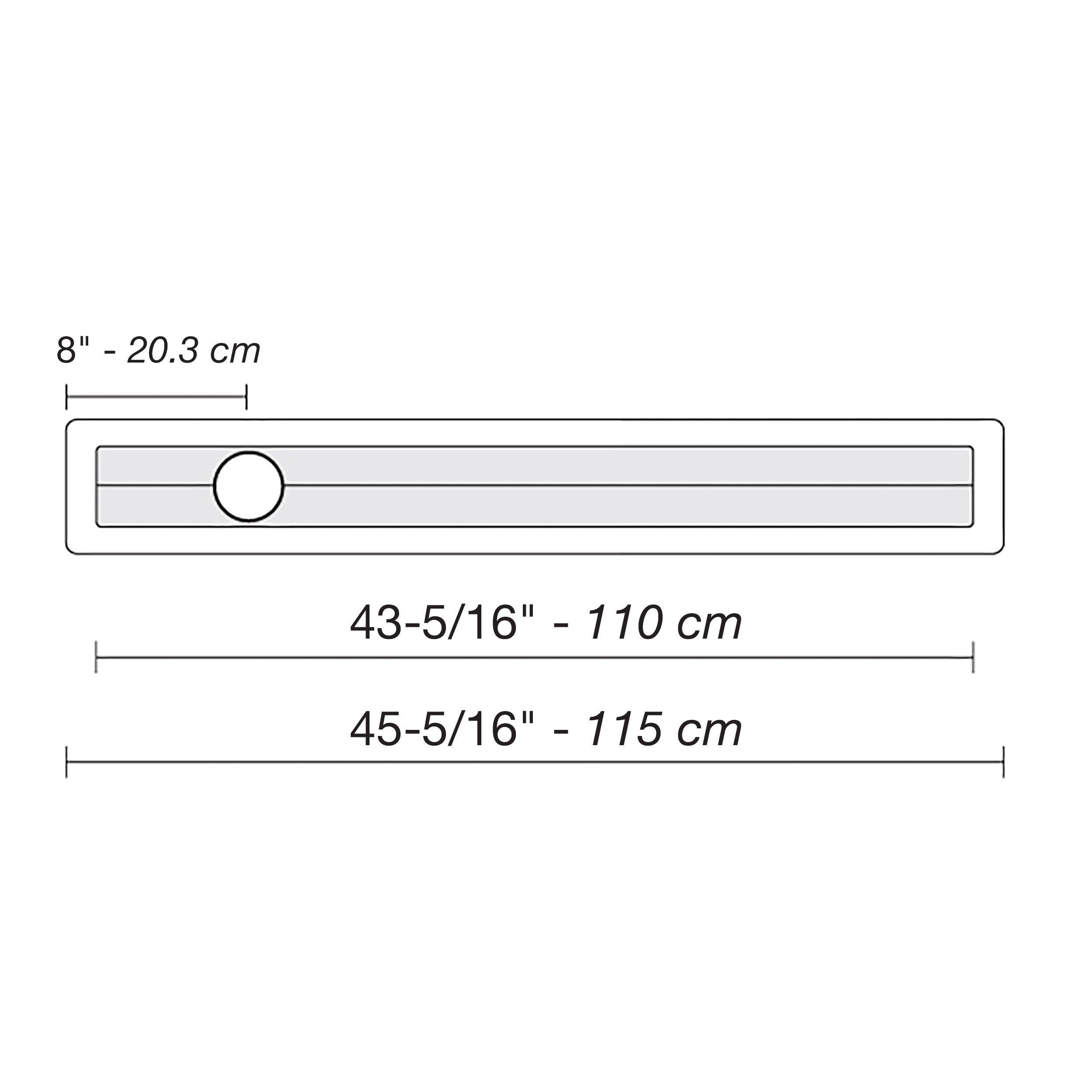 Schluter Kerdi-Line Offset Frameless 44in. Tileable Grate is designed for use with the KERDI-LINE channel body to create a sleek, low-profile linear drain system. This frameless assembly allows for a fully integrated look by accommodating any tile thickness for a seamless finish.