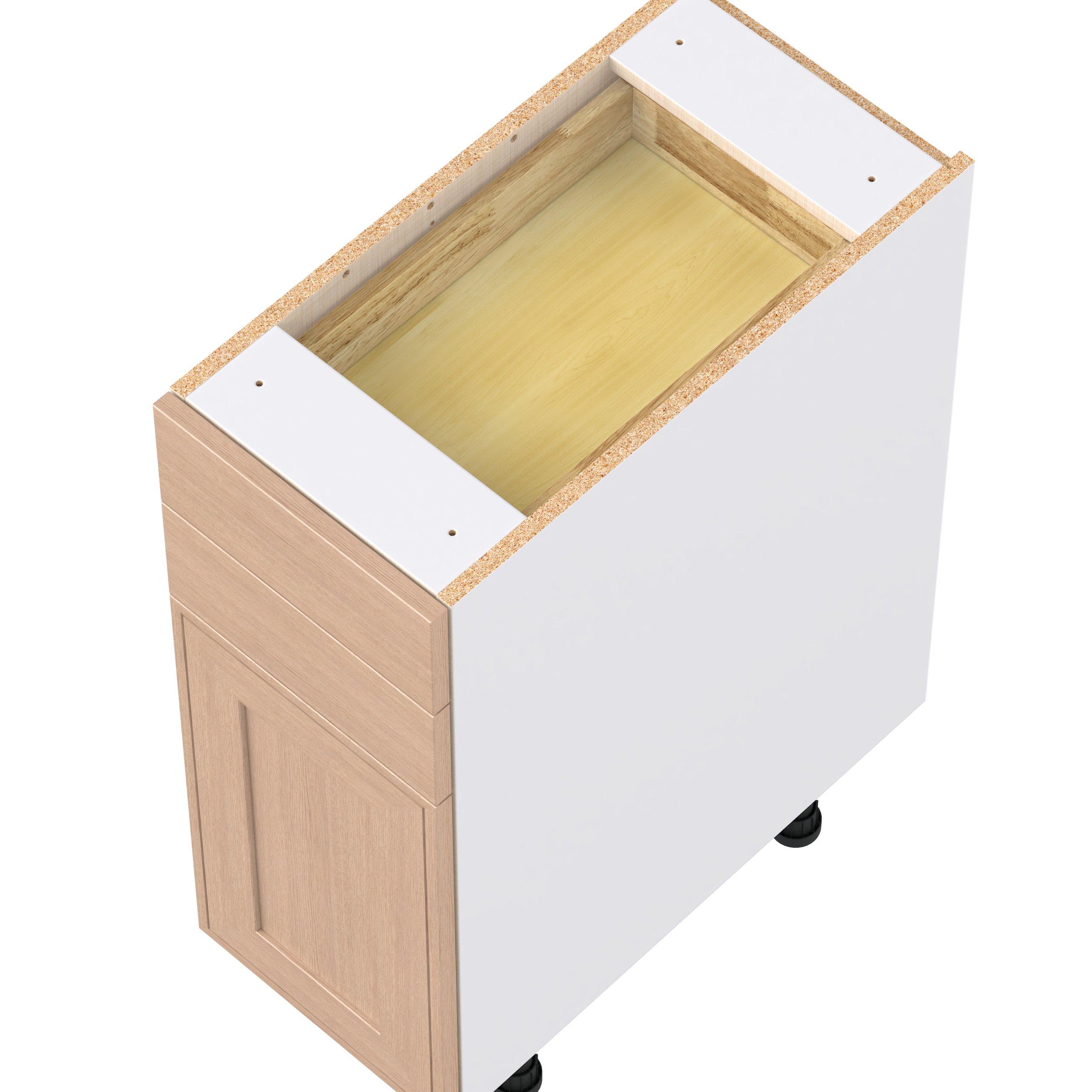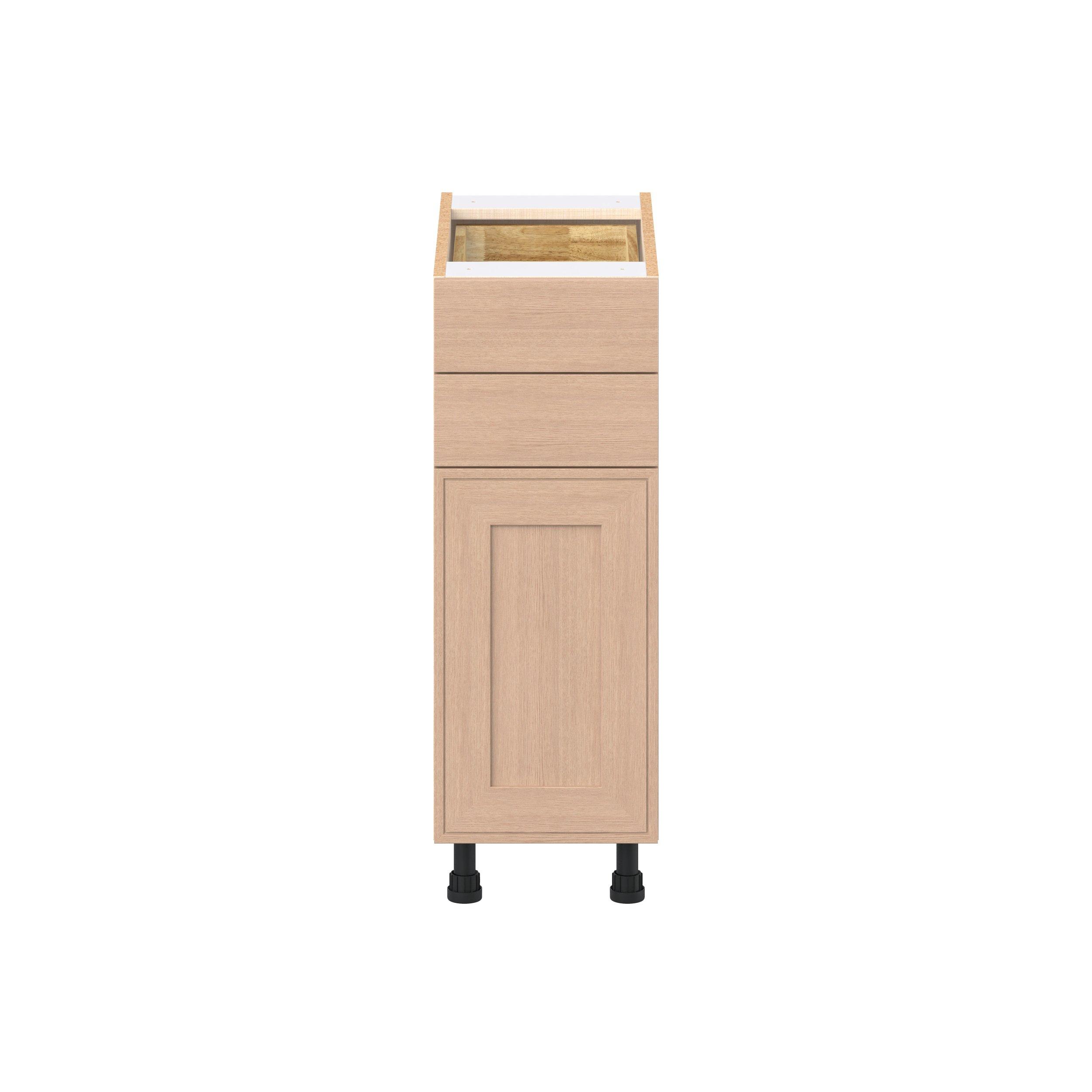 Crafted from natural rift-cut oak, Ambrose shaker-inspired cabinets deliver a modern take on timeless style. Designed to emulate the look of inset framed cabinetry while offering the full-access advantages of frameless construction, Studio Design Collection Ambrose 12 in. Stained Sandbar Rift-Cut Oak Door and Drawer Base Cabinet blends classic appeal with smart functionality. With 5-piece mitered doors, soft-close hardware, solid wood dovetail drawers, and a designer linen interior, every detail is built for lasting performance. A robust selection of interior accessories—from pull-outs to organizers—ensures the inside works as beautifully as the outside looks.