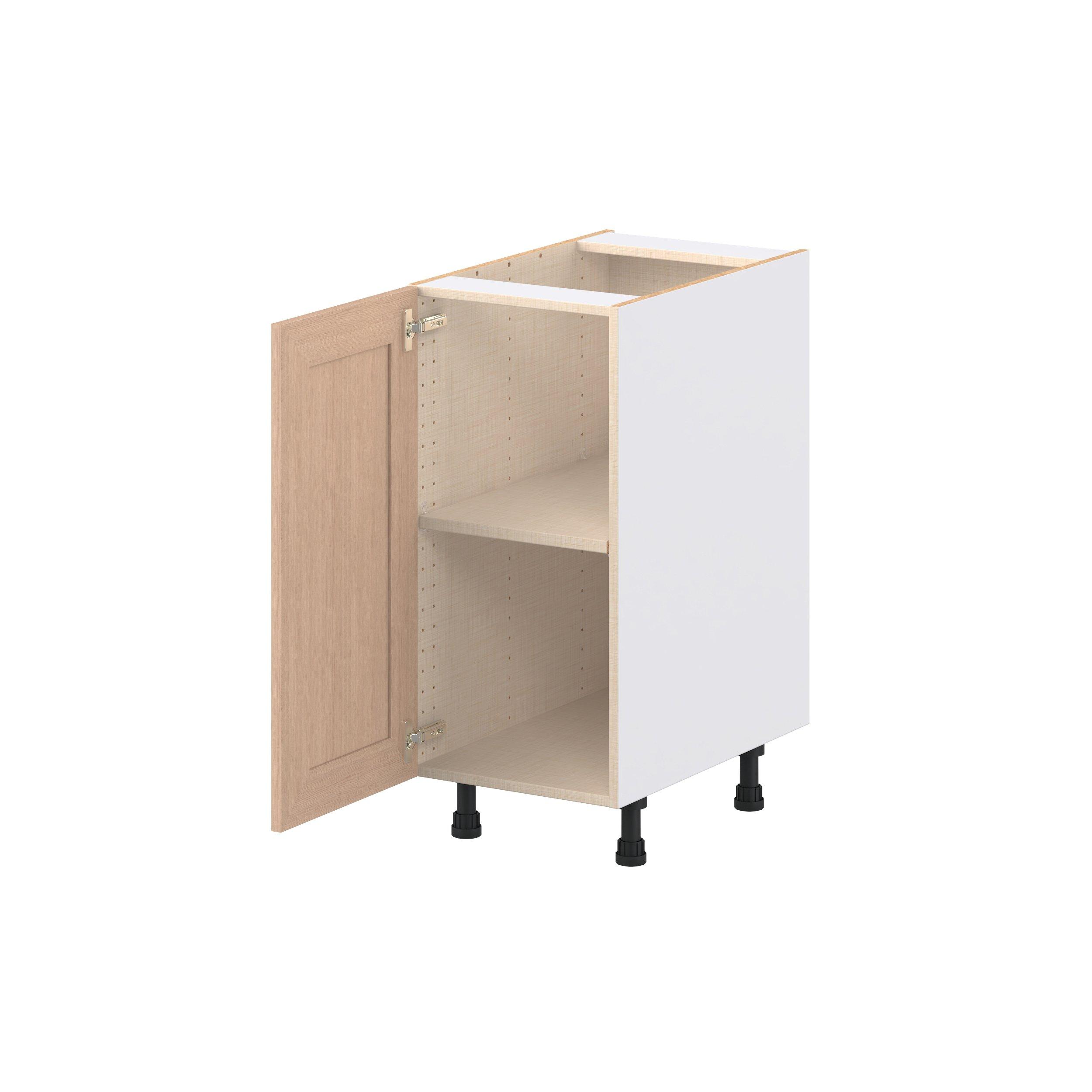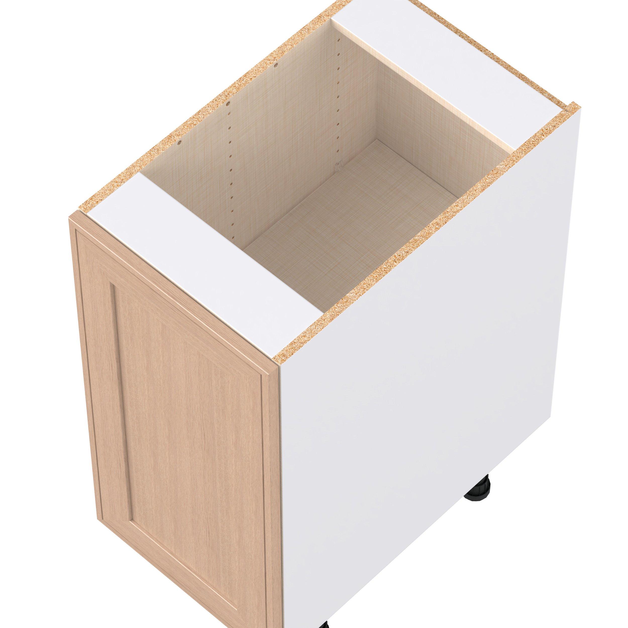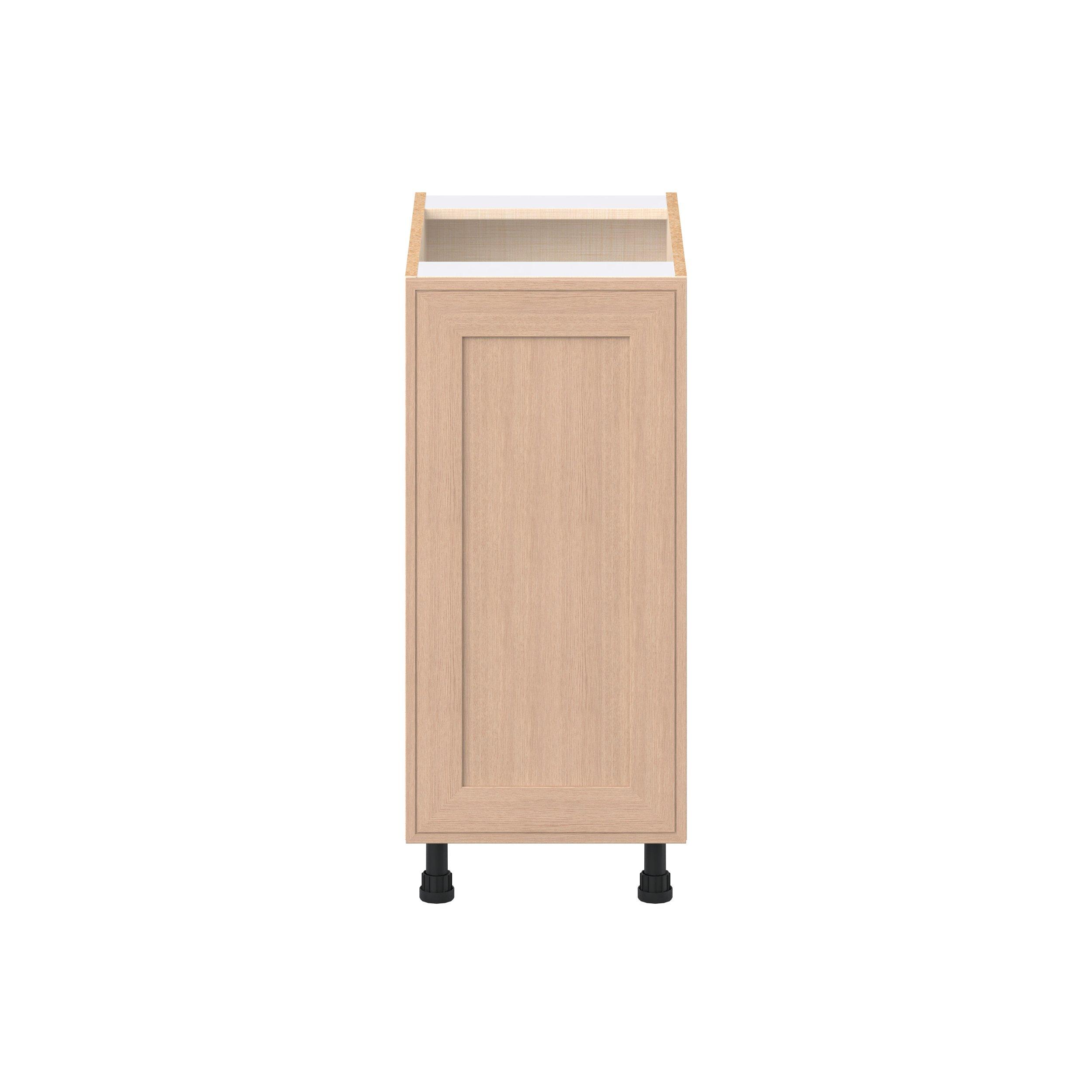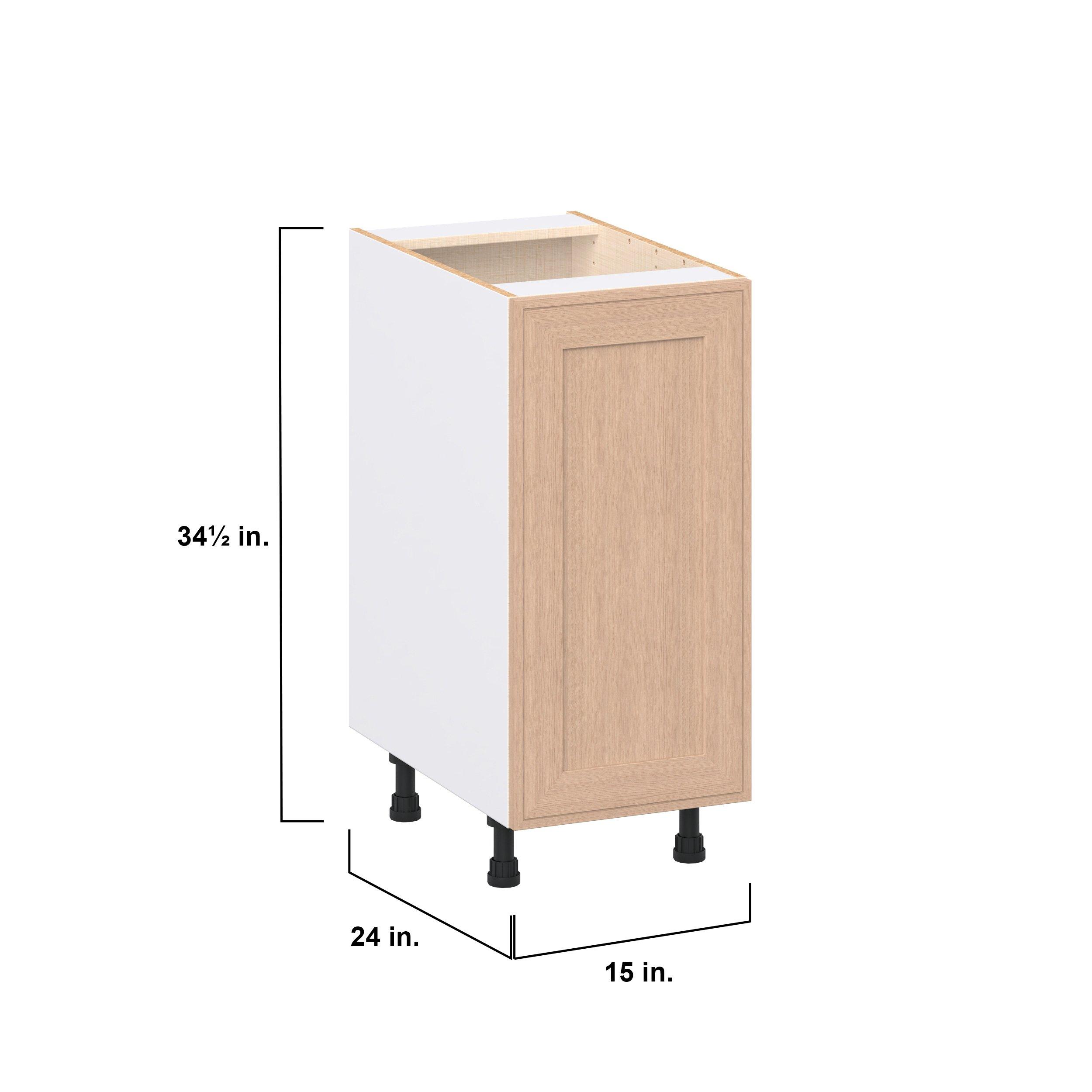 Crafted from natural rift-cut oak, Ambrose shaker-inspired cabinets deliver a modern take on timeless style. Designed to emulate the look of inset framed cabinetry while offering the full-access advantages of frameless construction, Studio Design Collection Ambrose 15 in. Stained Sandbar Rift-Cut Oak Door Base Cabinet blends classic appeal with smart functionality. With 5-piece mitered doors, soft-close hardware, solid wood dovetail drawers, and a designer linen interior, every detail is built for lasting performance. A robust selection of interior accessories—from pull-outs to organizers—ensures the inside works as beautifully as the outside looks.